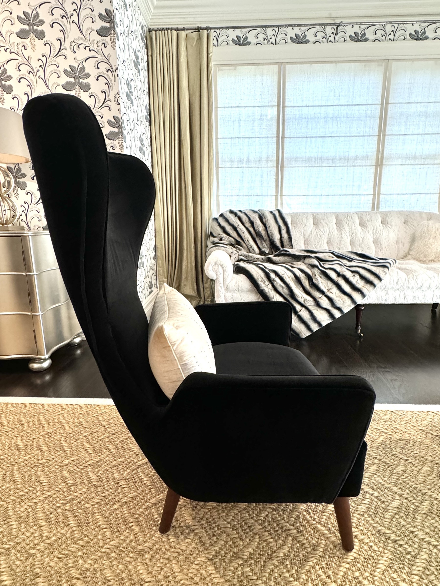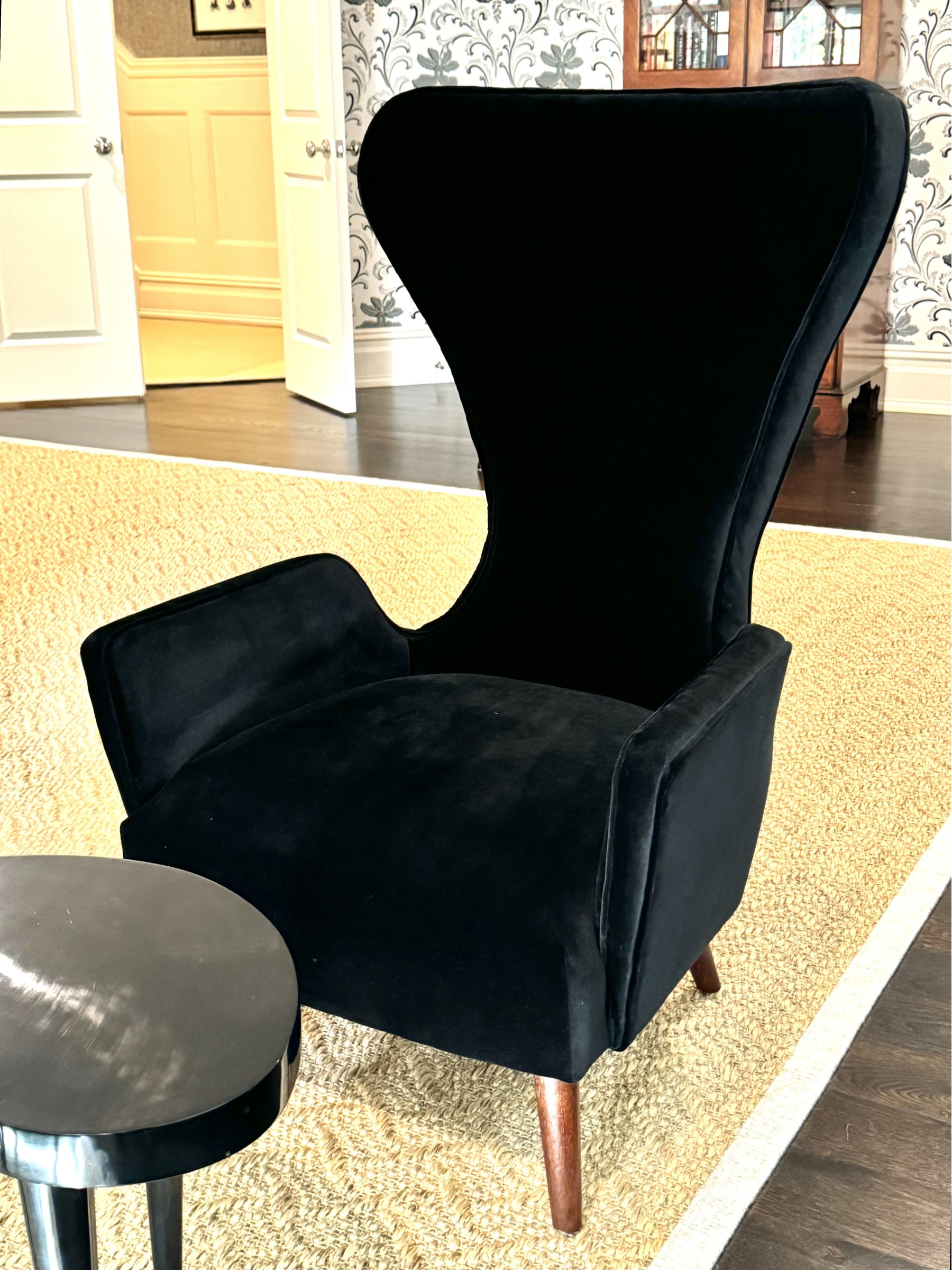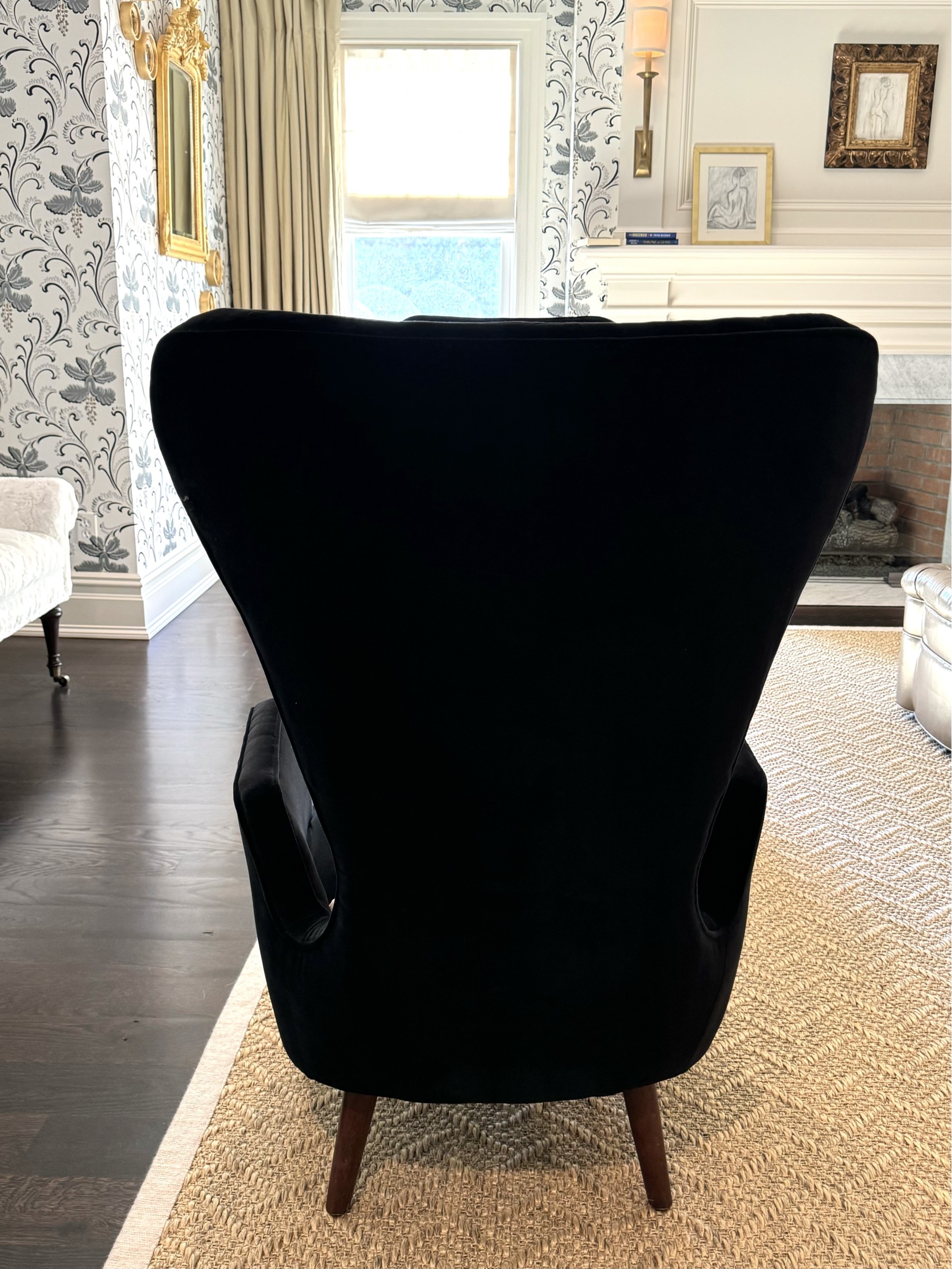 Pair of Contemporary Mid-Century Style Black Velvet Side Chairs with a Deco Flair!