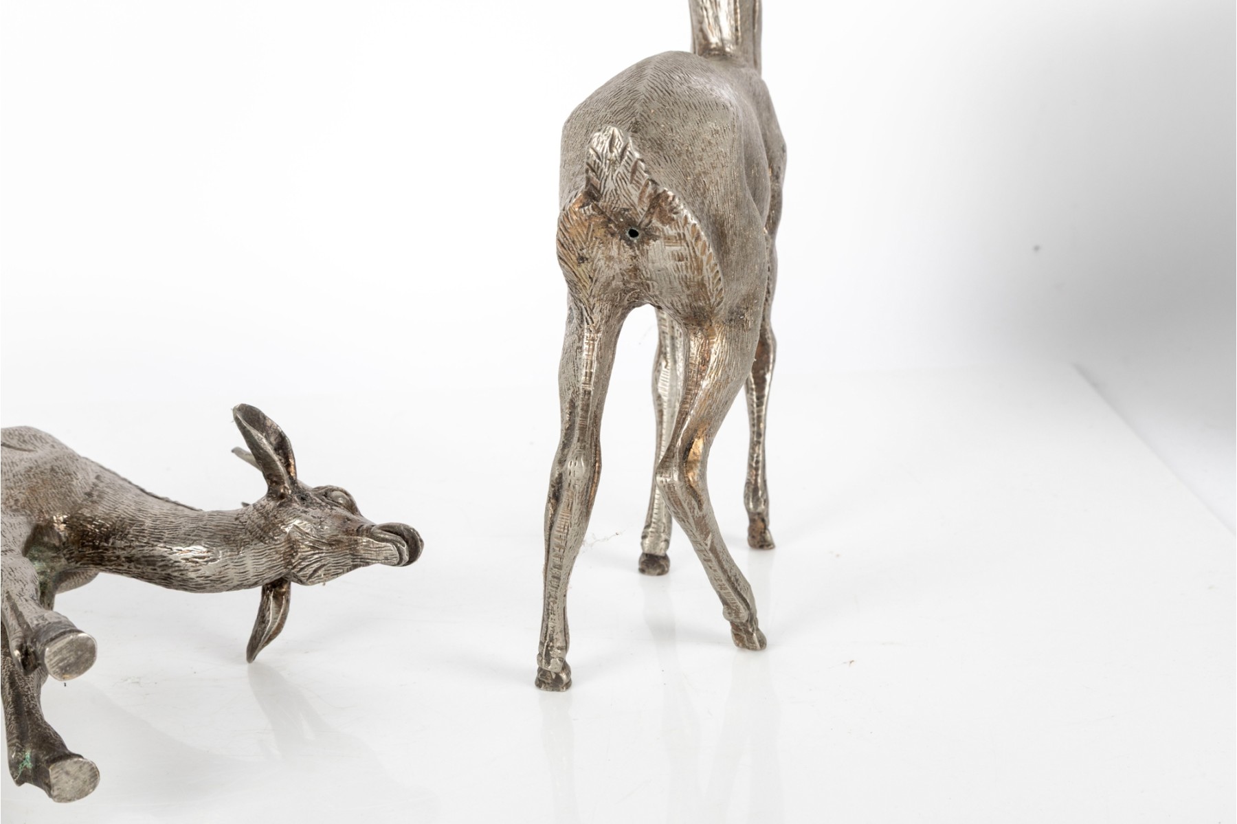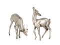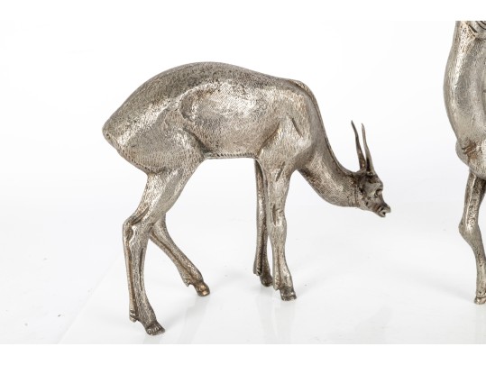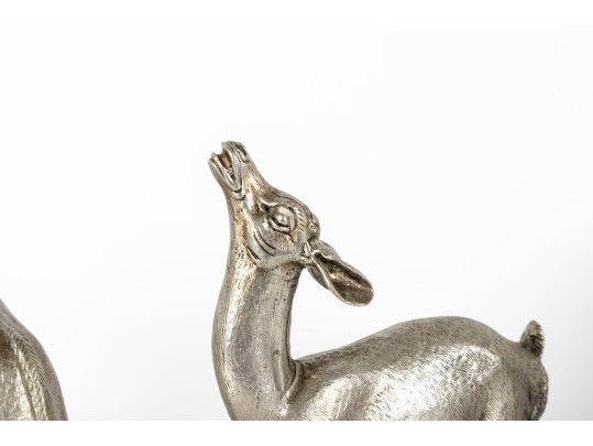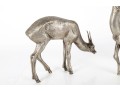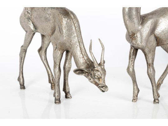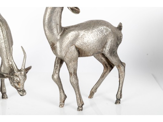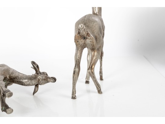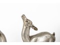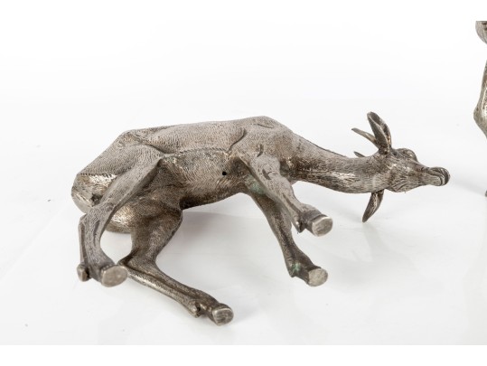 Two substantial solid metal deer figures with a silver finish, perfect for decorative use.