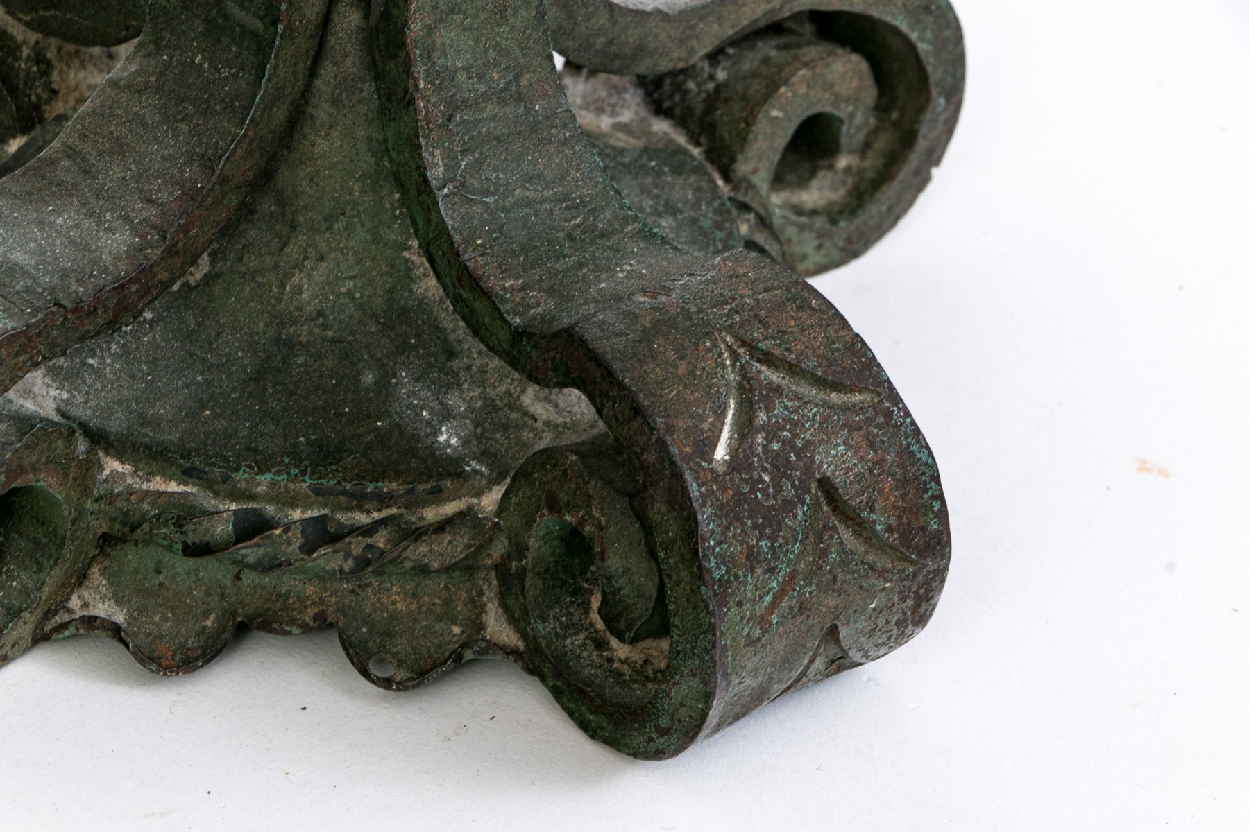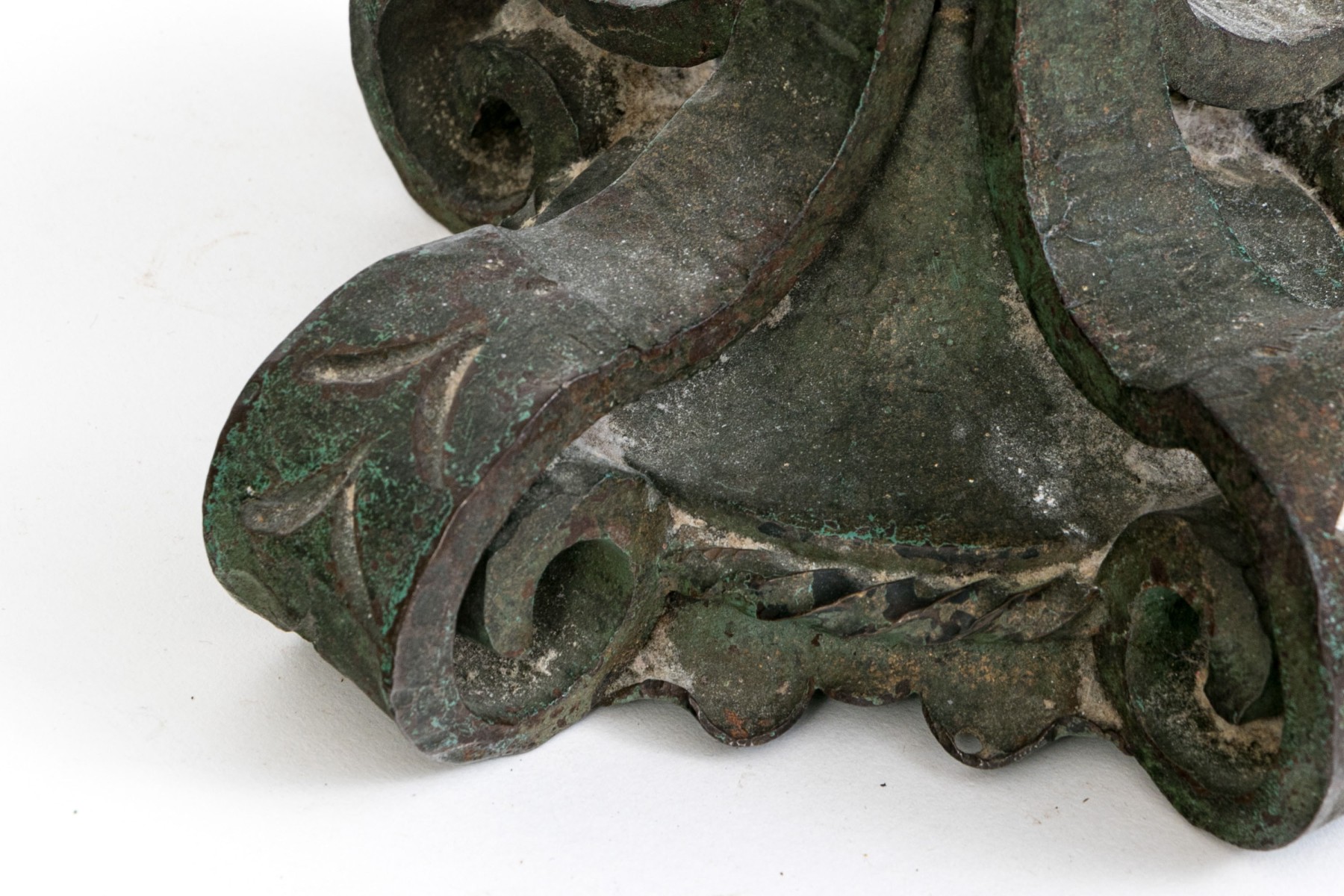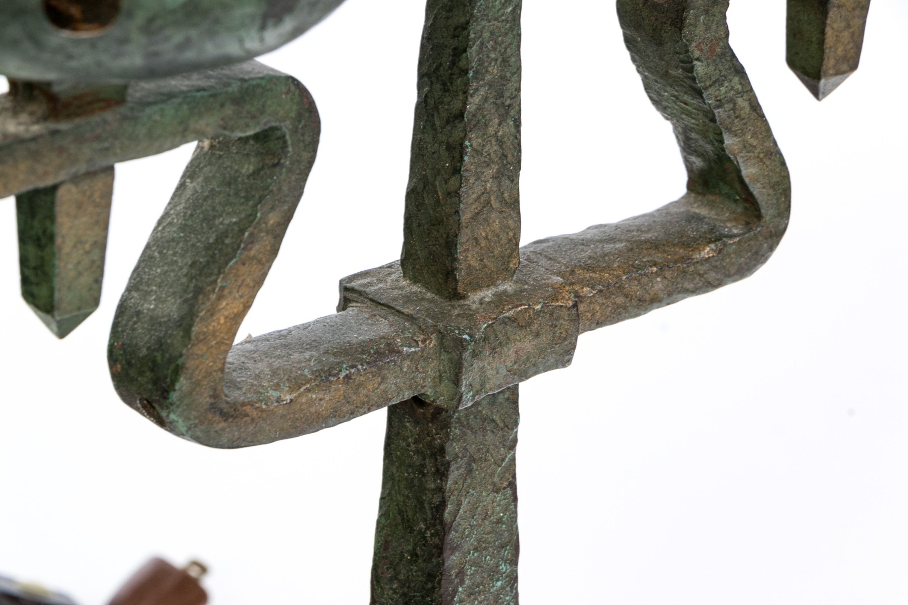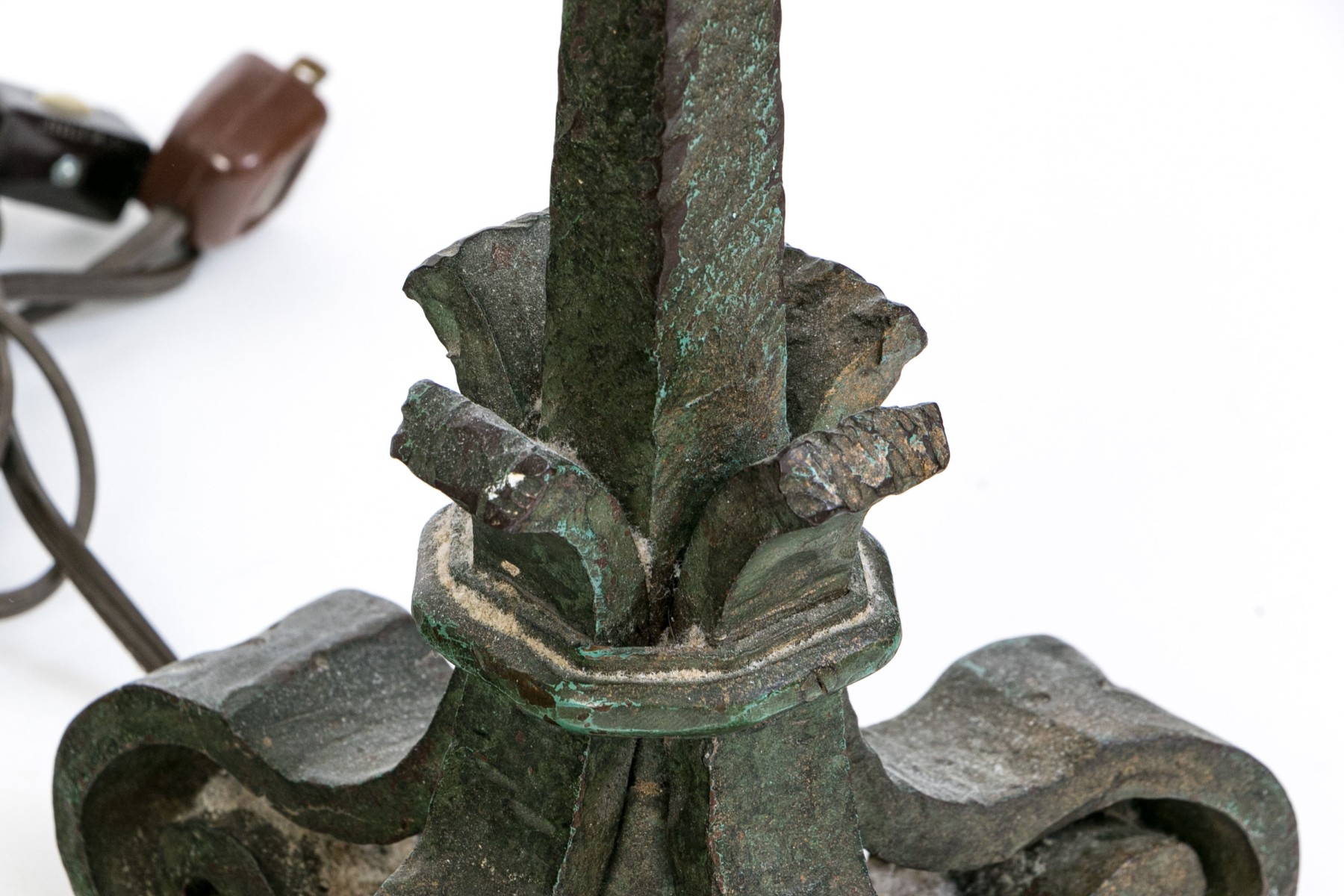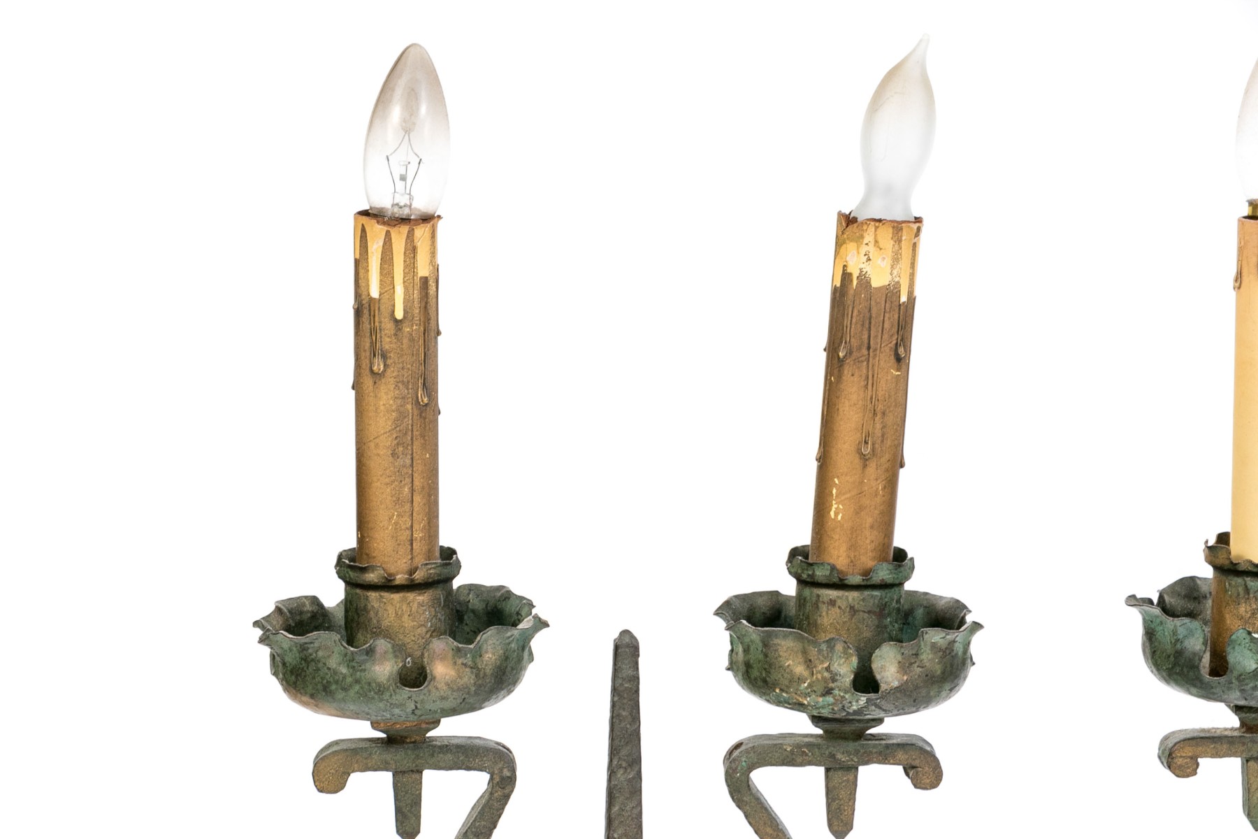 The iron two light candelabra form table lamps are charming. Raised on a base with four scrolled feet.