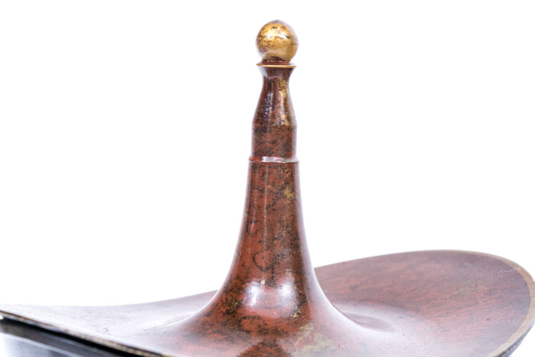 On oval foot with short pedestal and oval bowl with pair of lion mask and ring handles with lids having gilt ball form finials. Marked made in Italy underfoot.