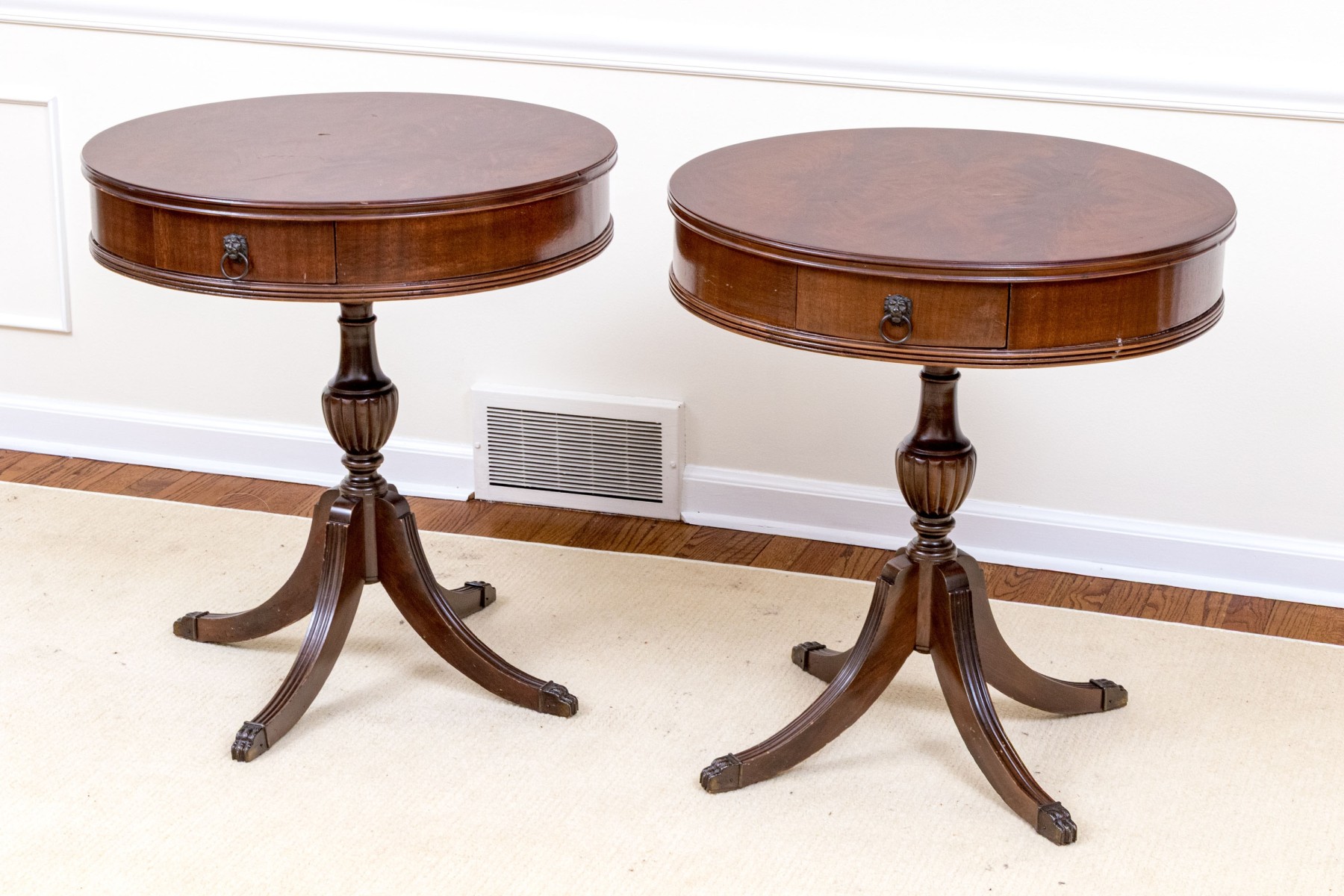 Pair Of Mahogany Drum Tables #456139. Black Rock Galleries provides high end estate liquidation services through online estate auctions and a 50,000 sq ft designer showroom. estate liquidator, estate sale, online auction, antiques, fine art, liquidation, clean outs, auction, consignment, interior design, fine jewelry, collectibles, appraisals, estate appraisals, estate services, decor, furniture, furniture consignment, antique center, consignment shop. We offer appraisal services and specialize in fine art, jewelry, antiques and decorative arts. Sell with us. Black Rock Galleries is the tri-state's largest estate liquidator serving New England and the greater New York City area. We are the trusted source for expert appraisals, auction services, estate sales, and consignments. Black Rock Galleries is the east coast's largest and most trusted estate liquidator, with locations in Connecticut, greater Boston, MA and Raleigh, NC, Fairfield, Southport, Apex, TX. We are the best source for expert appraisals, auction services, estate sales and consignments. We have served thousands of families and estates with compassion, professionalism and expertise. BRG works with attorneys, executors, realtors and families to bring the greatest return on personal and estate property in the current market. Our unique combination of services make us the easy choice to get the job done in a timely and stress-free manner. We are with you from the initial consultation to the final clean out. Our house-built online auction software platform offers clients a dynamic approach to liquidating their personal property. This venue is most successful in bringing the best return with the least amount of disruption for our clients. See our services page for a complete description of this offering. Pair Of Mahogany Drum Tables #456139