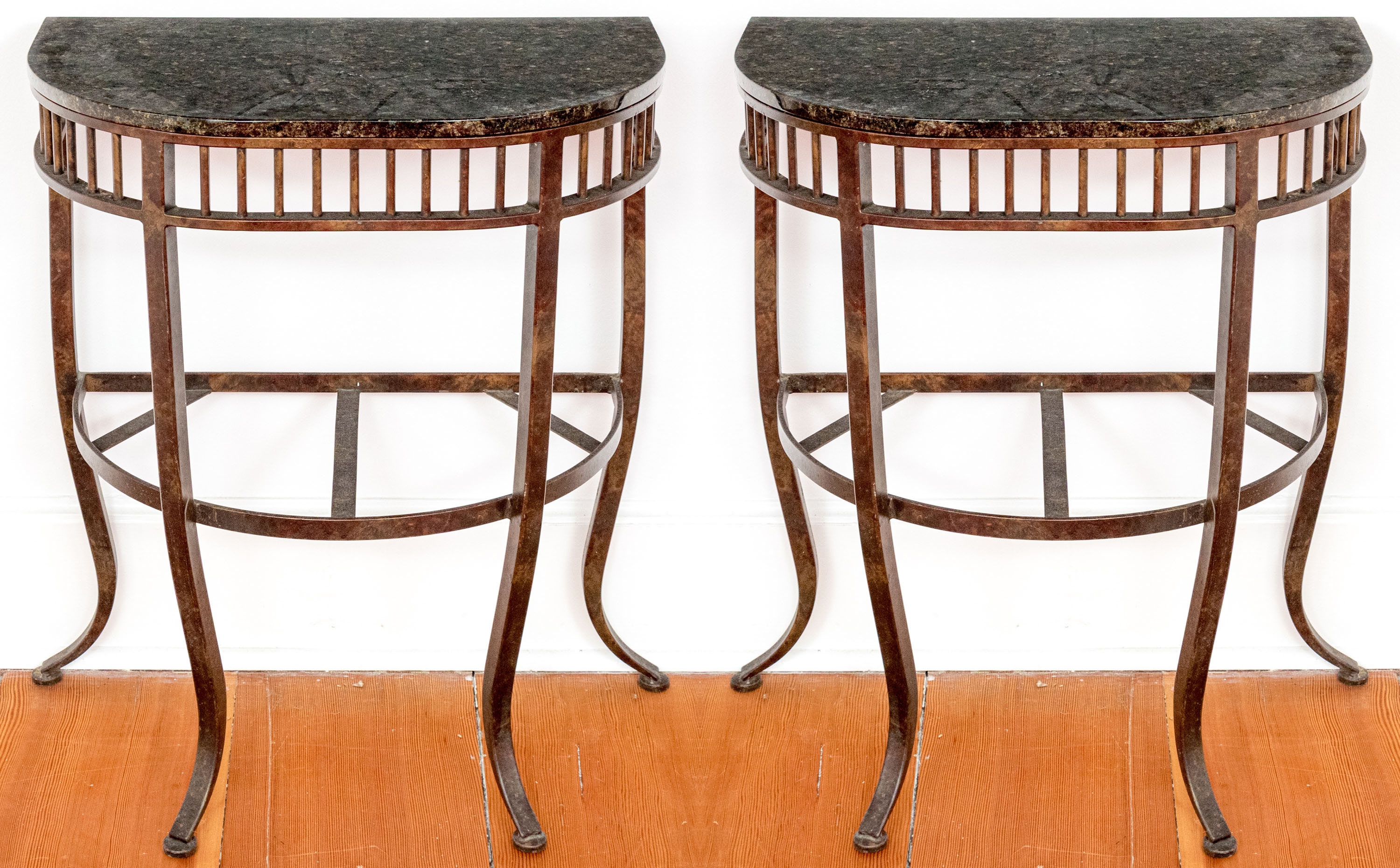 Pair Of Marble Top Iron Framed Consoles #462786. Black Rock Galleries provides high end estate liquidation services through online estate auctions and a 50,000 sq ft designer showroom. estate liquidator, estate sale, online auction, antiques, fine art, liquidation, clean outs, auction, consignment, interior design, fine jewelry, collectibles, appraisals, estate appraisals, estate services, decor, furniture, furniture consignment, antique center, consignment shop. We offer appraisal services and specialize in fine art, jewelry, antiques and decorative arts. Sell with us. Black Rock Galleries is the tri-state's largest estate liquidator serving New England and the greater New York City area. We are the trusted source for expert appraisals, auction services, estate sales, and consignments. Black Rock Galleries is the east coast's largest and most trusted estate liquidator, with locations in Connecticut, greater Boston, MA and Raleigh, NC, Fairfield, Southport, Apex, TX. We are the best source for expert appraisals, auction services, estate sales and consignments. We have served thousands of families and estates with compassion, professionalism and expertise. BRG works with attorneys, executors, realtors and families to bring the greatest return on personal and estate property in the current market. Our unique combination of services make us the easy choice to get the job done in a timely and stress-free manner. We are with you from the initial consultation to the final clean out. Our house-built online auction software platform offers clients a dynamic approach to liquidating their personal property. This venue is most successful in bringing the best return with the least amount of disruption for our clients. See our services page for a complete description of this offering. Pair Of Marble Top Iron Framed Consoles #462786