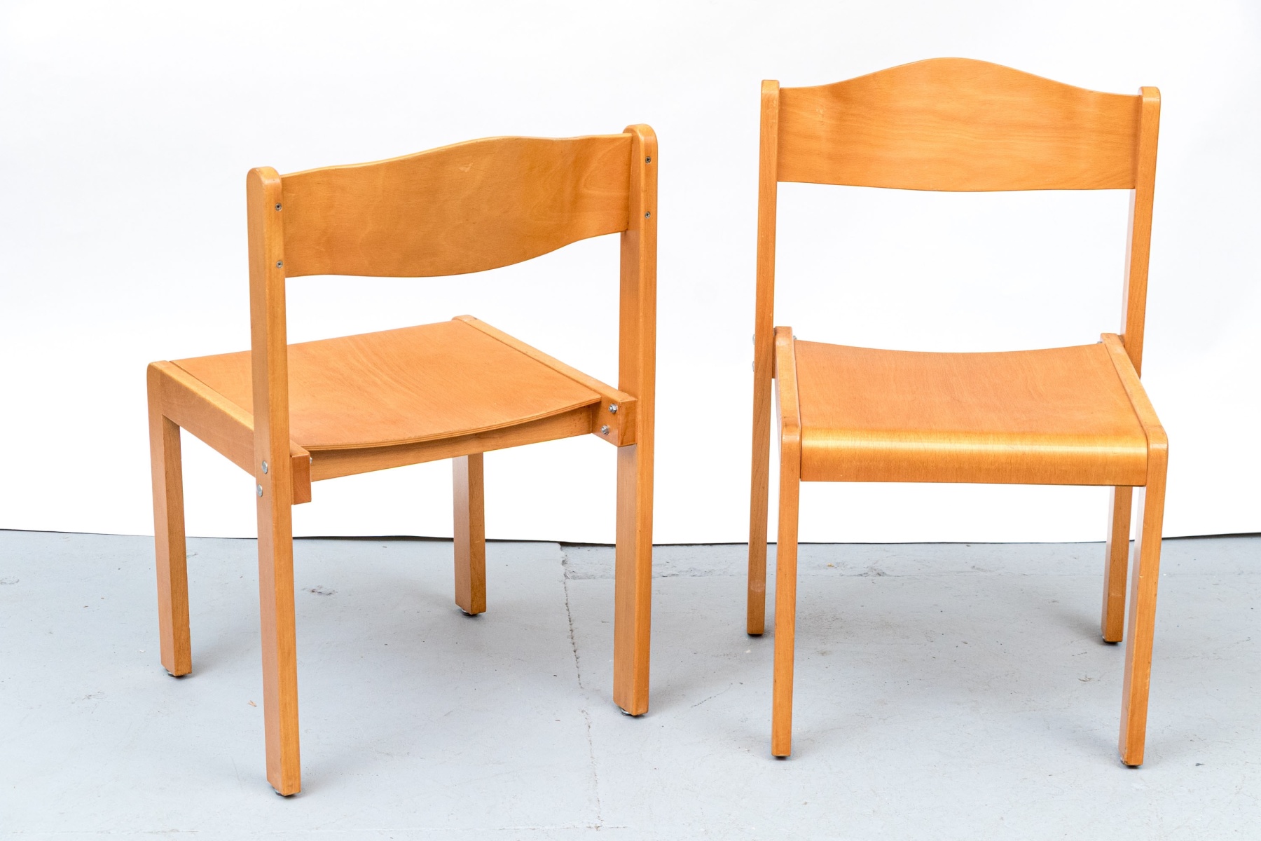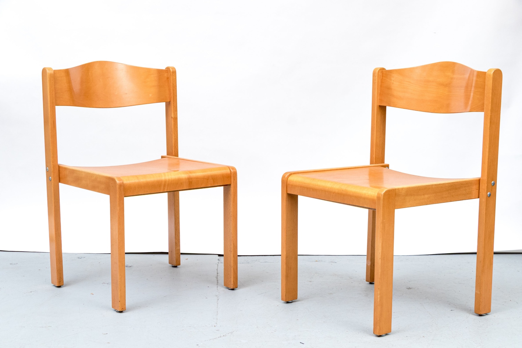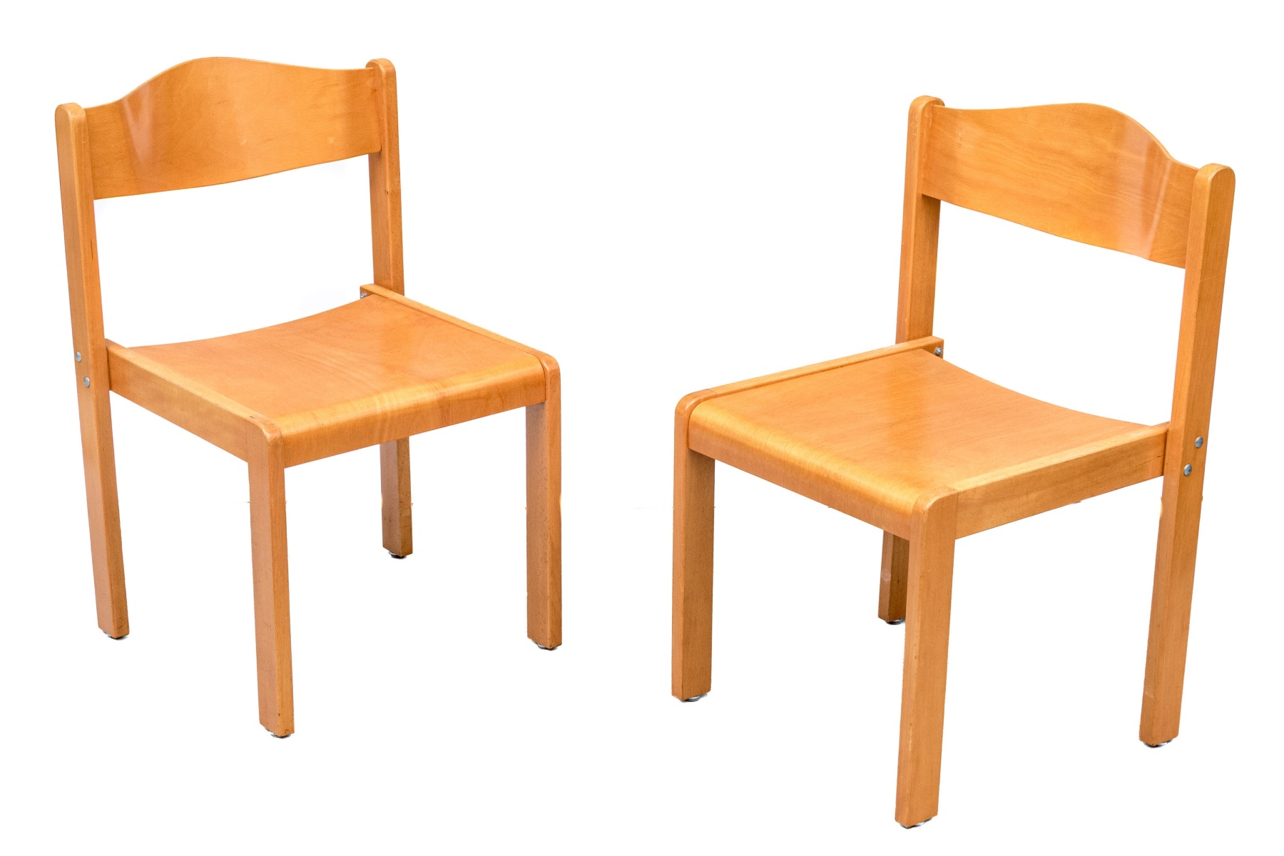 Simplistically carved and finish, both stand on four legs with seat and camelback form seat back.