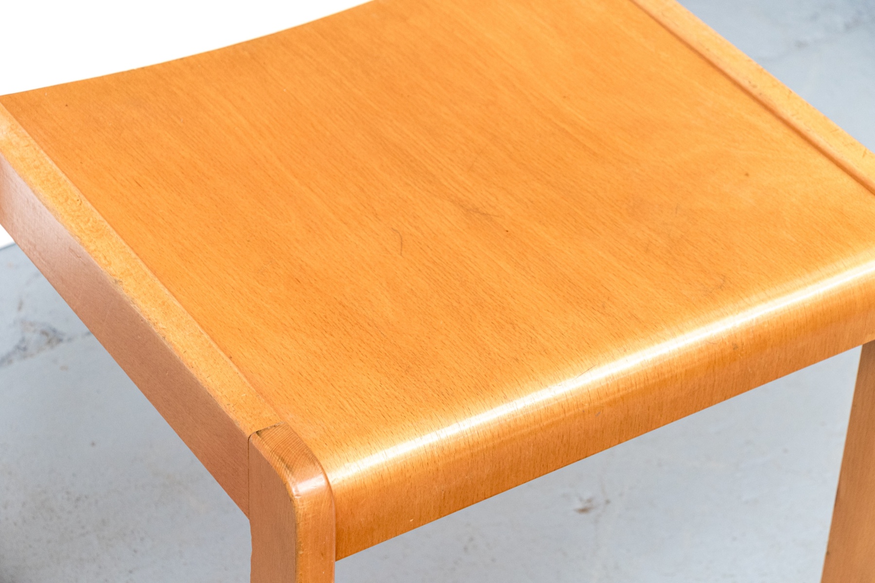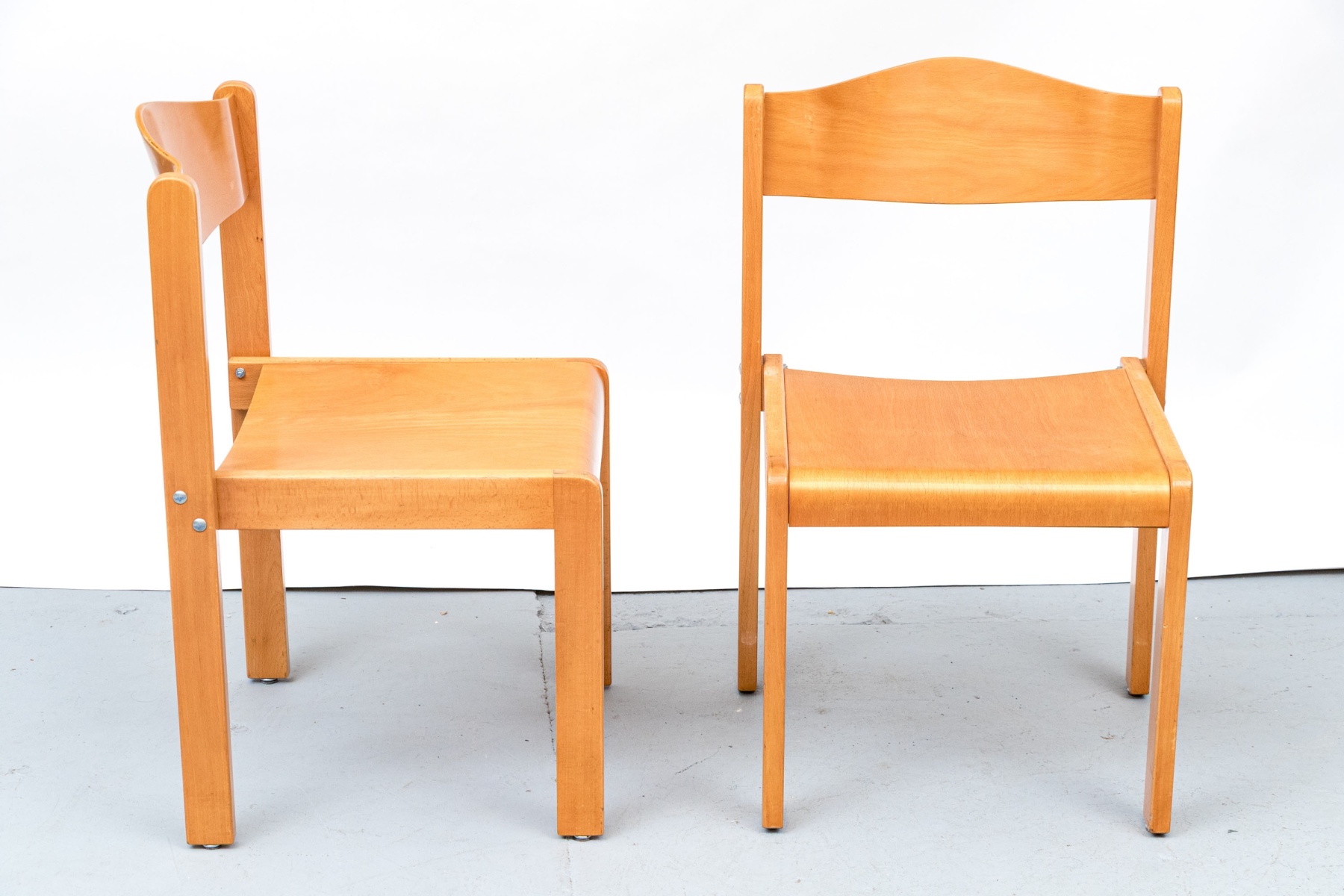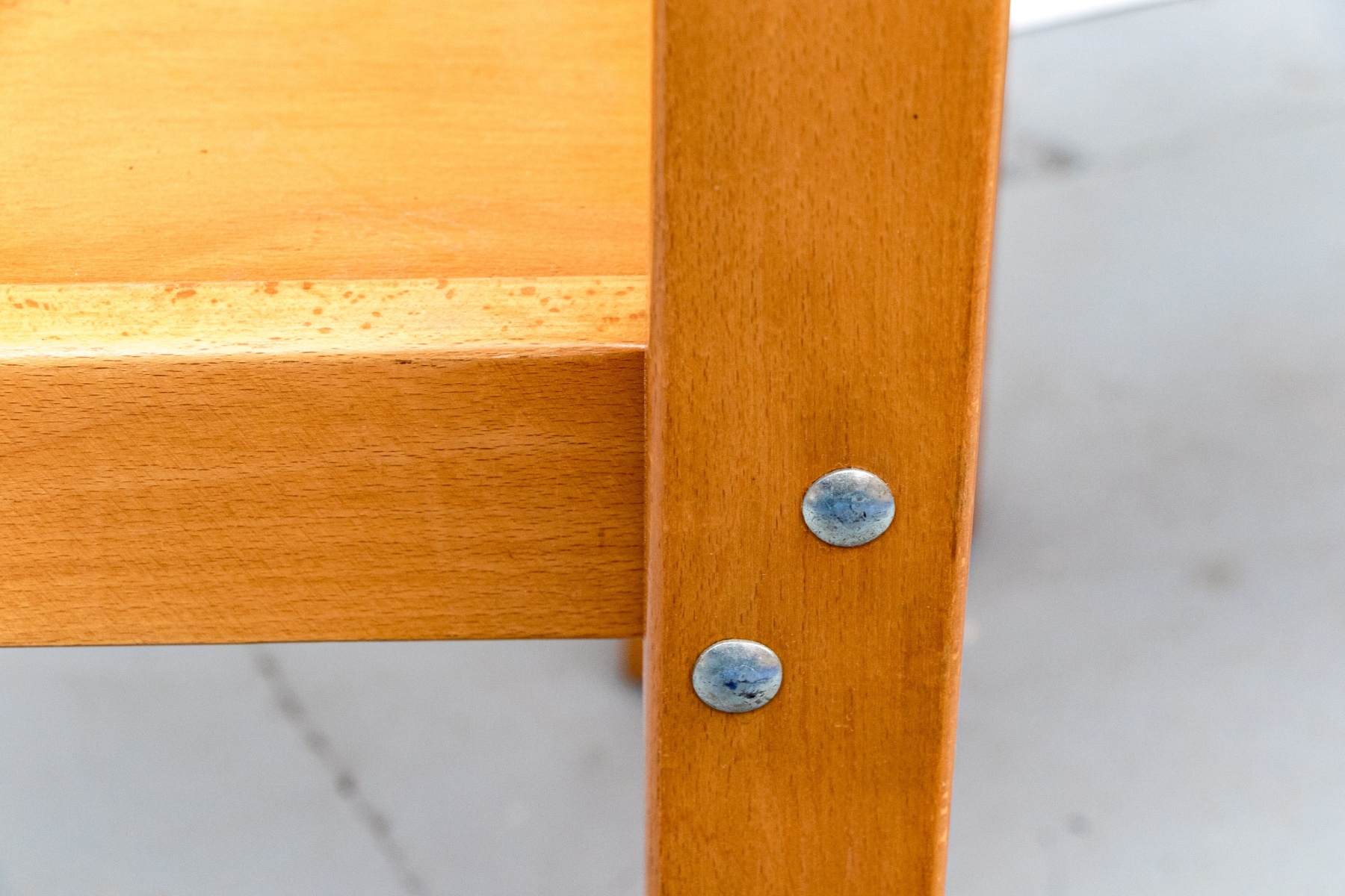 Simplistically carved and finish, both stand on four legs with seat and camelback form seat back.