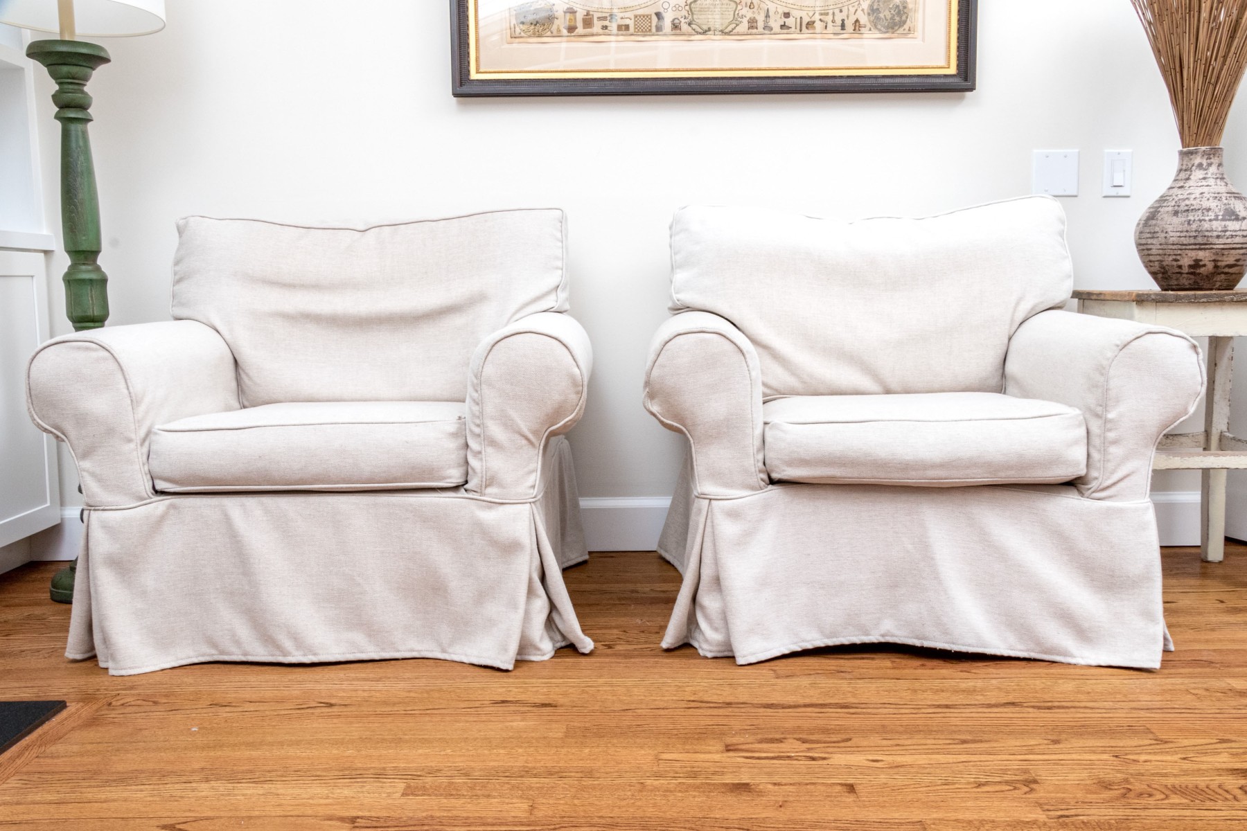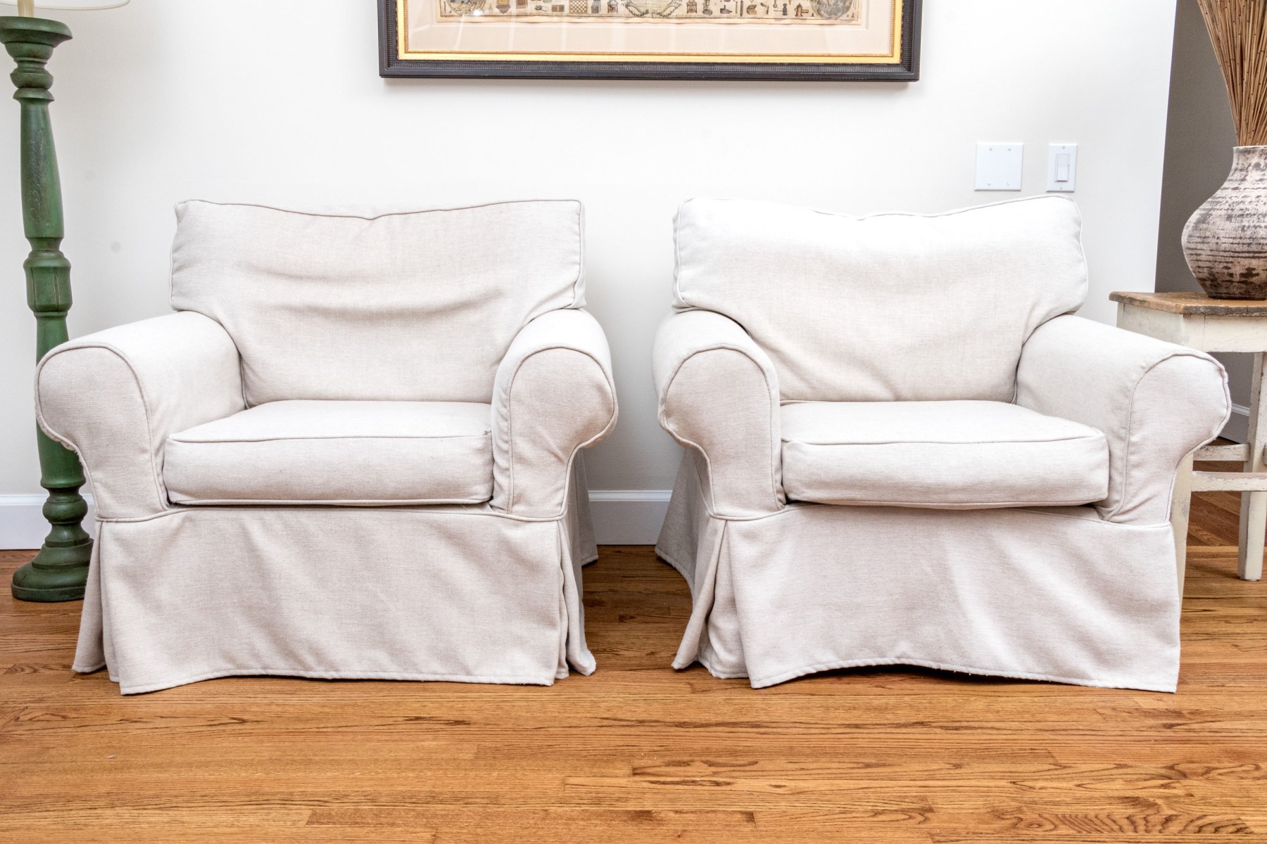 Pair Of Mitchell Gold For Pottery Barn Slipcovered Club Chairs #331909. Black Rock Galleries provides high end estate liquidation services through online estate auctions and a 50,000 sq ft designer showroom. estate liquidator, estate sale, online auction, antiques, fine art, liquidation, clean outs, auction, consignment, interior design, fine jewelry, collectibles, appraisals, estate appraisals, estate services, decor, furniture, furniture consignment, antique center, consignment shop. We offer appraisal services and specialize in fine art, jewelry, antiques and decorative arts. Sell with us. Black Rock Galleries is the tri-state's largest estate liquidator serving New England and the greater New York City area. We are the trusted source for expert appraisals, auction services, estate sales, and consignments. Black Rock Galleries is the east coast's largest and most trusted estate liquidator, with locations in Connecticut, greater Boston, MA and Raleigh, NC, Fairfield, Southport, Apex, TX. We are the best source for expert appraisals, auction services, estate sales and consignments. We have served thousands of families and estates with compassion, professionalism and expertise. BRG works with attorneys, executors, realtors and families to bring the greatest return on personal and estate property in the current market. Our unique combination of services make us the easy choice to get the job done in a timely and stress-free manner. We are with you from the initial consultation to the final clean out. Our house-built online auction software platform offers clients a dynamic approach to liquidating their personal property. This venue is most successful in bringing the best return with the least amount of disruption for our clients. See our services page for a complete description of this offering. Pair Of Mitchell Gold For Pottery Barn Slipcovered Club Chairs #331909