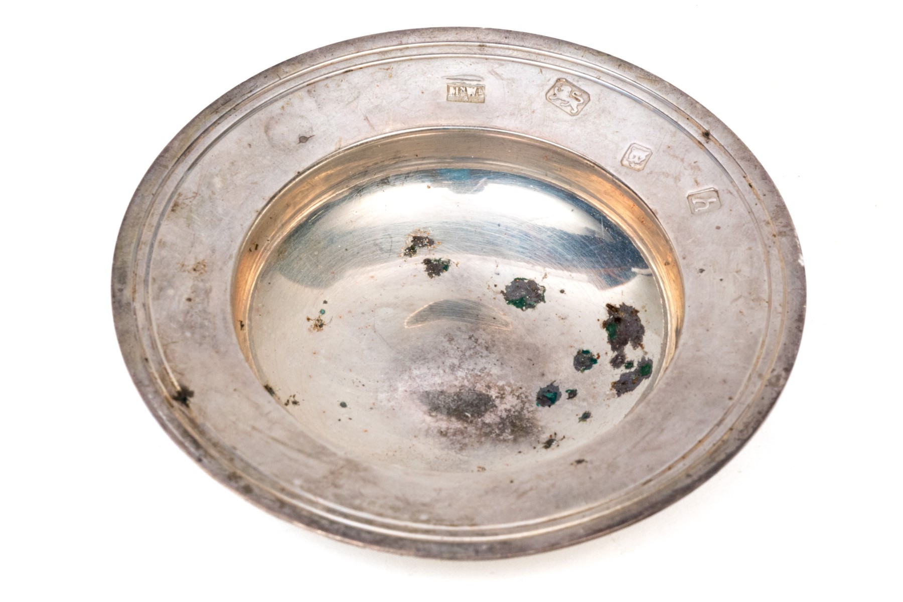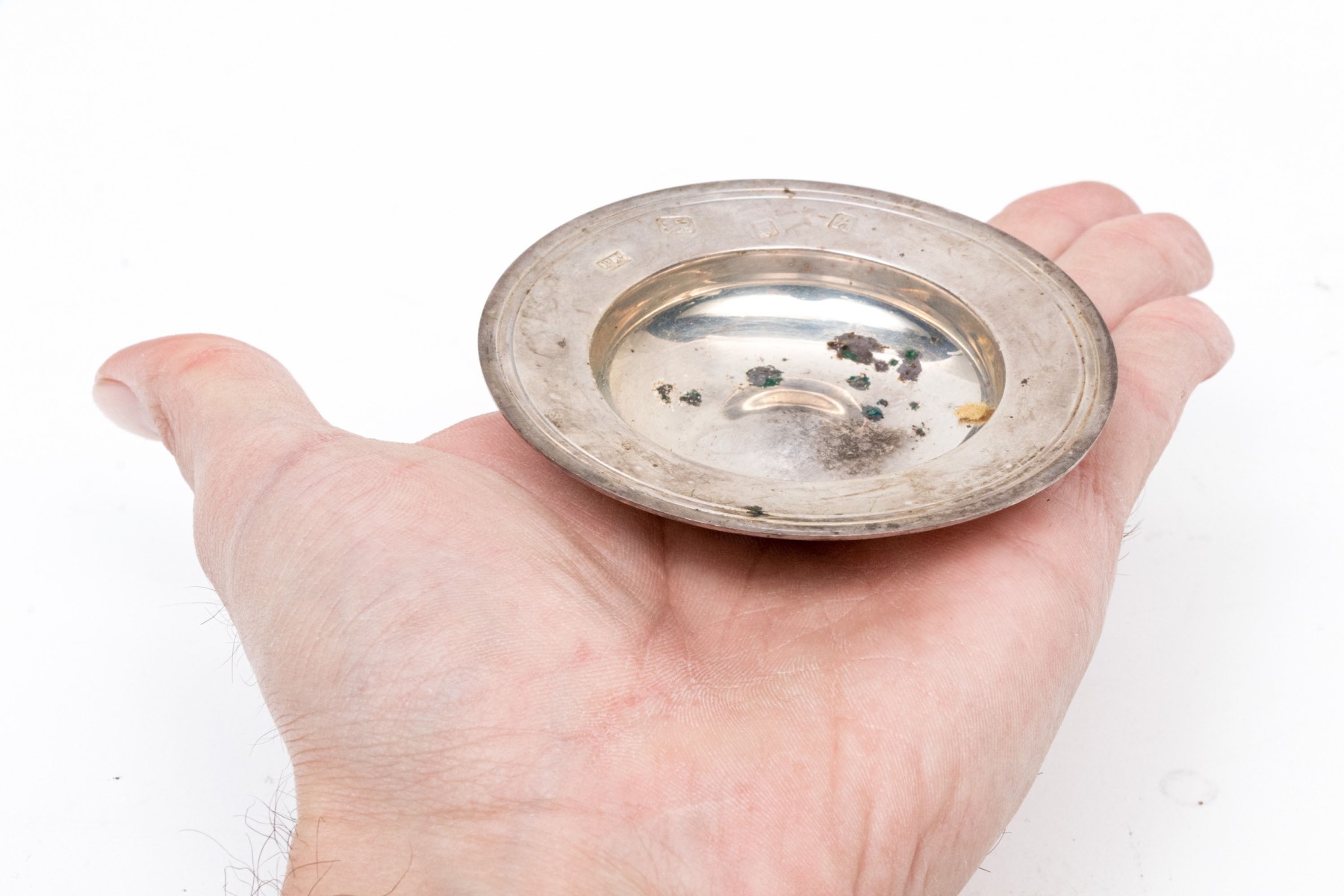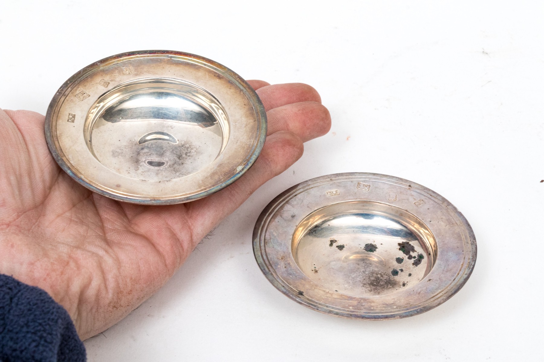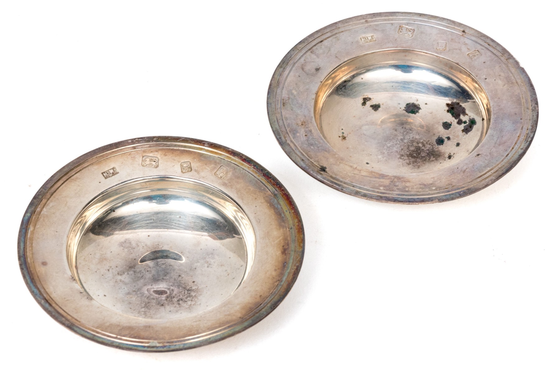 By Mappin & Webb, London, 1963-64. Small round trays each with a dimple in the center.