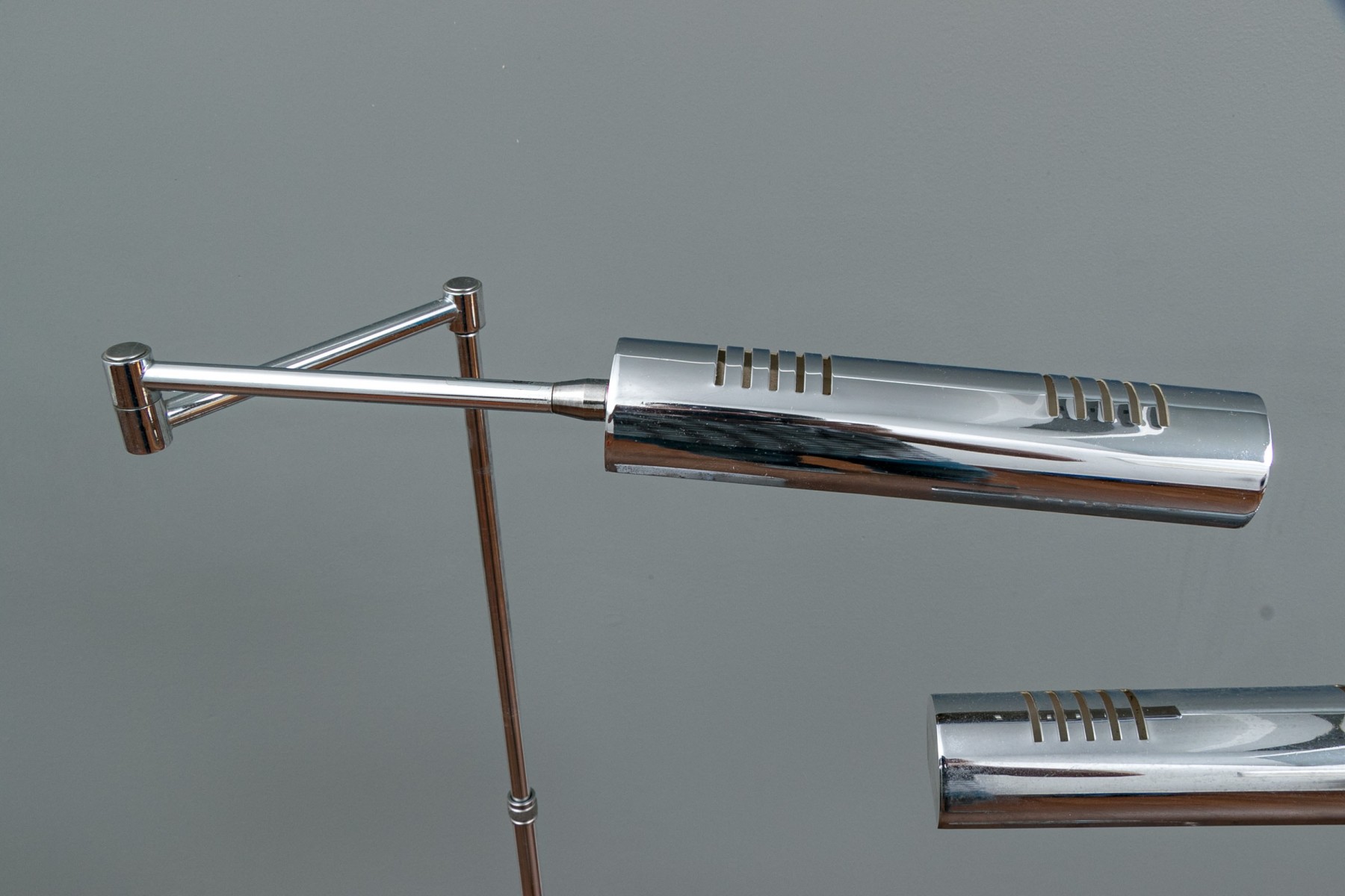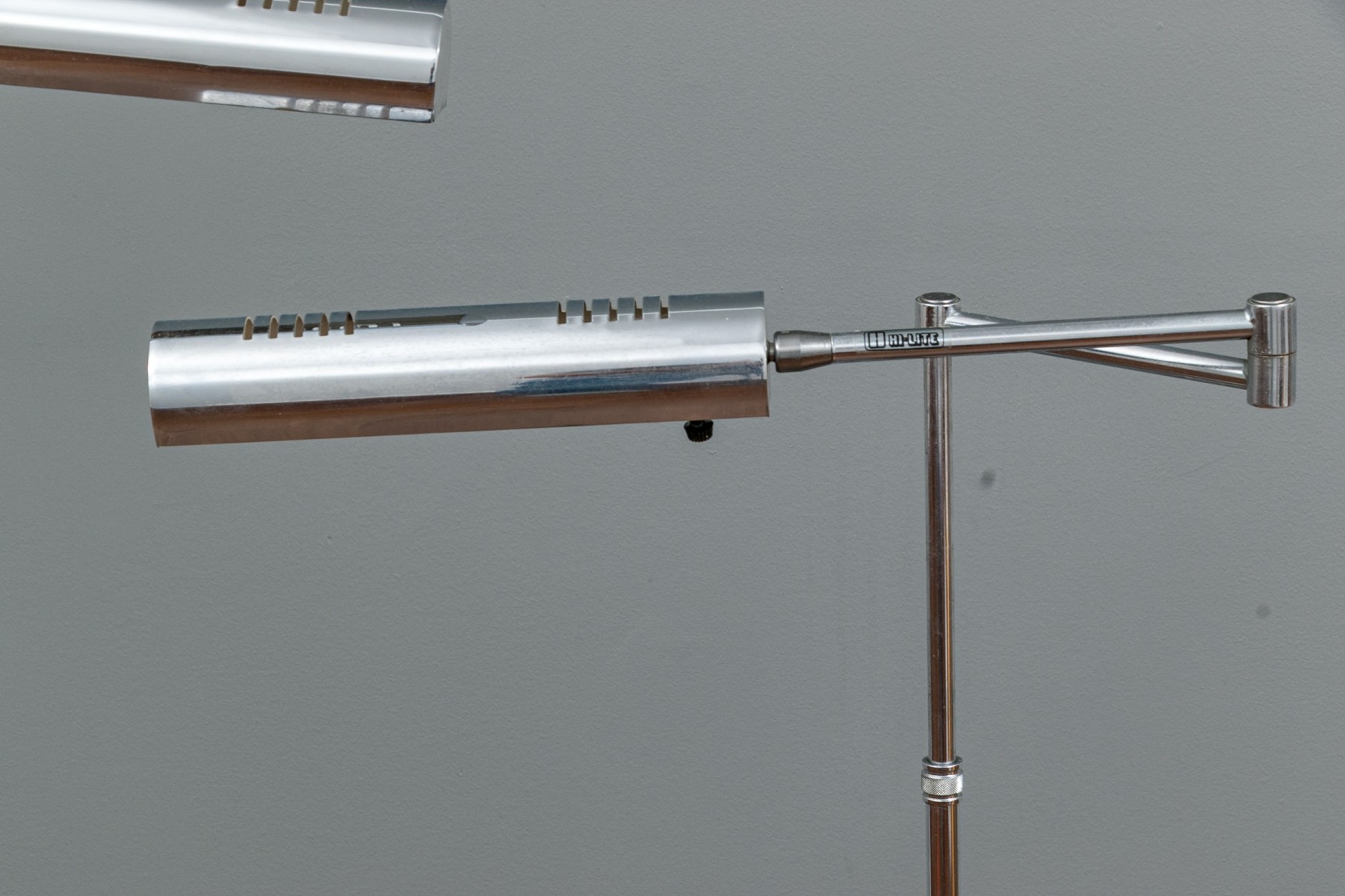 With adjustable shades, arms and standards. Mounted on circular bases.