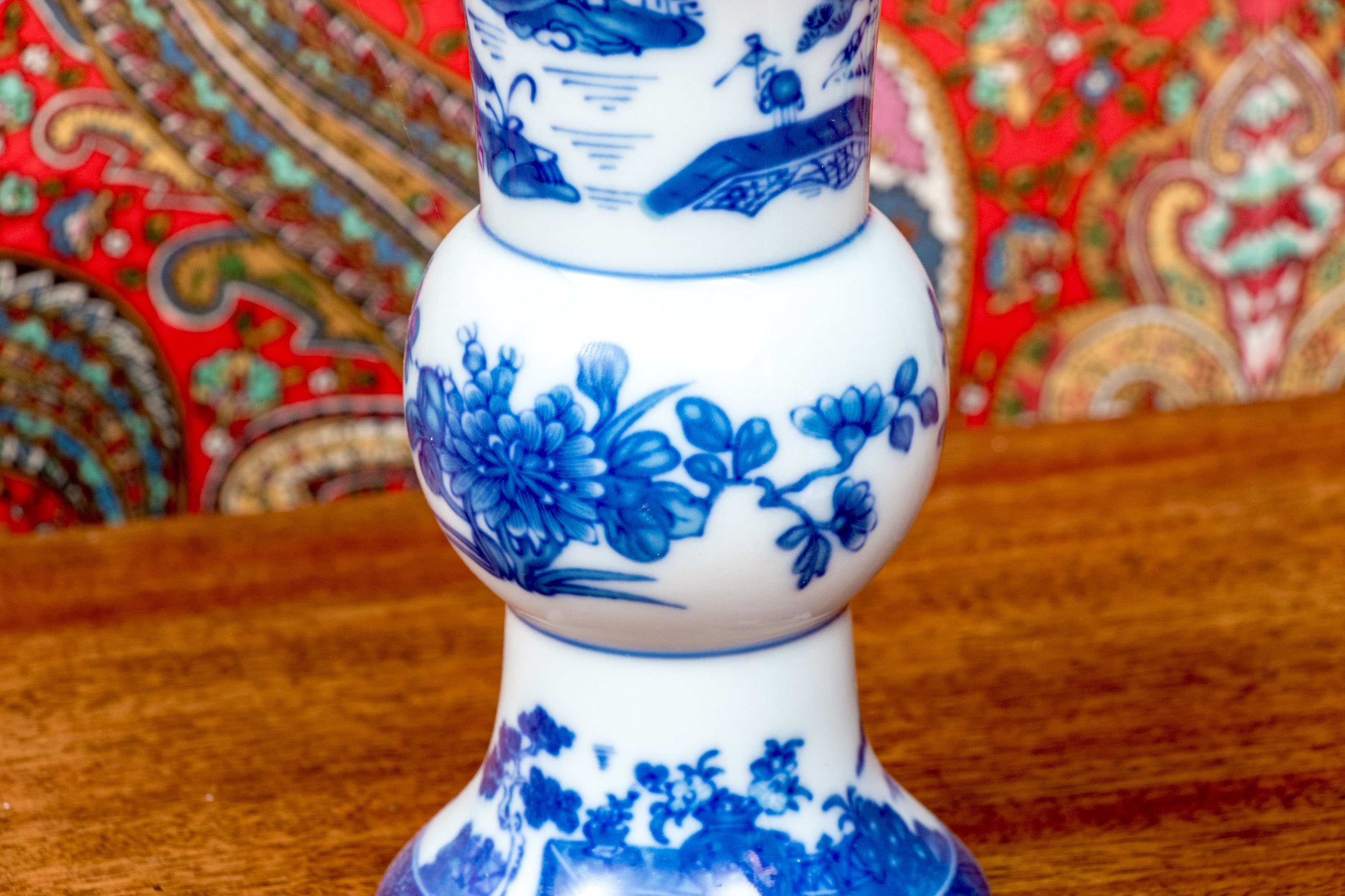 Formed in the Chinese form known as 'Gu' with beaker foot and mouth and bulbous center orb formed segment.