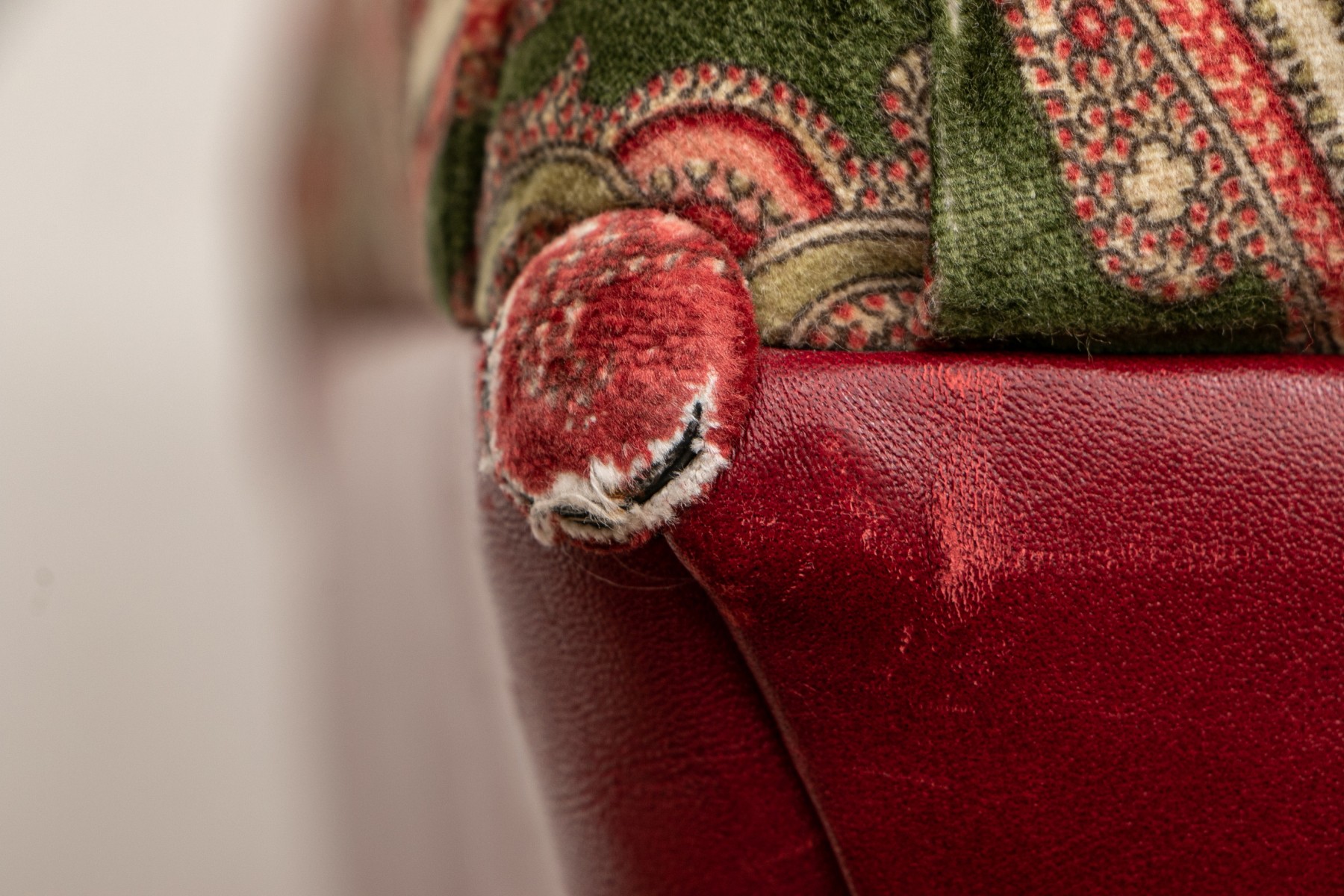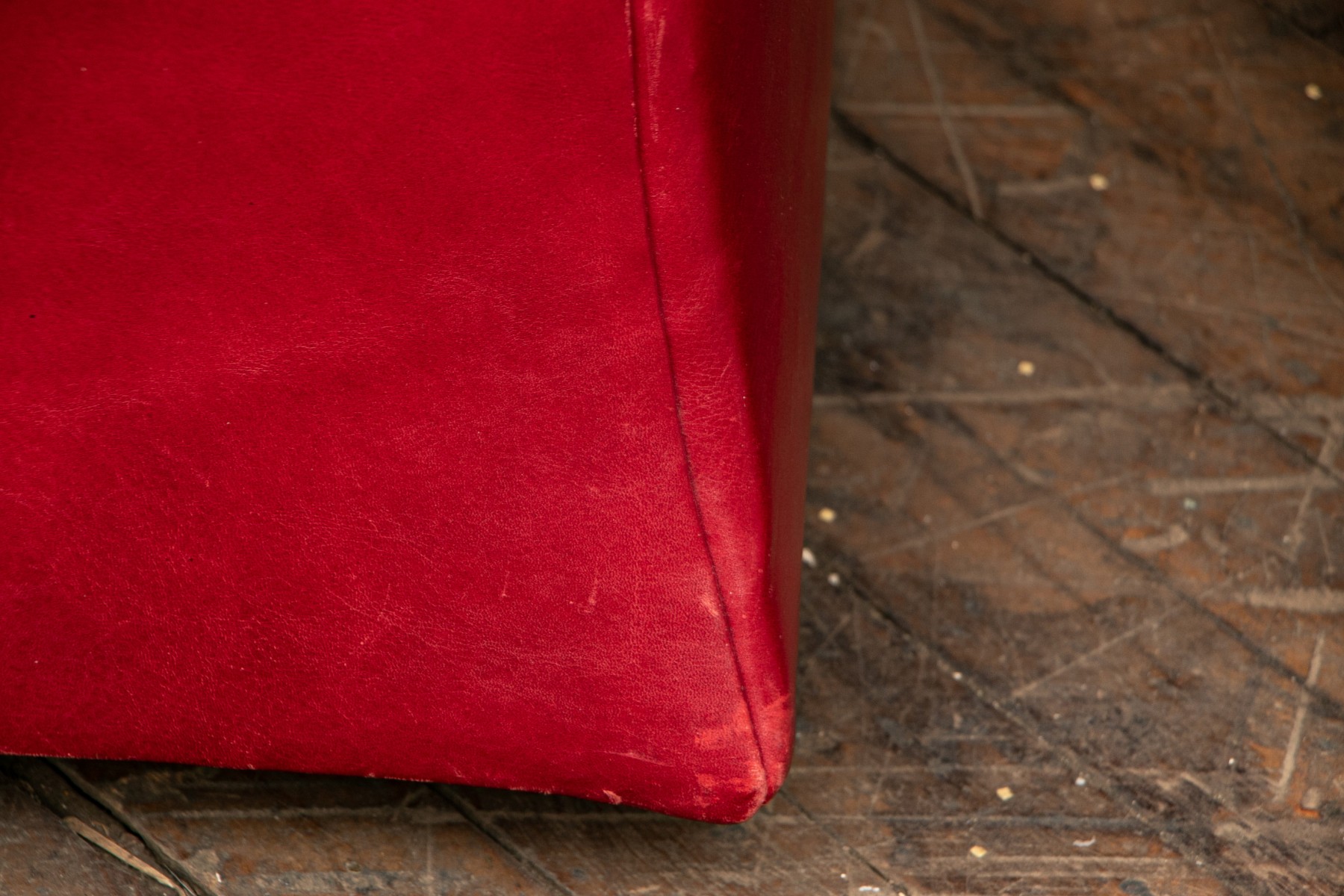 Buttons on the corners of the ottoman are worn, one is missing, some scrapes to the leather