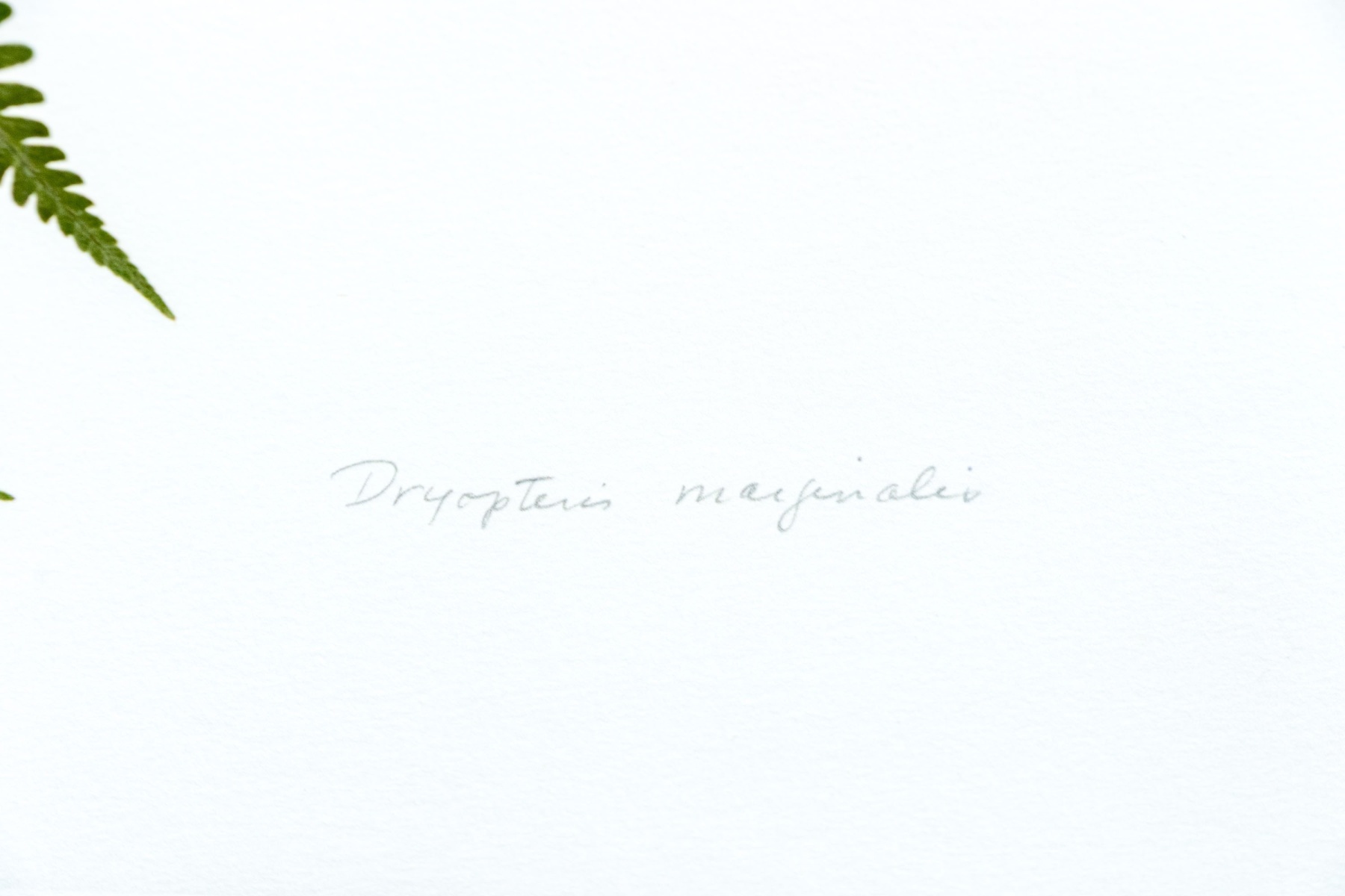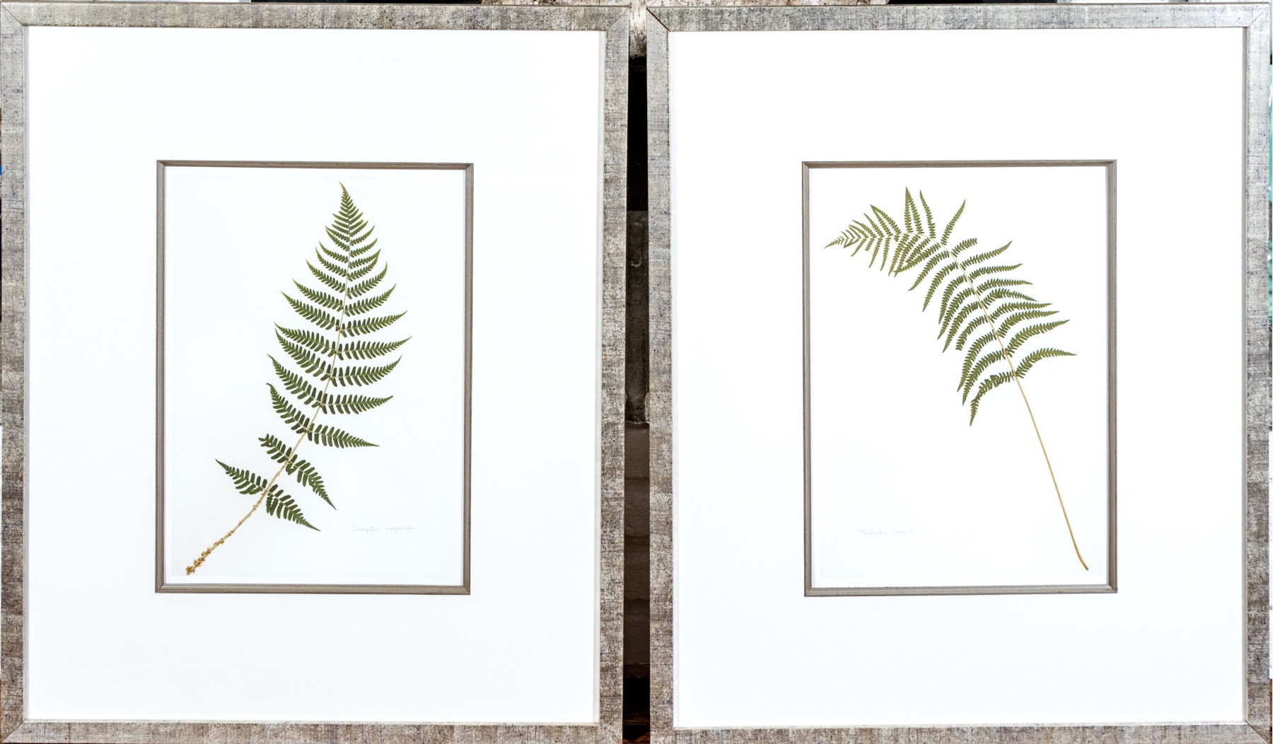 A fabulous duo of high quality prints depicting ferns in vibrant green against crisp white grounds, each pencil marked including "Dryopteris marginalis" and "Thelypteris palustris."