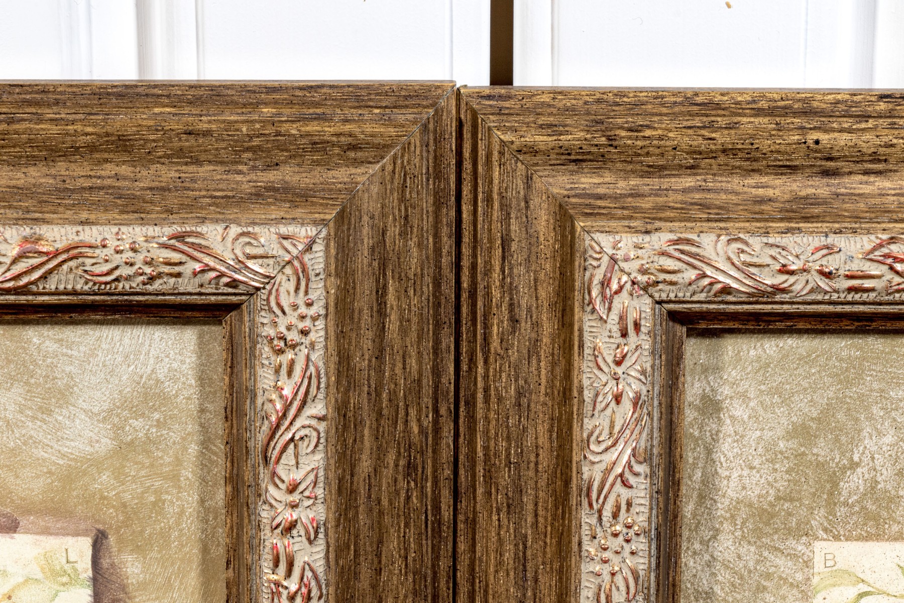 Presented glazed within carved and gilt frames.