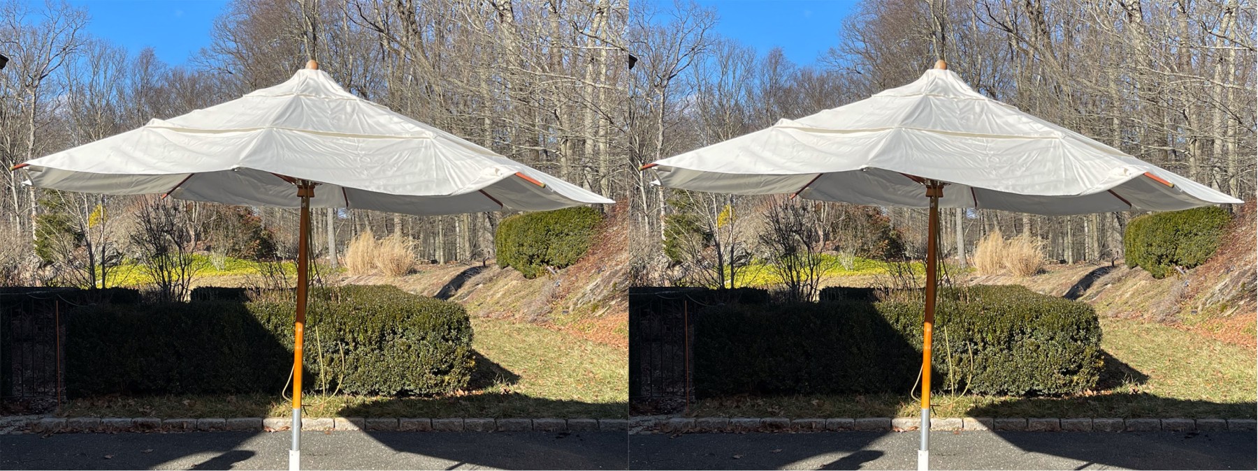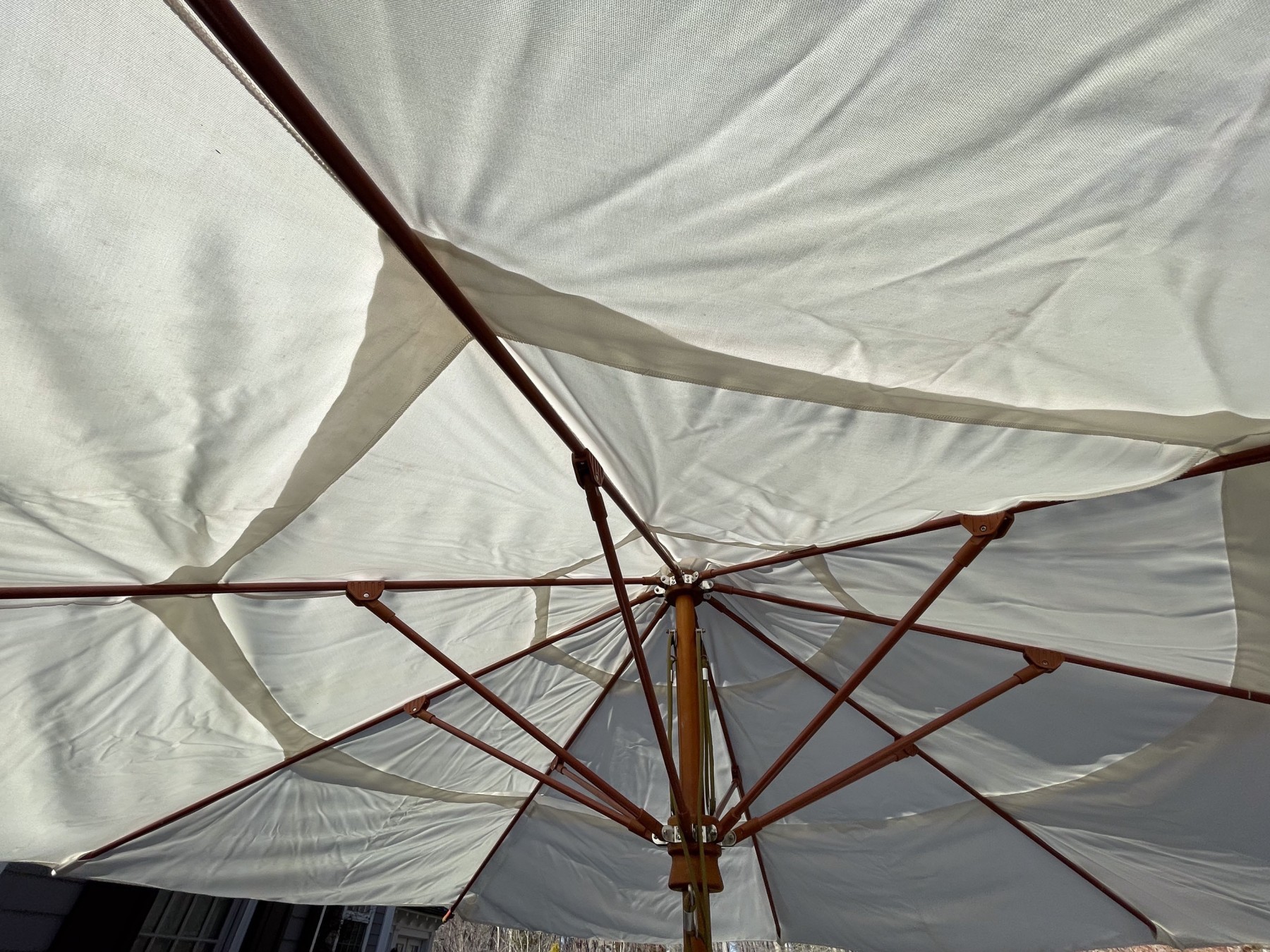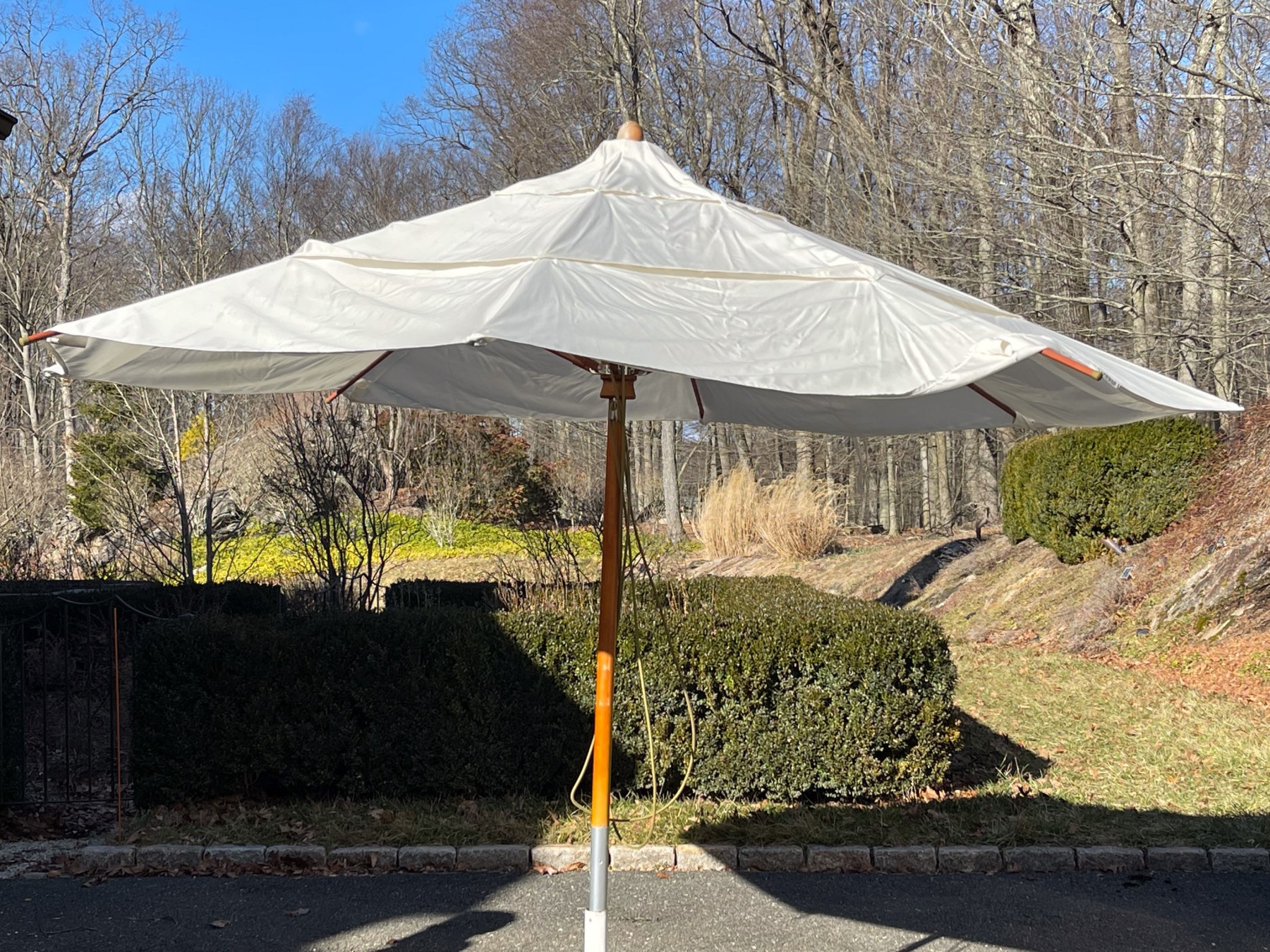 Condition: Wear to the umbrellas and surface scuffs and losses to the finished poles commensurate with some age and outdoor use. See lot images for further visual inspection as they are considered part of the lot condition report.