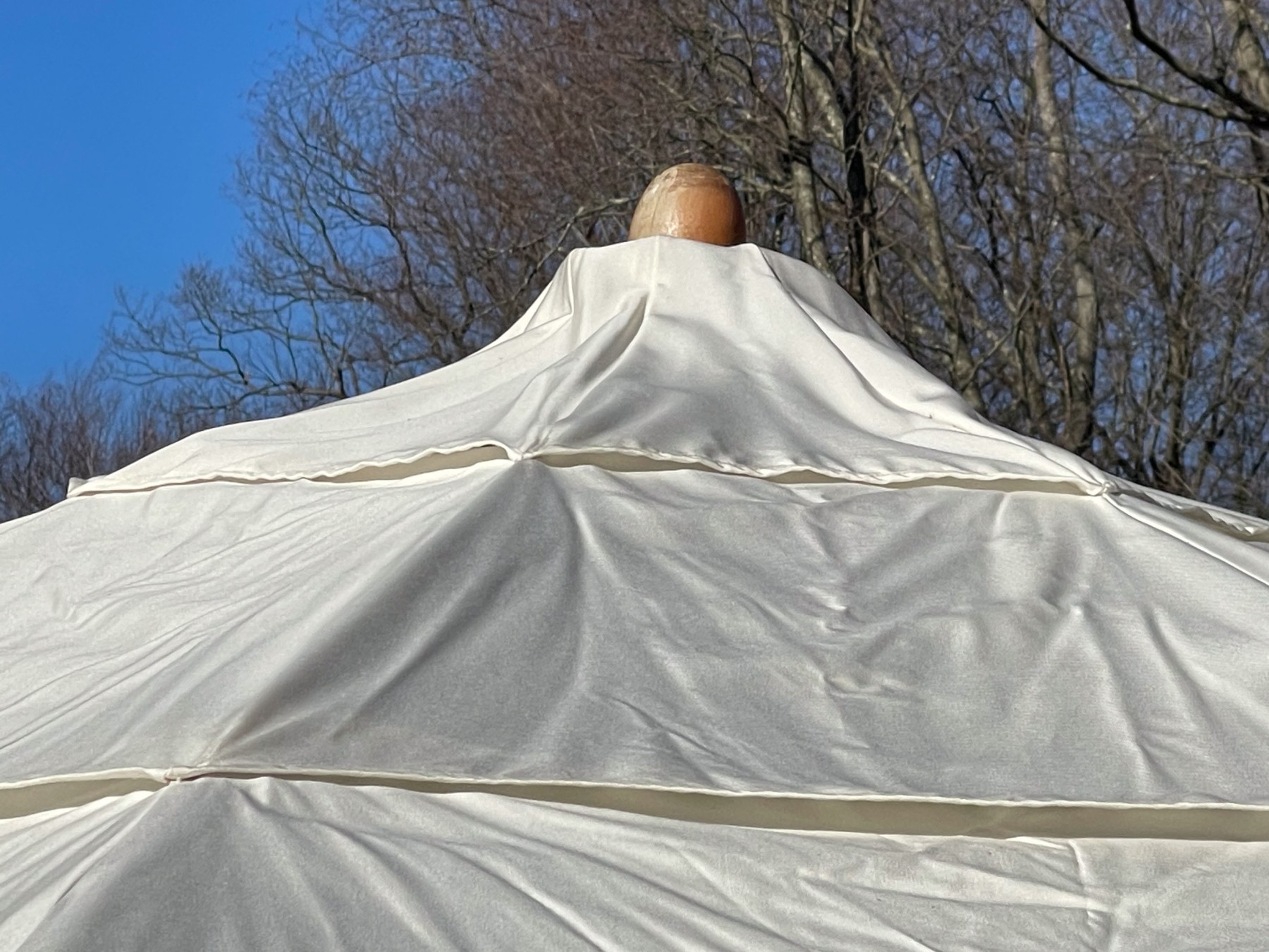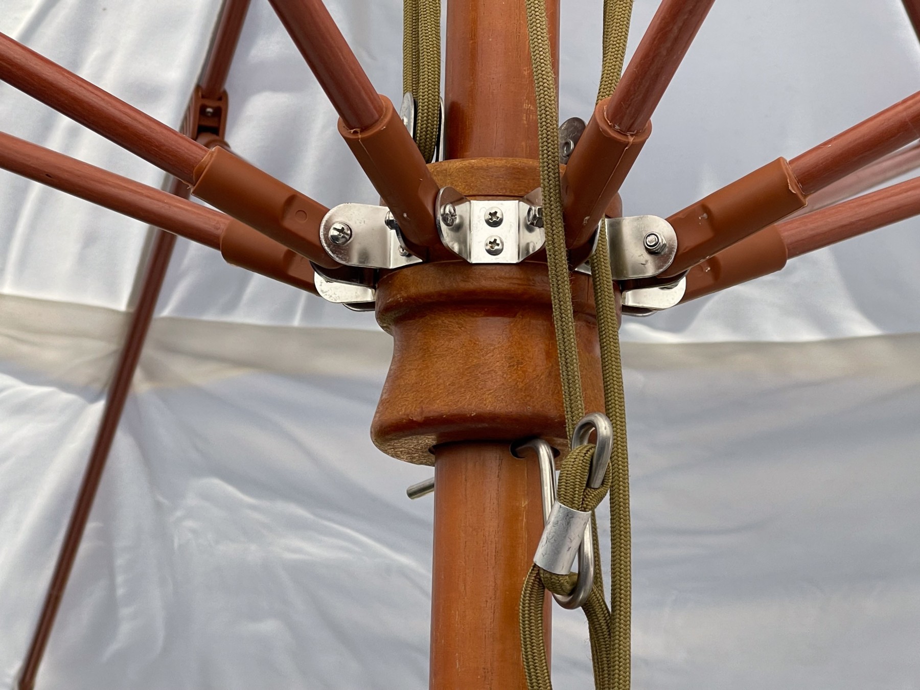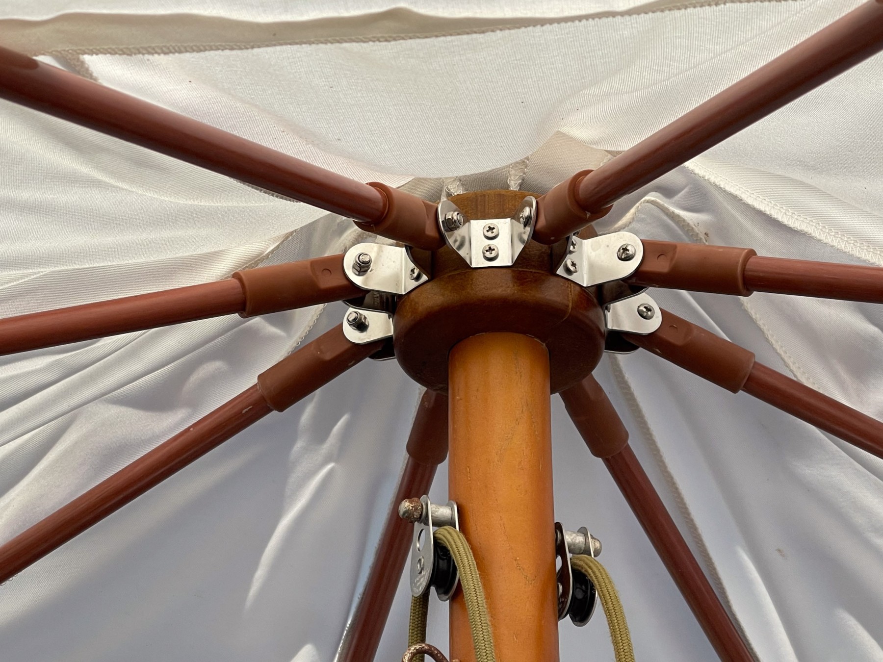 Condition: Wear to the umbrellas and surface scuffs and losses to the finished poles commensurate with some age and outdoor use. See lot images for further visual inspection as they are considered part of the lot condition report.