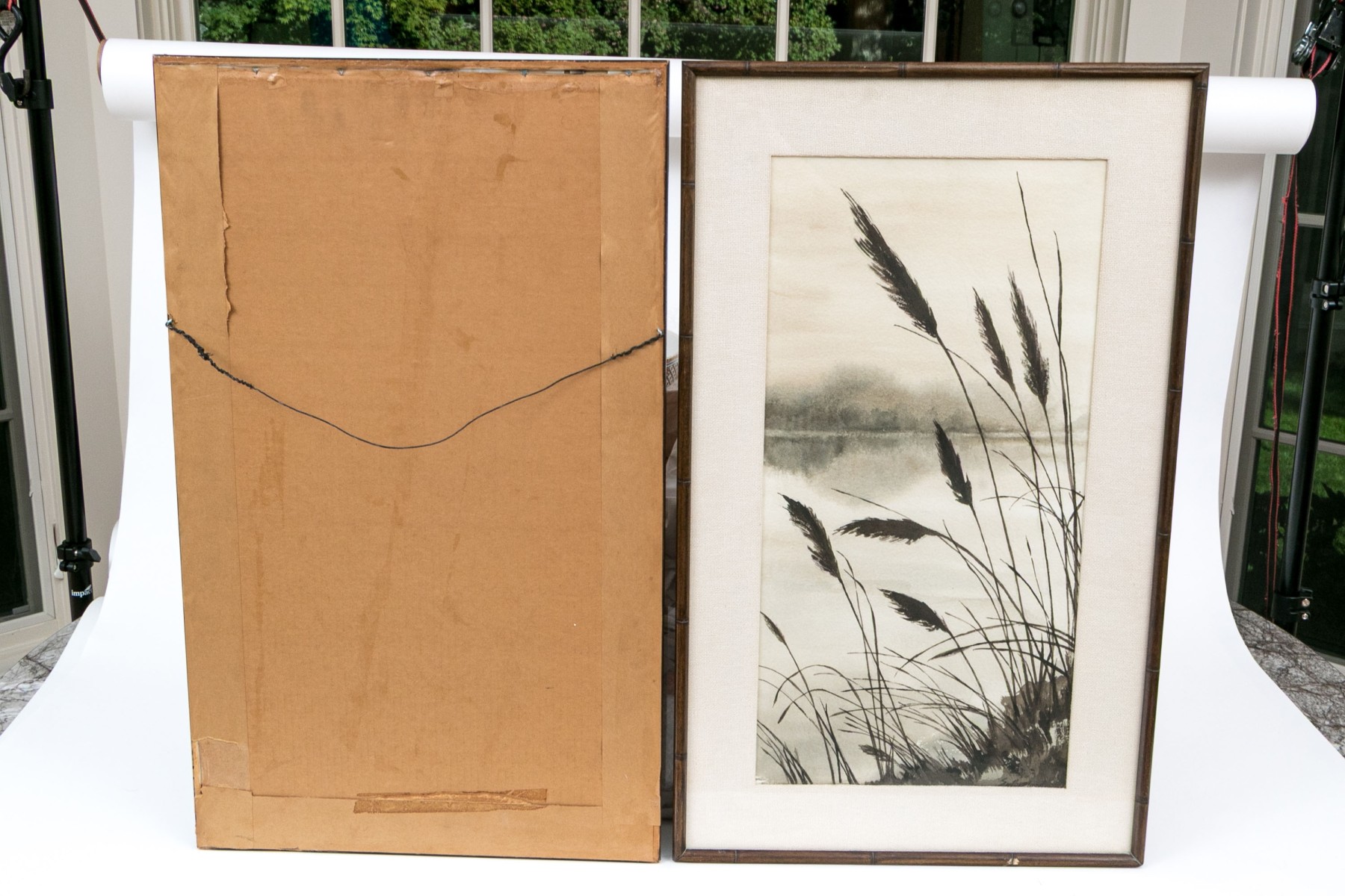 Displayed glazed and matted in dark brown faux bamboo frames.