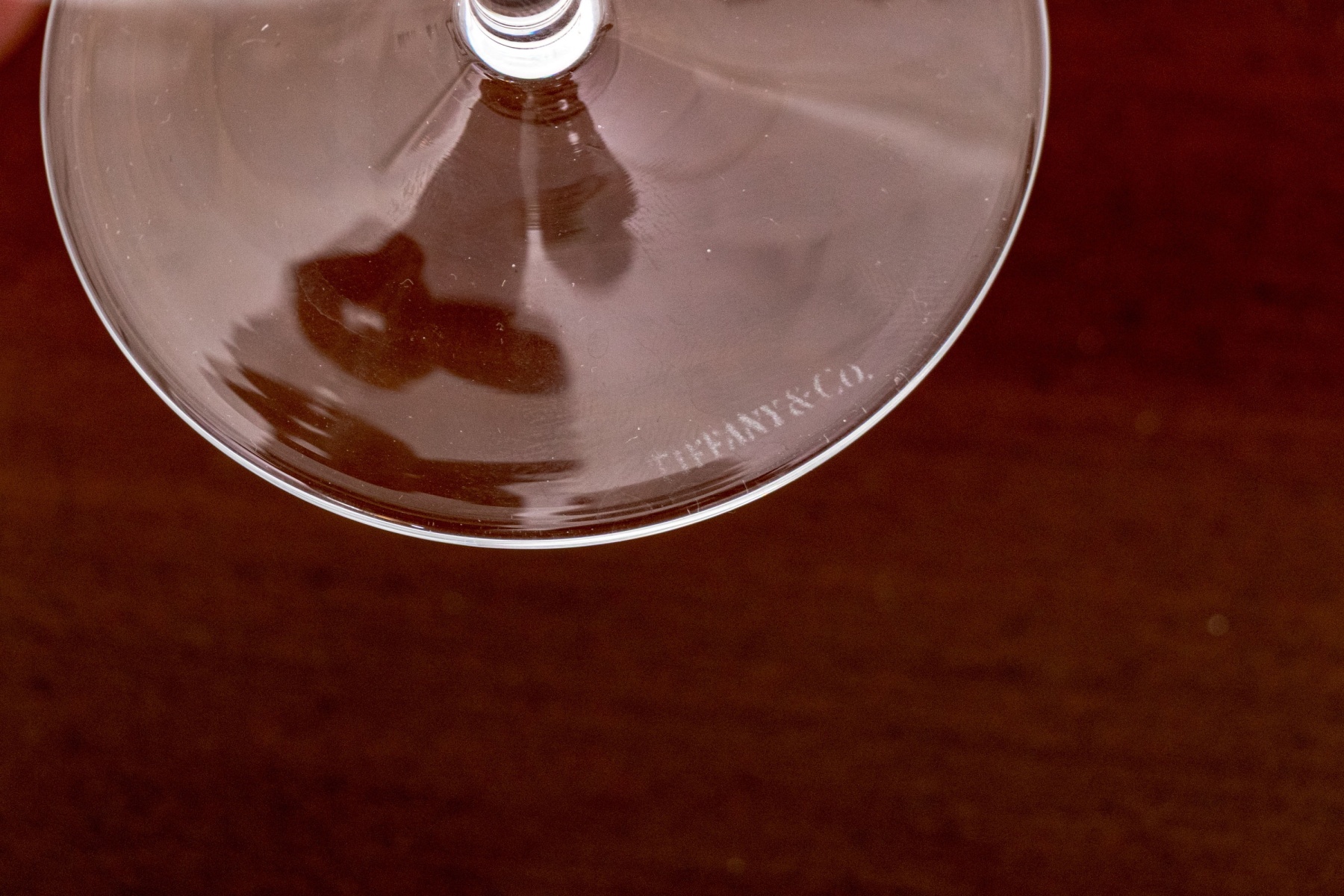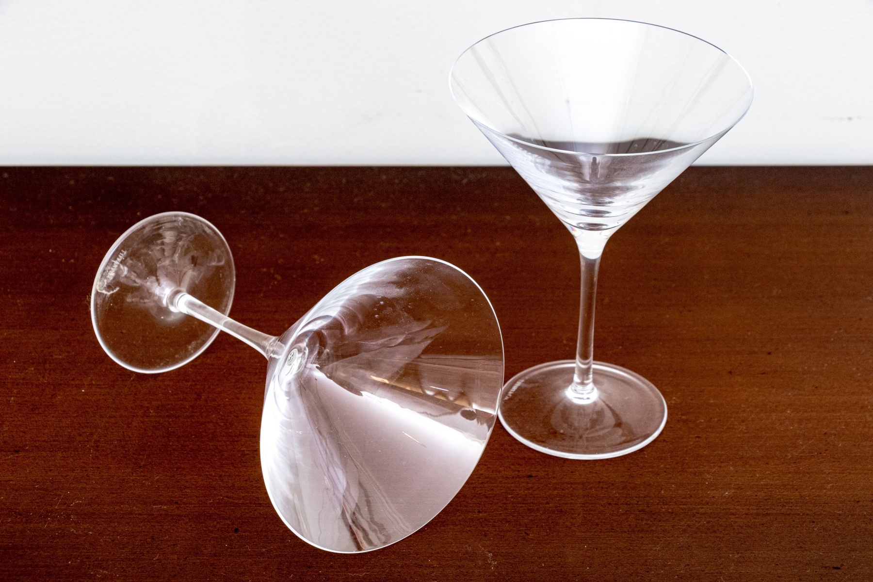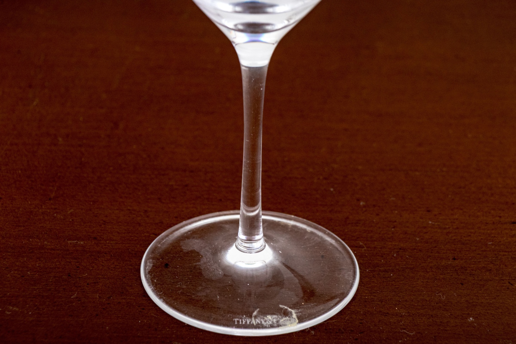 An elegant pair of Tiffany & Co. crystal martini glasses in classic form with thin stems balanced on circular feet. Both marked underfoot.