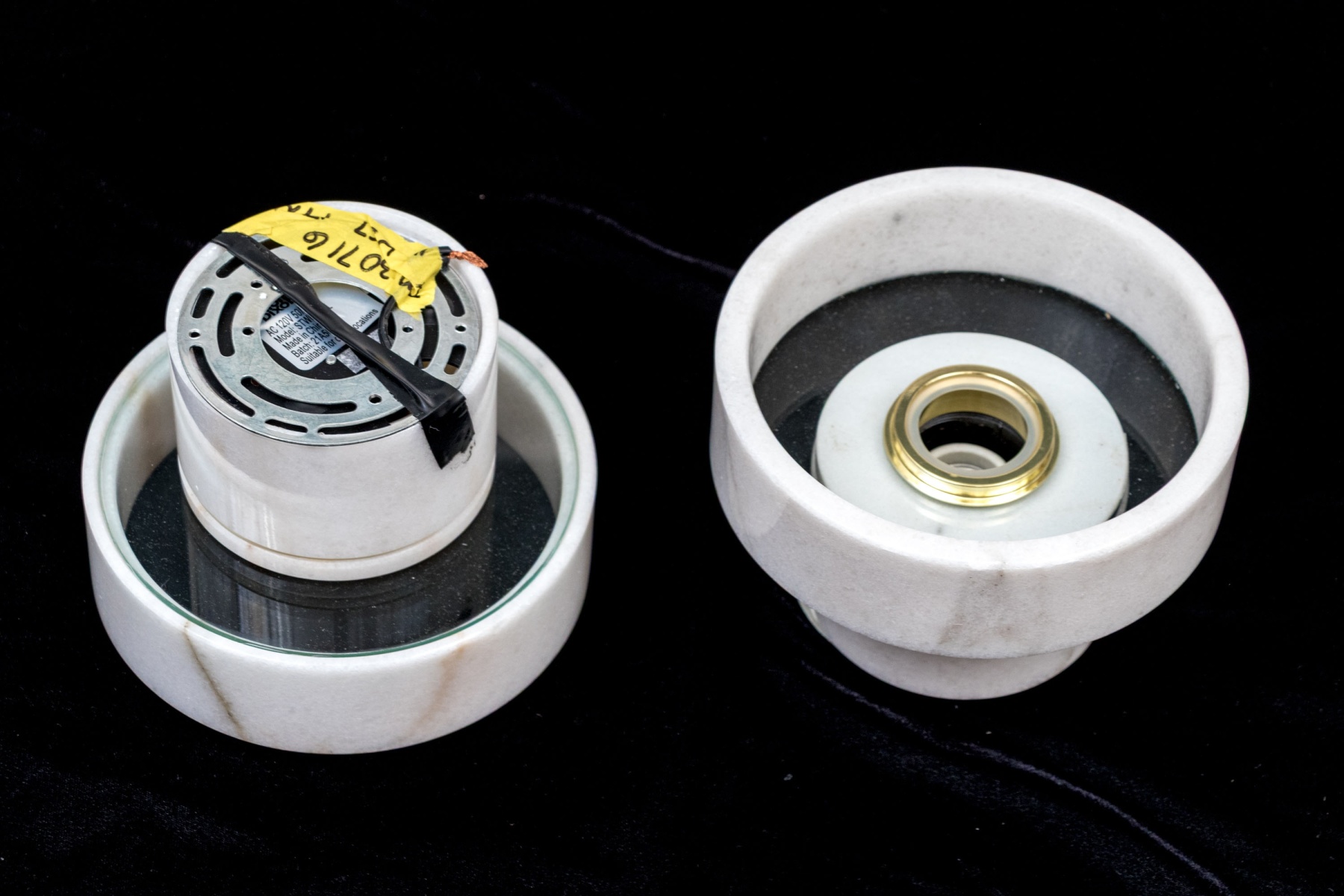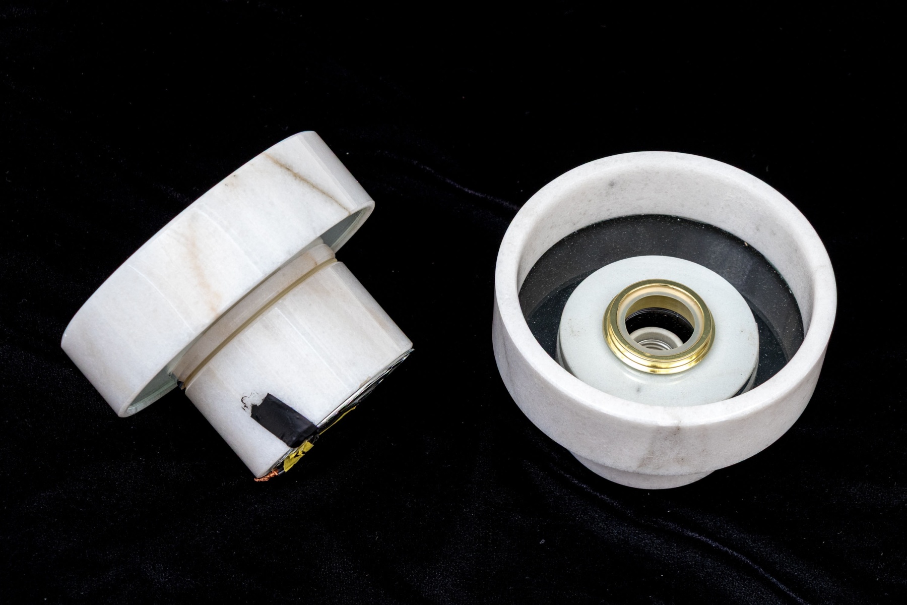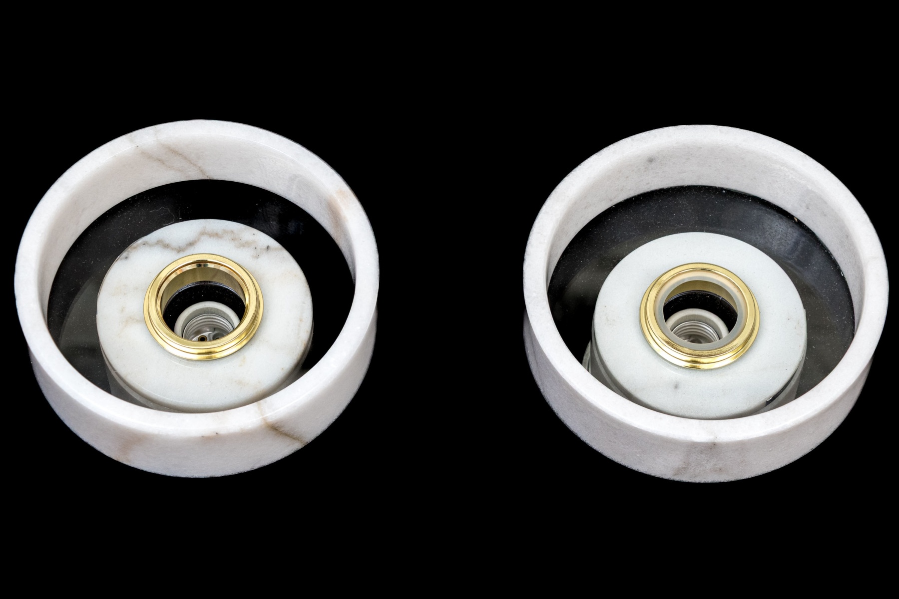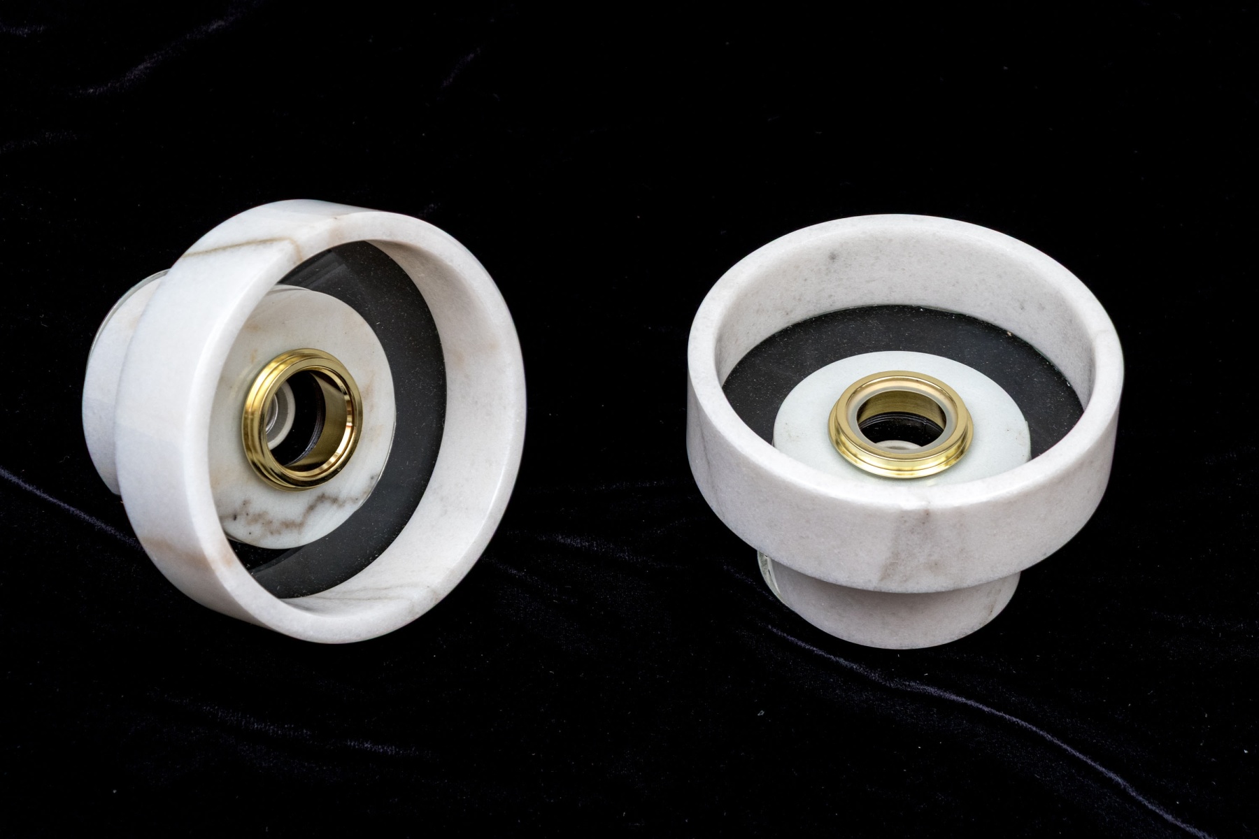 Each is constructed of two circular bands of stone, one with a larger diameter, with glass disc connecting the intermediary space.