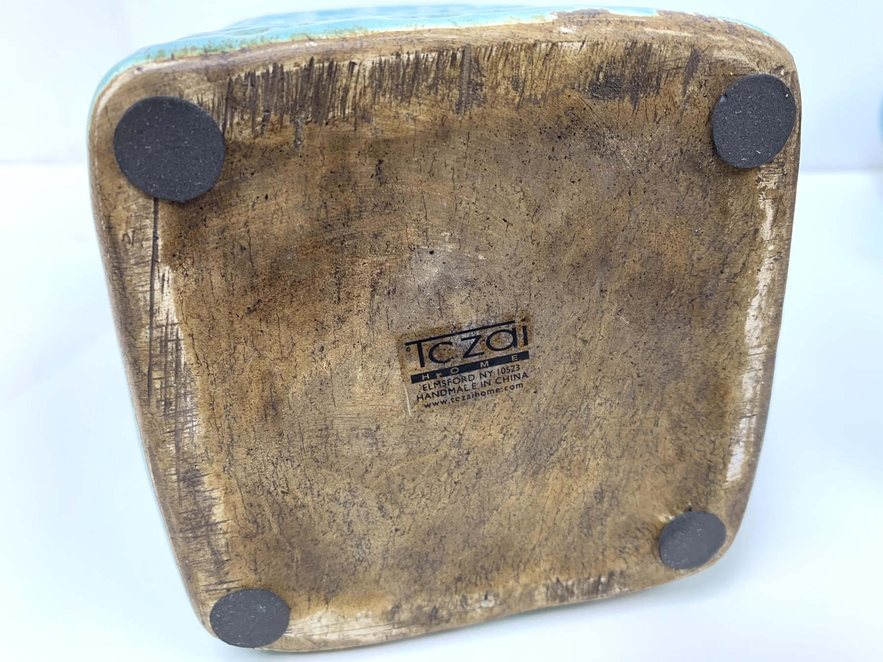 Condition: Please see detail photos. Only slight vagaries to the glaze which are part of the creation with the presentation remaining strong, colorful and decorative.