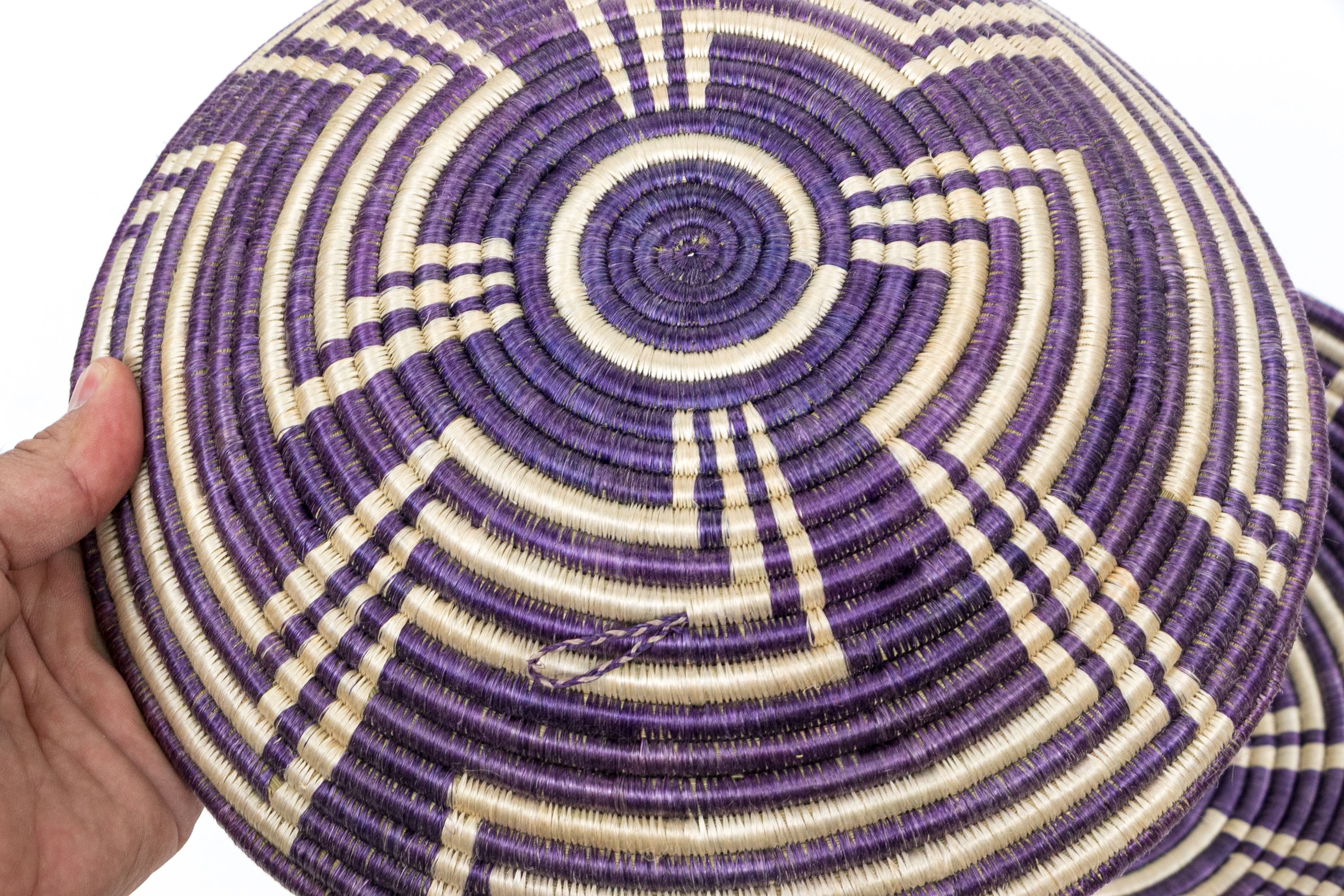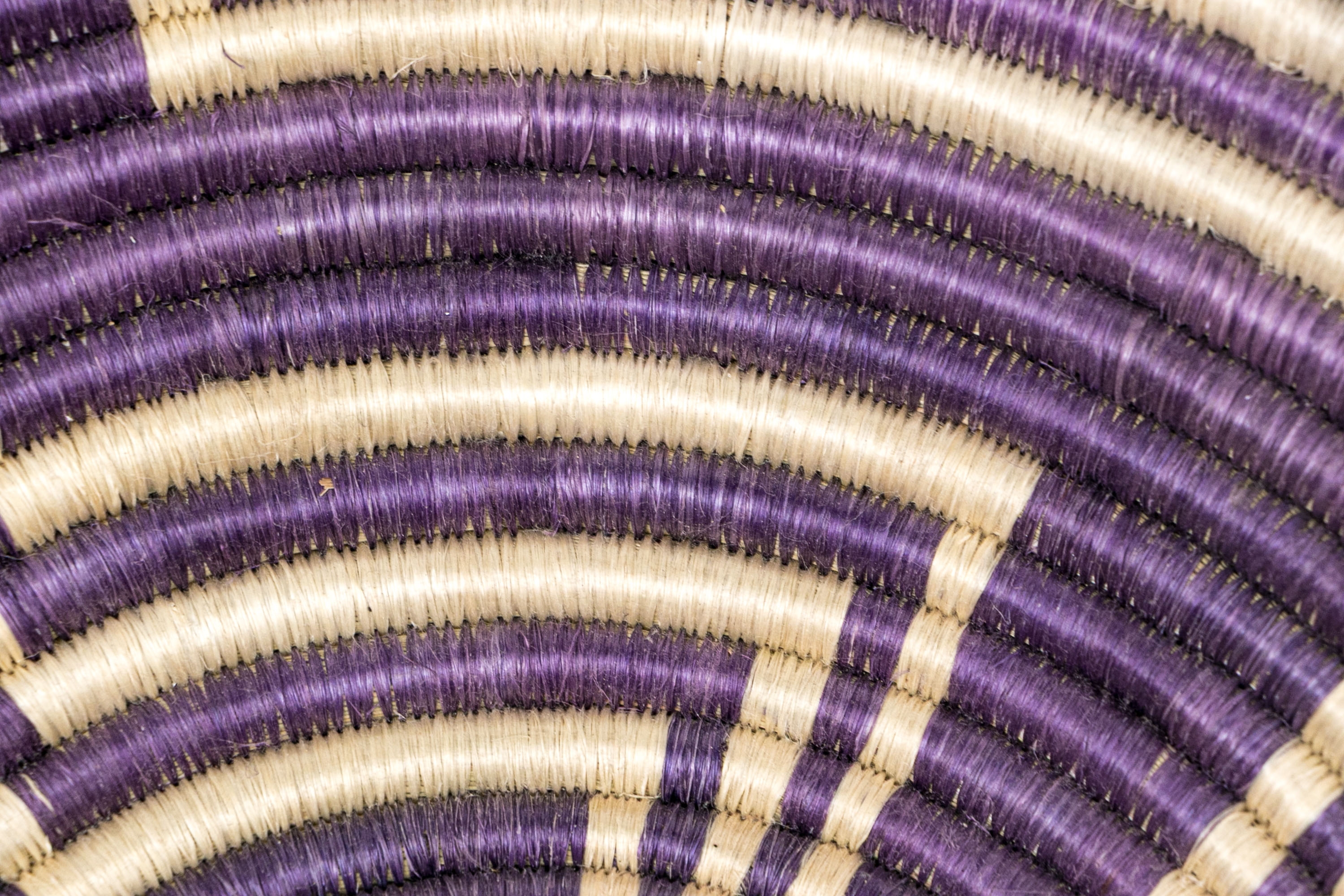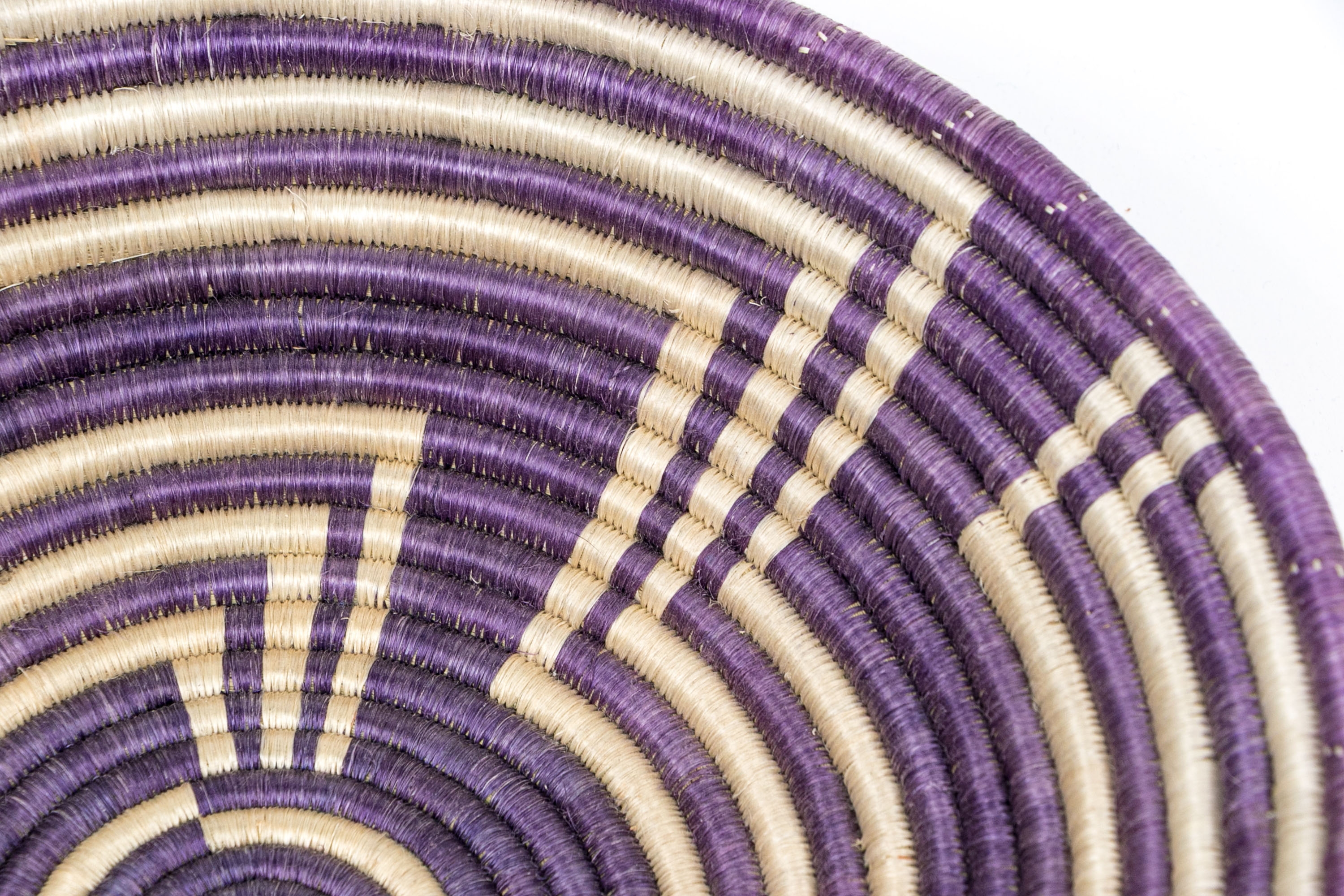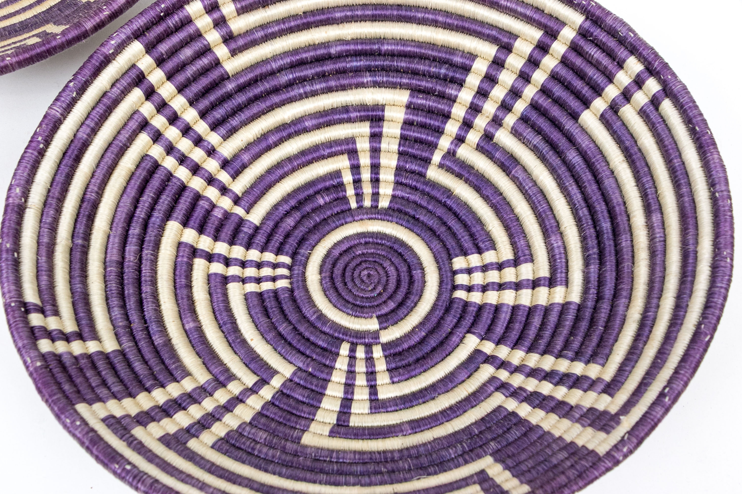 With purple ground, off white decorative abstract designs.