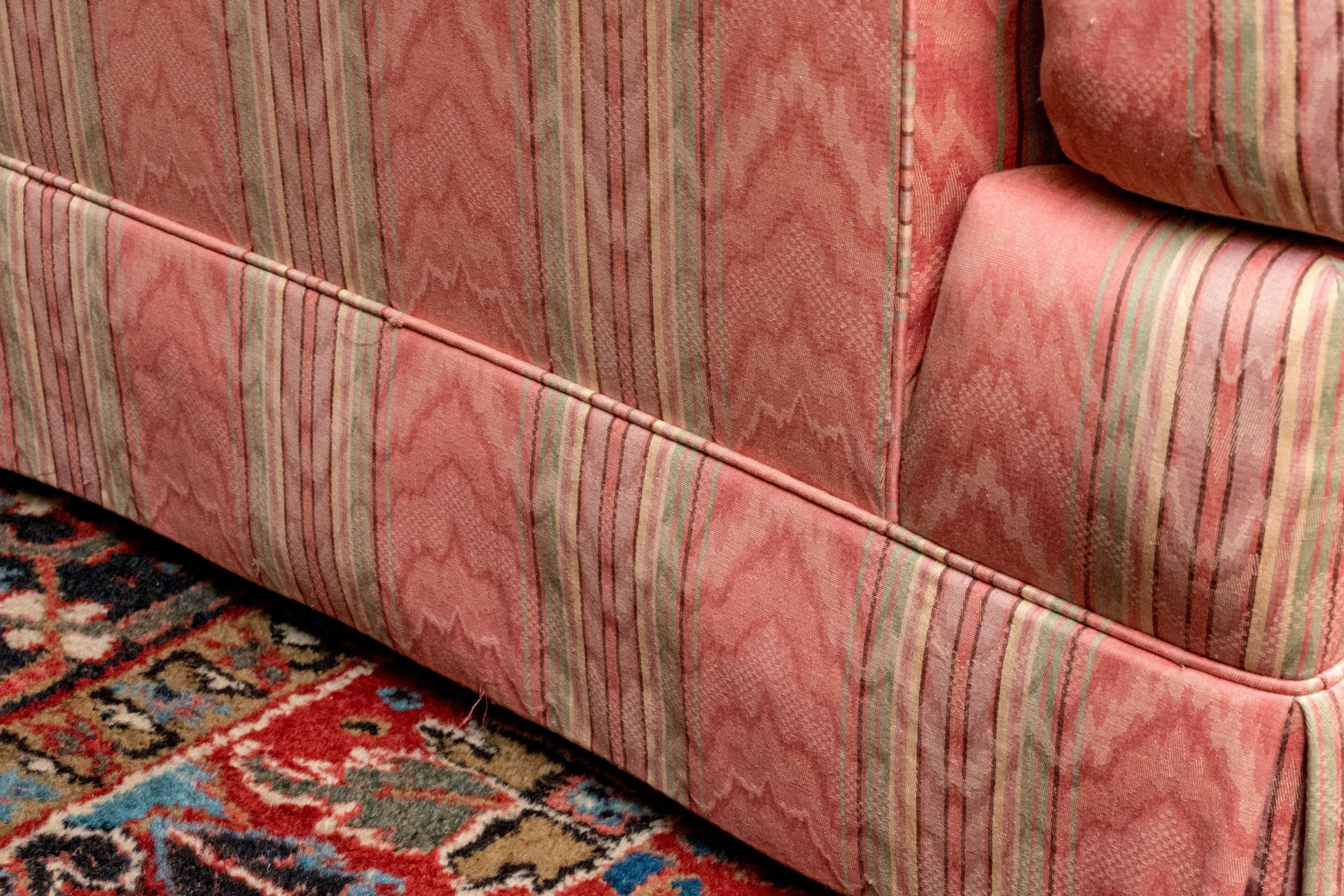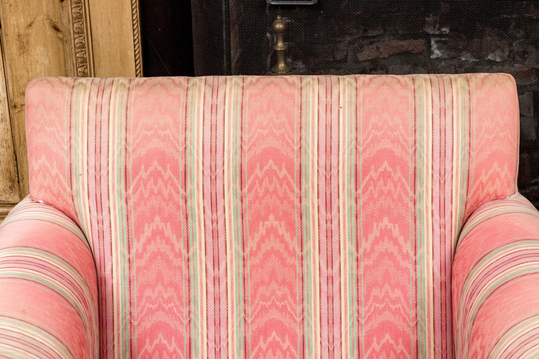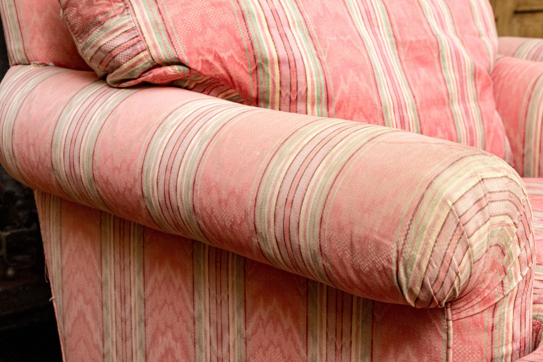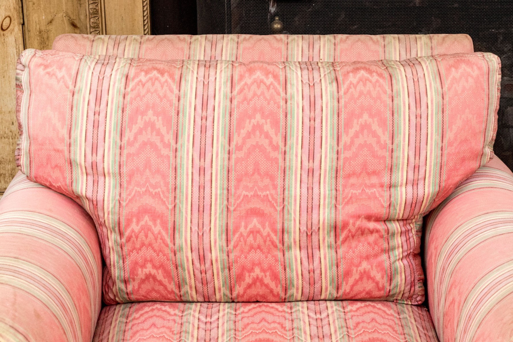 Sunned and stained upholstery with wear commensurate with age and use.
