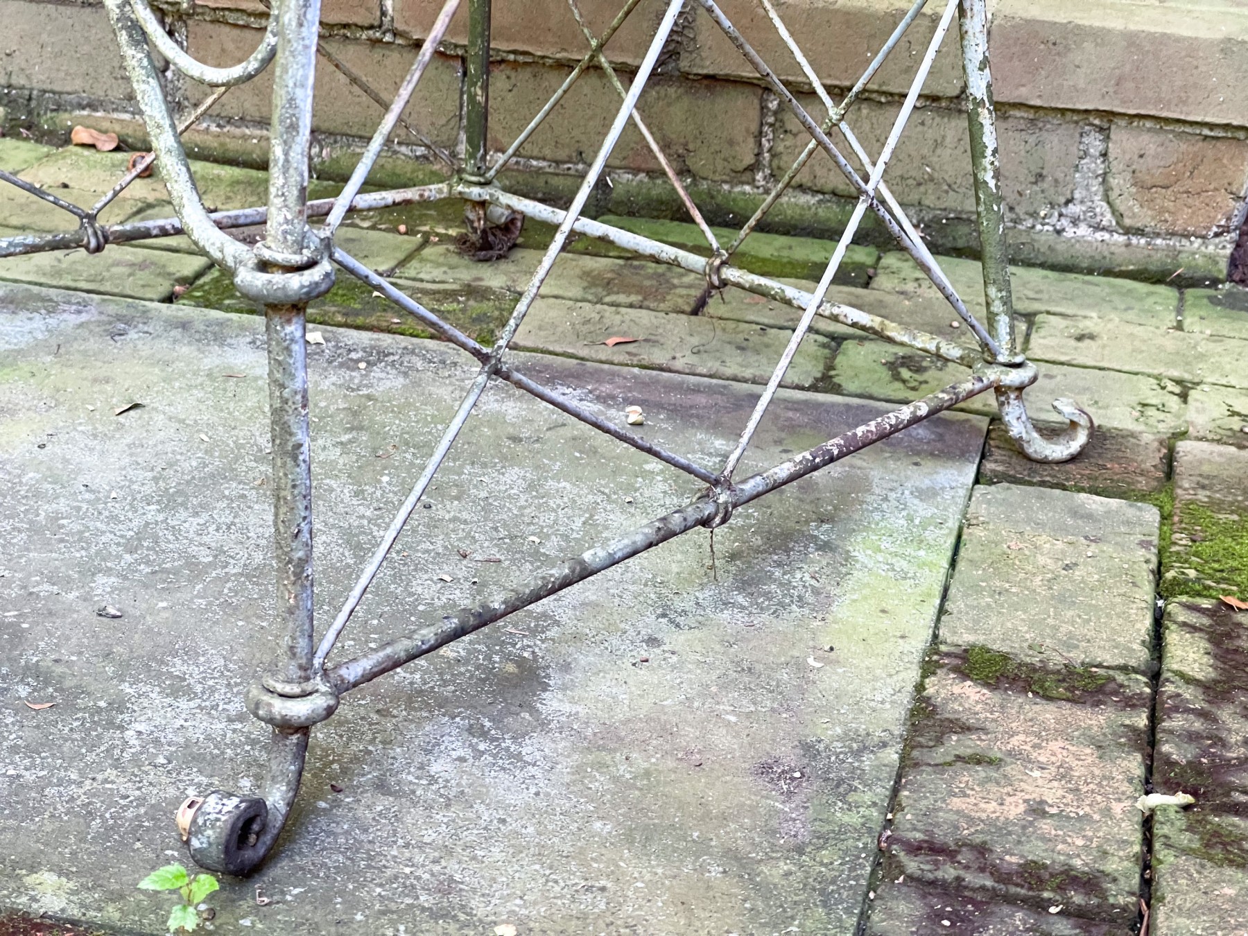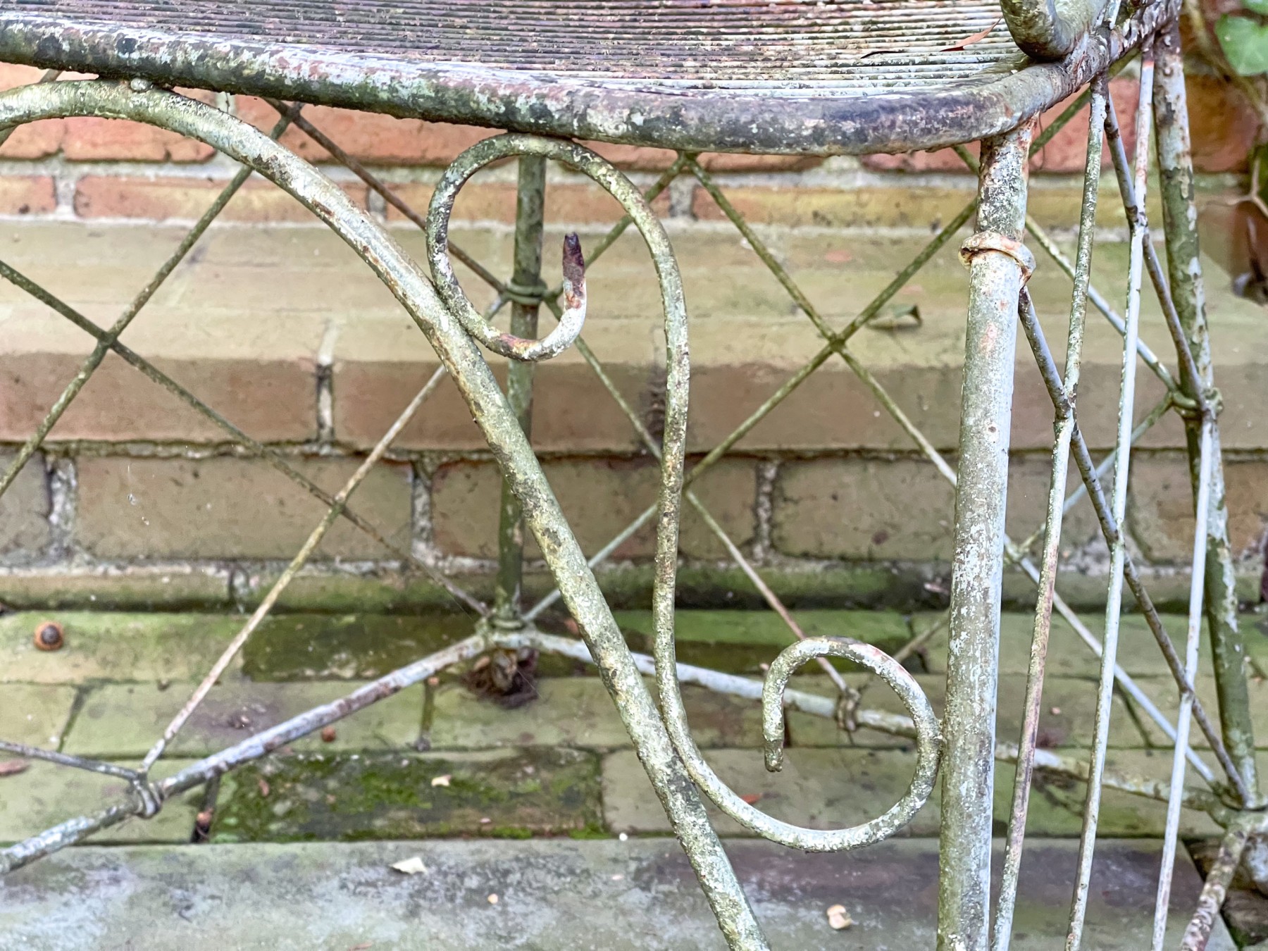 Wear to the paint finish, and oxidation commensurate with age and outdoor use but a cleaning and even fresh coat of paint will surely bring the chairs back to life. Please review the photos as they are part of the condition report.