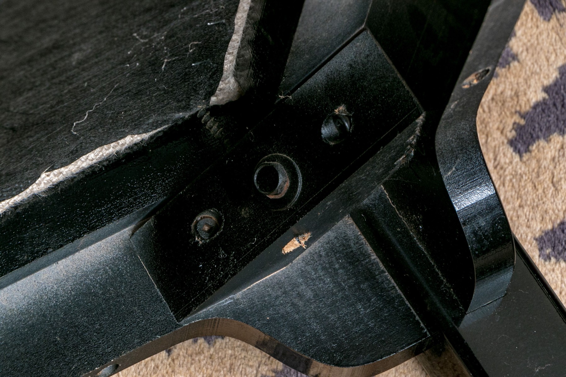 Condition; a few chips to a crest rail, arms, a leg, some stains on the seats. Please review the photos as they are part of the condition report,