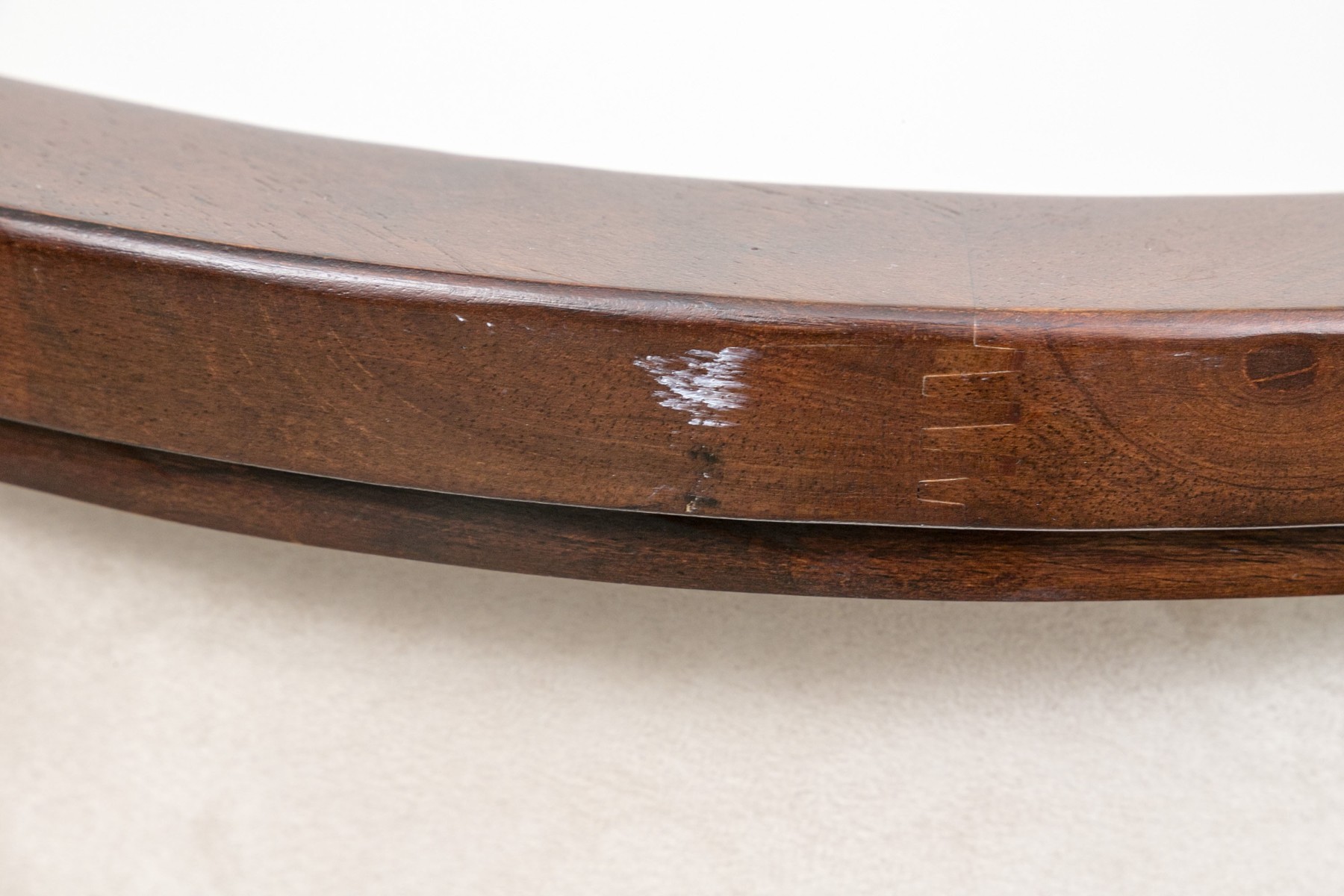Condition: marks on one crest rail, scrapes to a seat frame, some scrapes to the legs but minor, some smudges to the seats. Please review the photos as they are part of the condition report.
