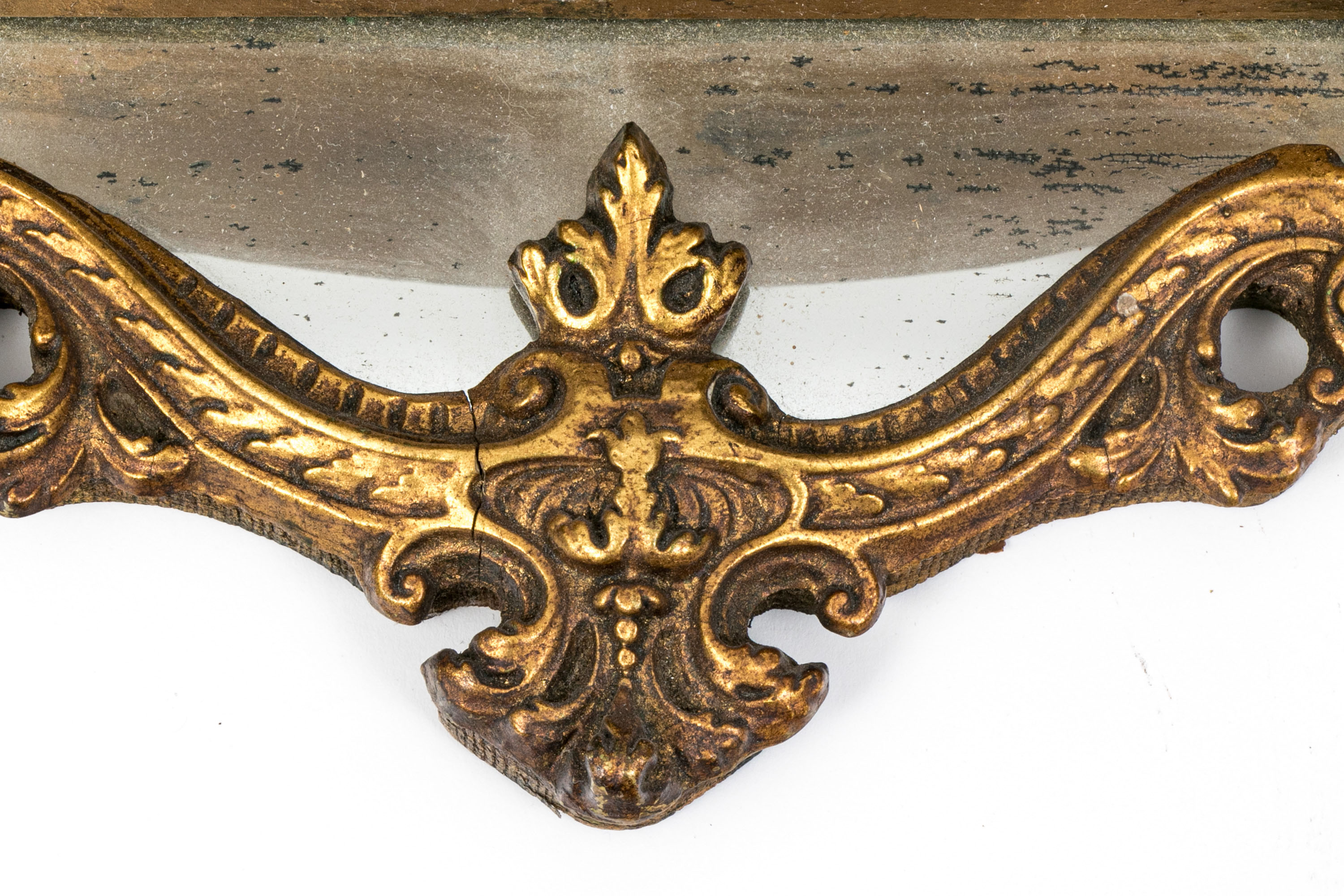 Carved and gilt finished plaster and wood with mirror backed wall shelves.