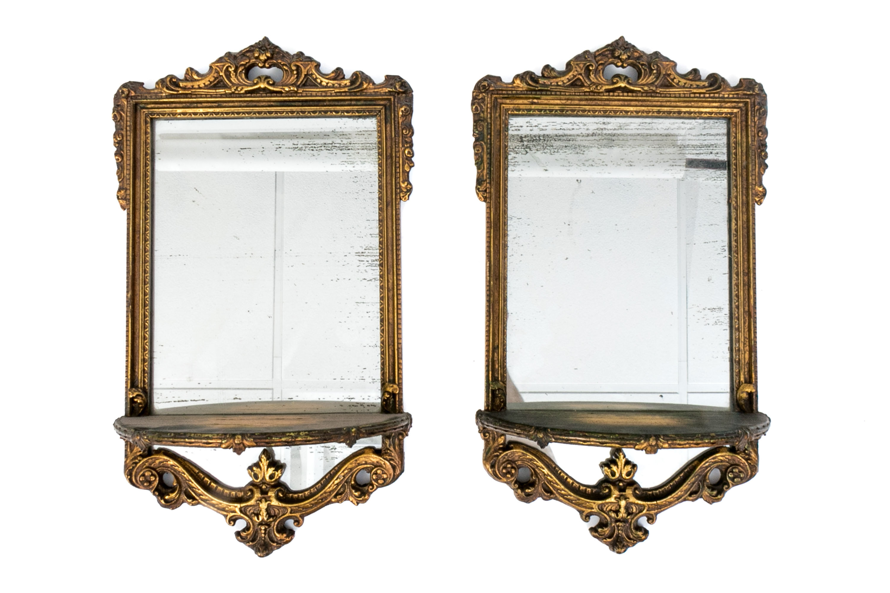 Pair Of Vintage Gilt Finished, Mirrored Wall Shelves, Ca. 1920 #311187. Black Rock Galleries provides high end estate liquidation services through online estate auctions and a 50,000 sq ft designer showroom. estate liquidator, estate sale, online auction, antiques, fine art, liquidation, clean outs, auction, consignment, interior design, fine jewelry, collectibles, appraisals, estate appraisals, estate services, decor, furniture, furniture consignment, antique center, consignment shop. We offer appraisal services and specialize in fine art, jewelry, antiques and decorative arts. Sell with us. Black Rock Galleries is the tri-state's largest estate liquidator serving New England and the greater New York City area. We are the trusted source for expert appraisals, auction services, estate sales, and consignments. Black Rock Galleries is the east coast's largest and most trusted estate liquidator, with locations in Connecticut, greater Boston, MA and Raleigh, NC, Fairfield, Southport, Apex, TX. We are the best source for expert appraisals, auction services, estate sales and consignments. We have served thousands of families and estates with compassion, professionalism and expertise. BRG works with attorneys, executors, realtors and families to bring the greatest return on personal and estate property in the current market. Our unique combination of services make us the easy choice to get the job done in a timely and stress-free manner. We are with you from the initial consultation to the final clean out. Our house-built online auction software platform offers clients a dynamic approach to liquidating their personal property. This venue is most successful in bringing the best return with the least amount of disruption for our clients. See our services page for a complete description of this offering. Pair Of Vintage Gilt Finished, Mirrored Wall Shelves, Ca. 1920 #311187