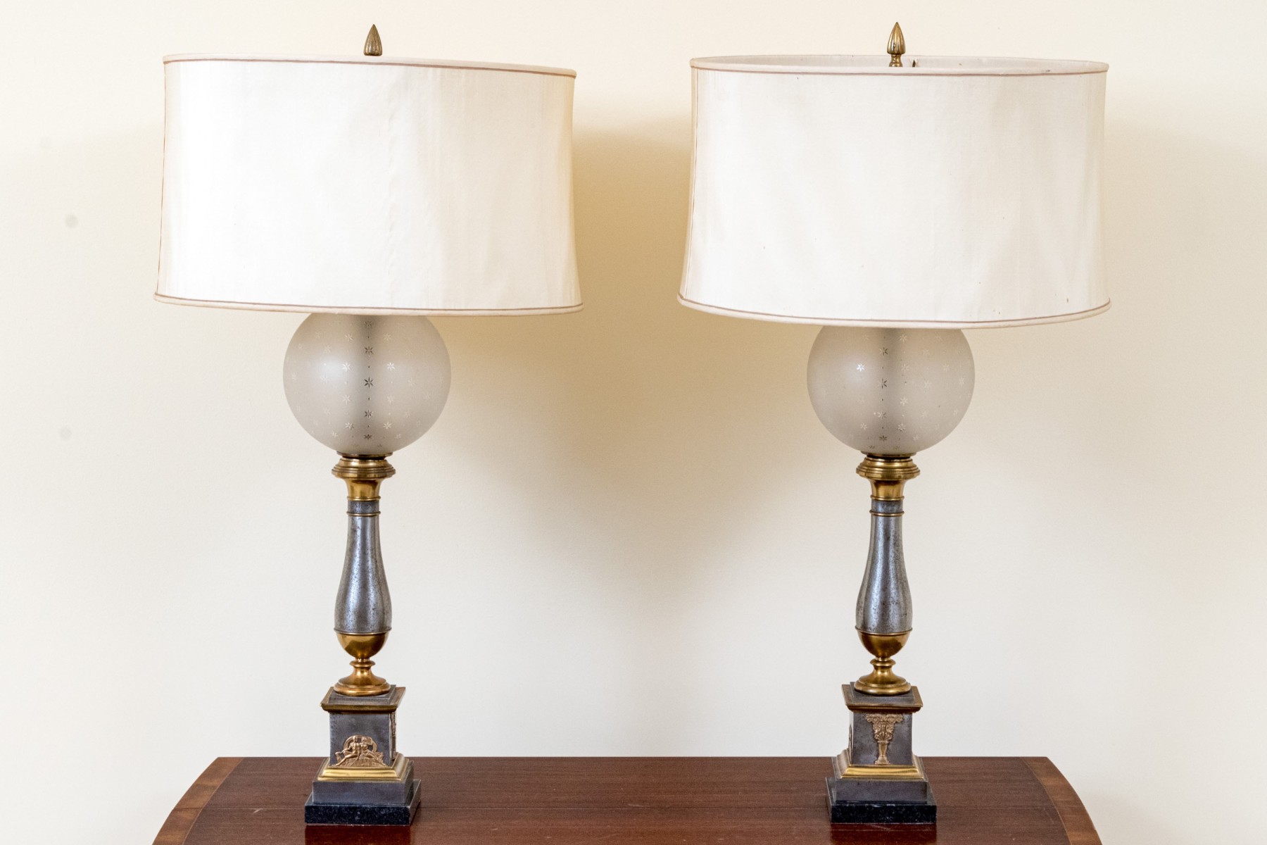 Pair Of Vintage Glass And Metal Globe Twin Light Table Lamps #329663. Black Rock Galleries provides high end estate liquidation services through online estate auctions and a 50,000 sq ft designer showroom. estate liquidator, estate sale, online auction, antiques, fine art, liquidation, clean outs, auction, consignment, interior design, fine jewelry, collectibles, appraisals, estate appraisals, estate services, decor, furniture, furniture consignment, antique center, consignment shop. We offer appraisal services and specialize in fine art, jewelry, antiques and decorative arts. Sell with us. Black Rock Galleries is the tri-state's largest estate liquidator serving New England and the greater New York City area. We are the trusted source for expert appraisals, auction services, estate sales, and consignments. Black Rock Galleries is the east coast's largest and most trusted estate liquidator, with locations in Connecticut, greater Boston, MA and Raleigh, NC, Fairfield, Southport, Apex, TX. We are the best source for expert appraisals, auction services, estate sales and consignments. We have served thousands of families and estates with compassion, professionalism and expertise. BRG works with attorneys, executors, realtors and families to bring the greatest return on personal and estate property in the current market. Our unique combination of services make us the easy choice to get the job done in a timely and stress-free manner. We are with you from the initial consultation to the final clean out. Our house-built online auction software platform offers clients a dynamic approach to liquidating their personal property. This venue is most successful in bringing the best return with the least amount of disruption for our clients. See our services page for a complete description of this offering. Pair Of Vintage Glass And Metal Globe Twin Light Table Lamps #329663