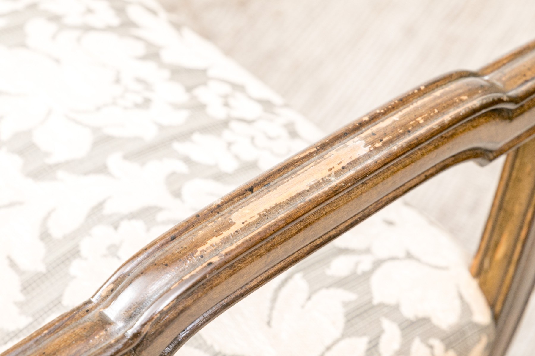 Condition: spot on one seat, worn tops of the arms, a few scrapes to the legs. Please review the photos as they are part of the condition report.