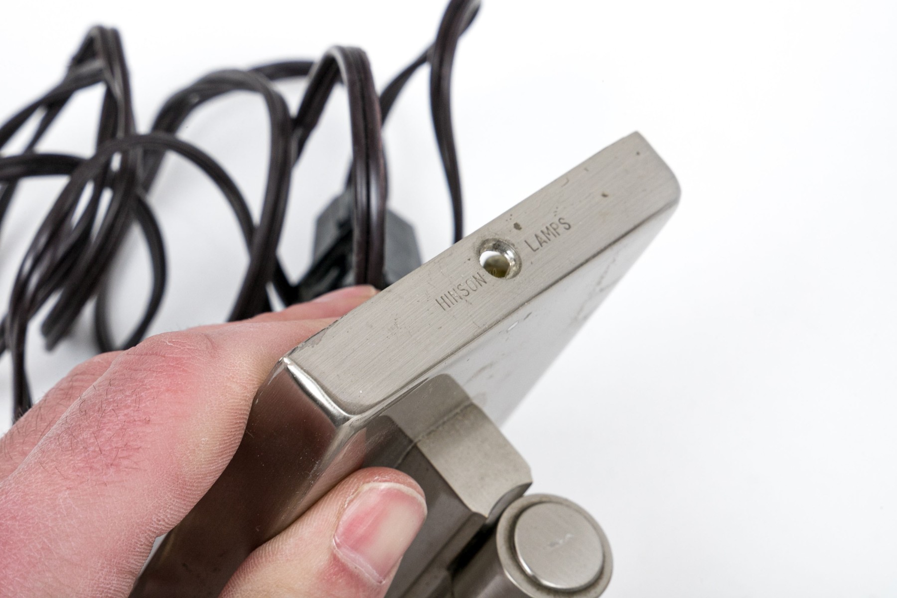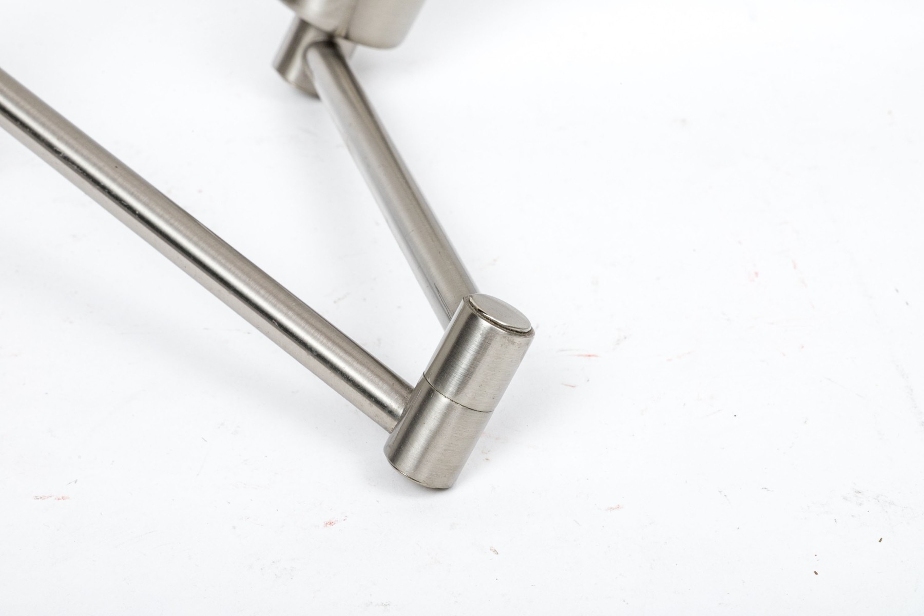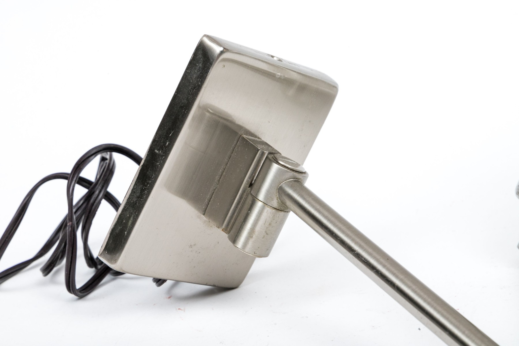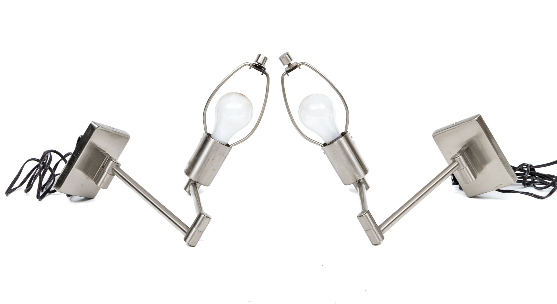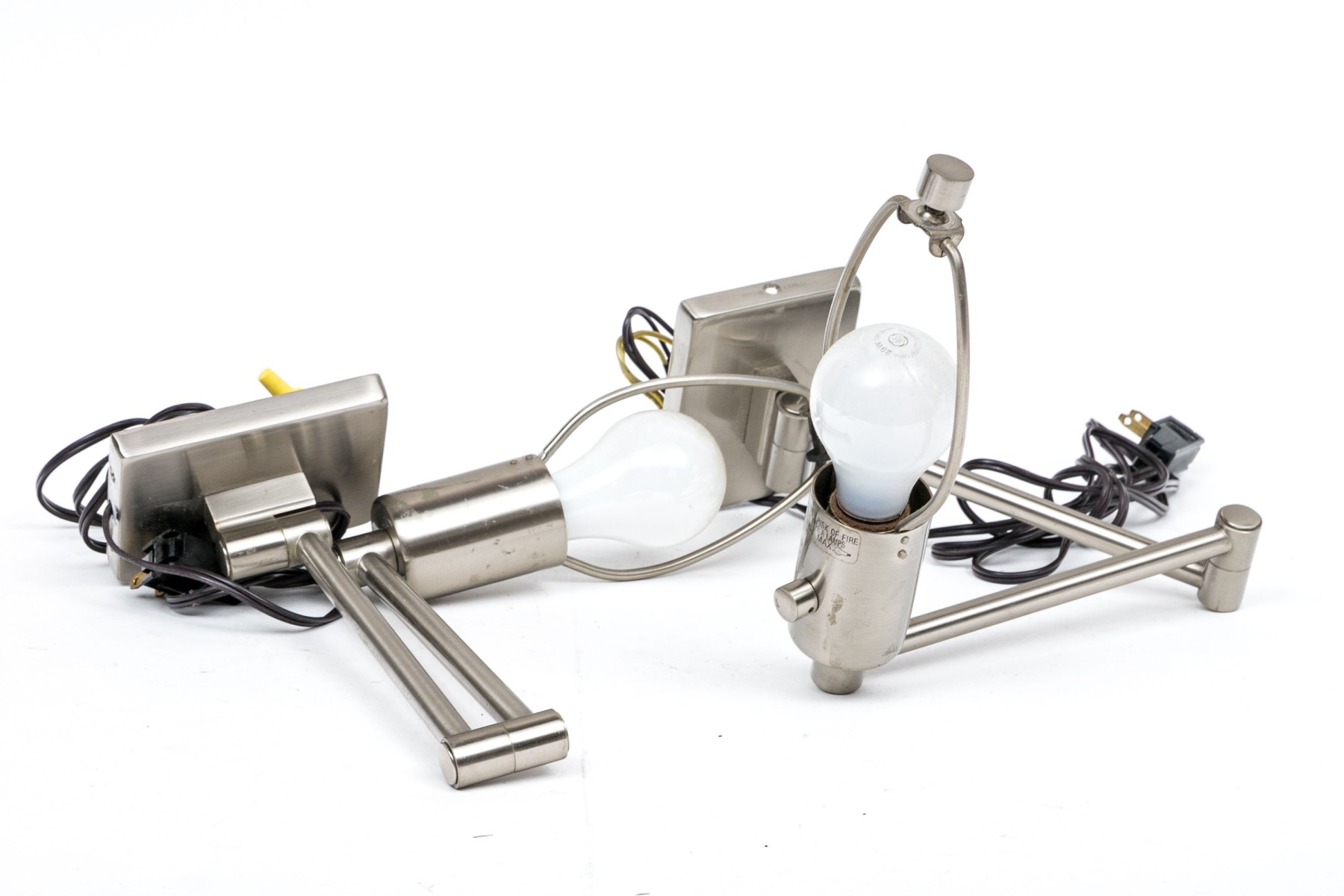 Nickel finish with a swing arm and rectangular back plate.