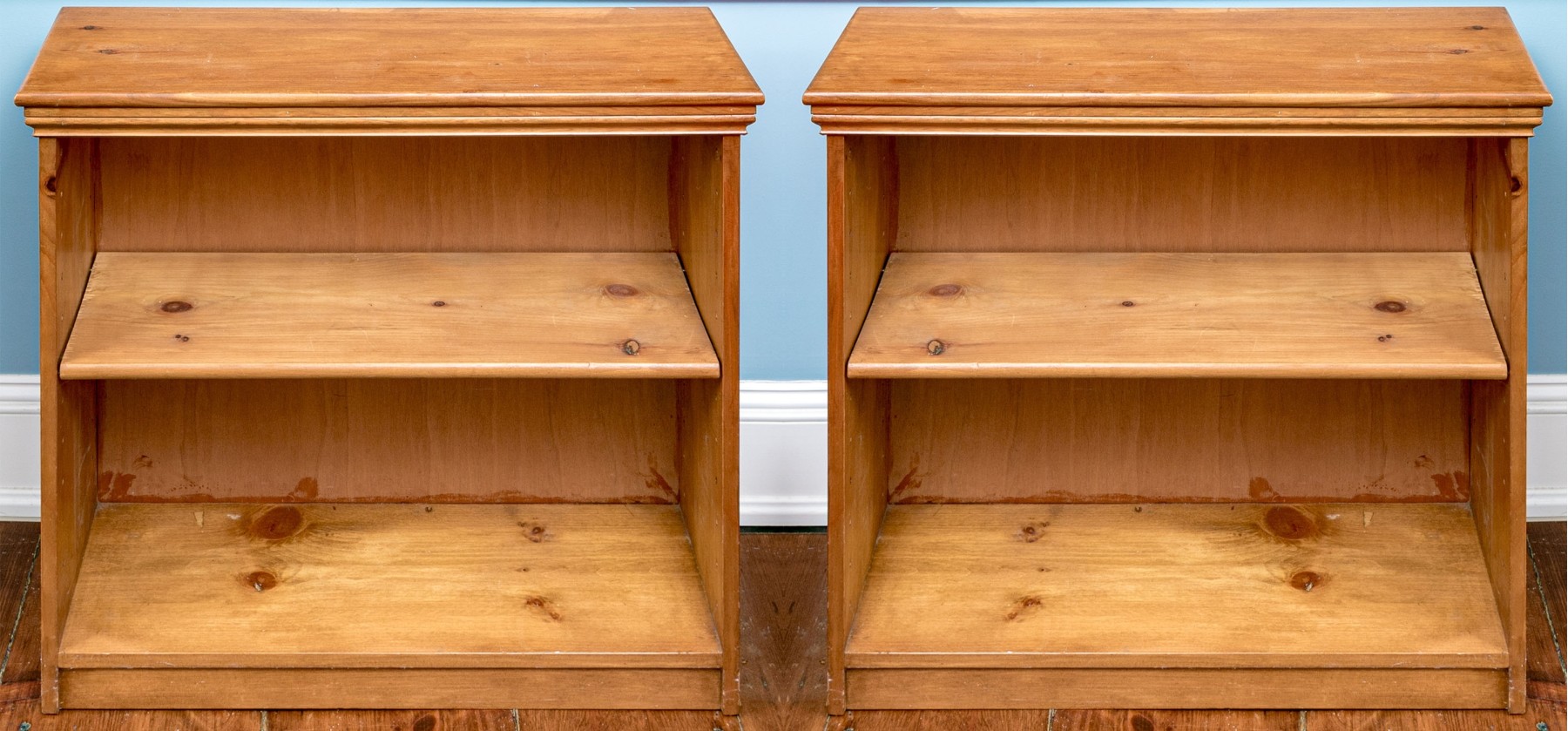 Each is naturally finished with an adjustable shelf.