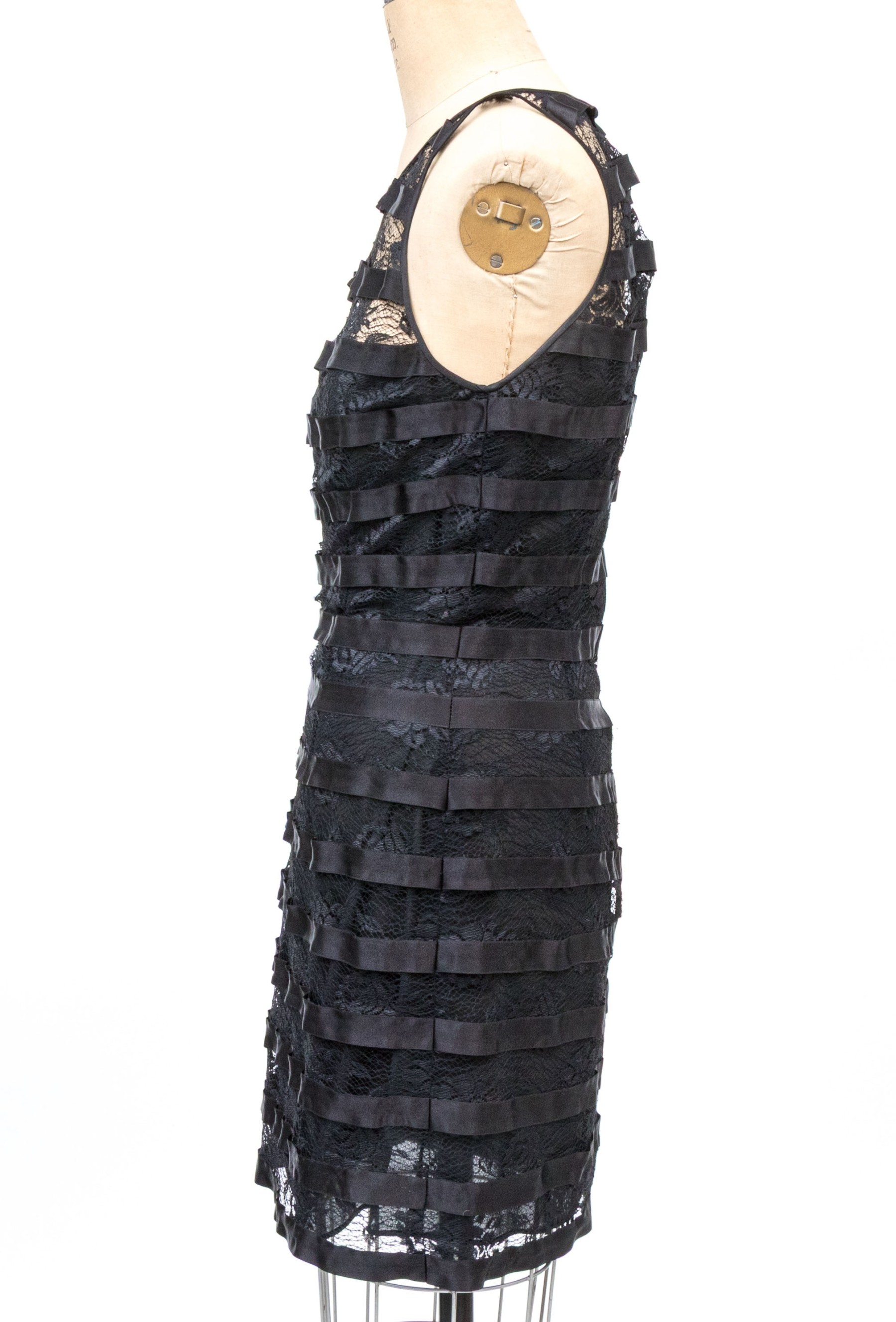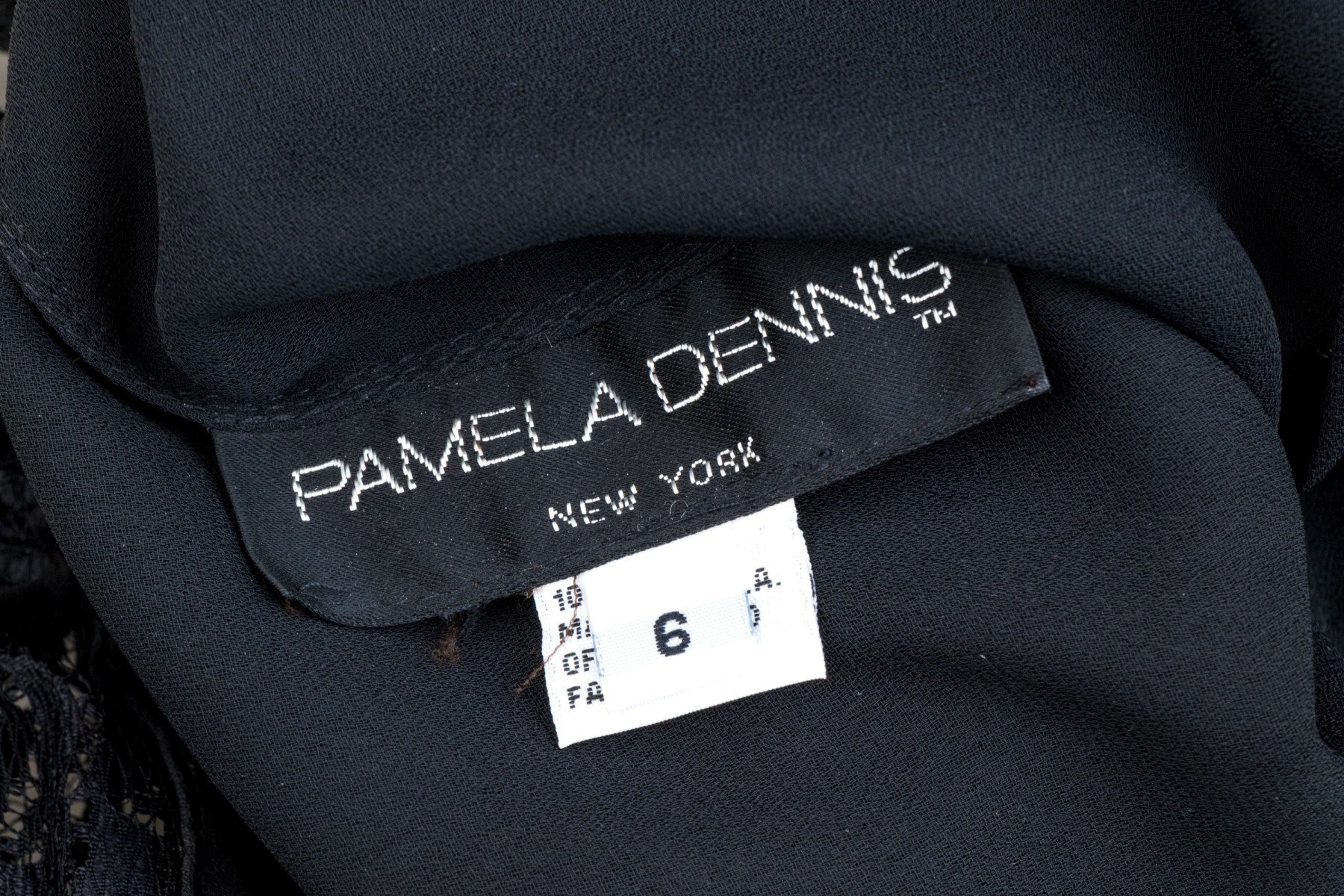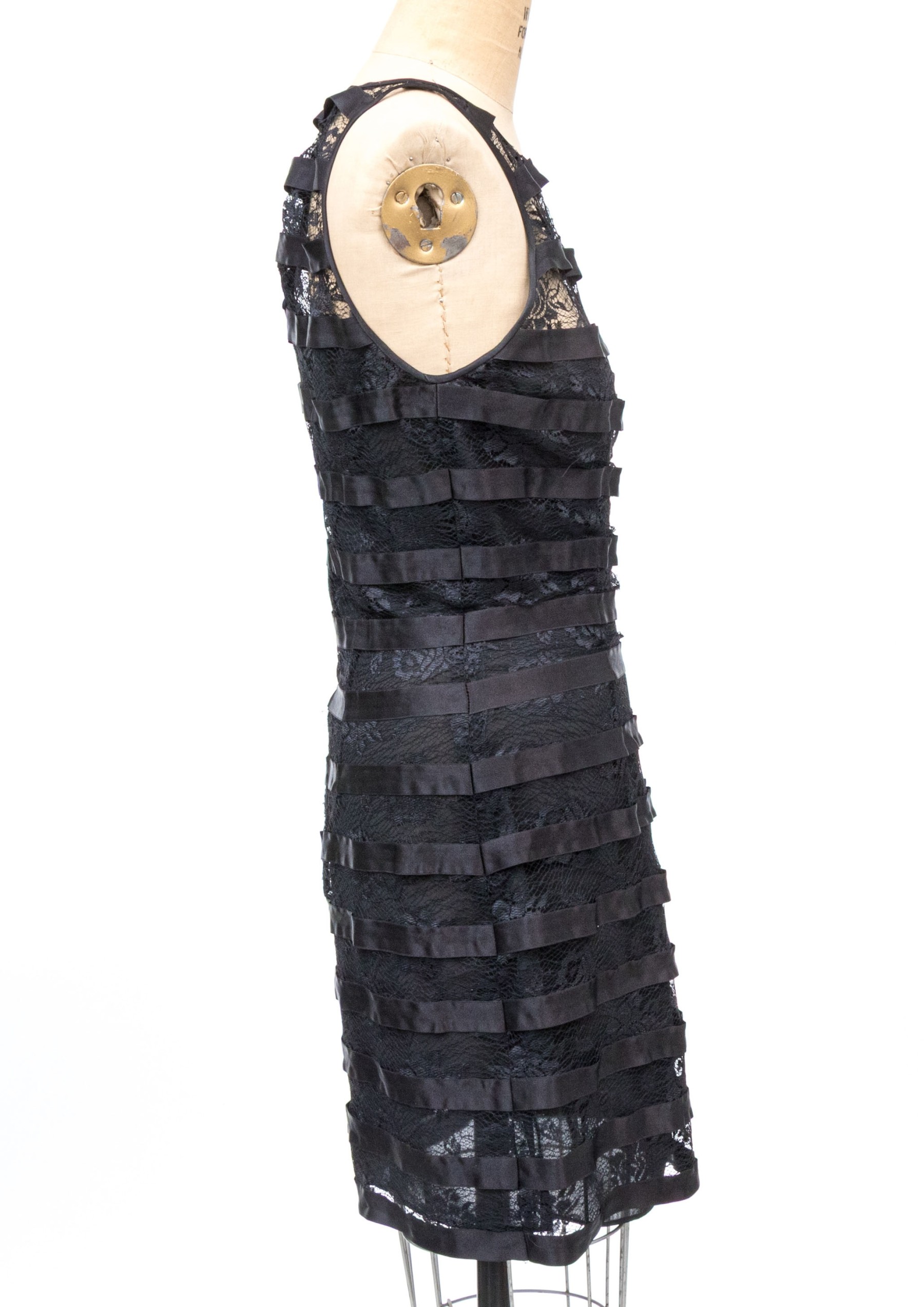 Pamela Dennis black silk lace motif sleeveless sheath dress, slze 6
