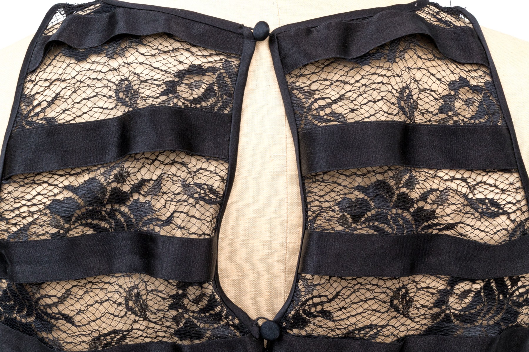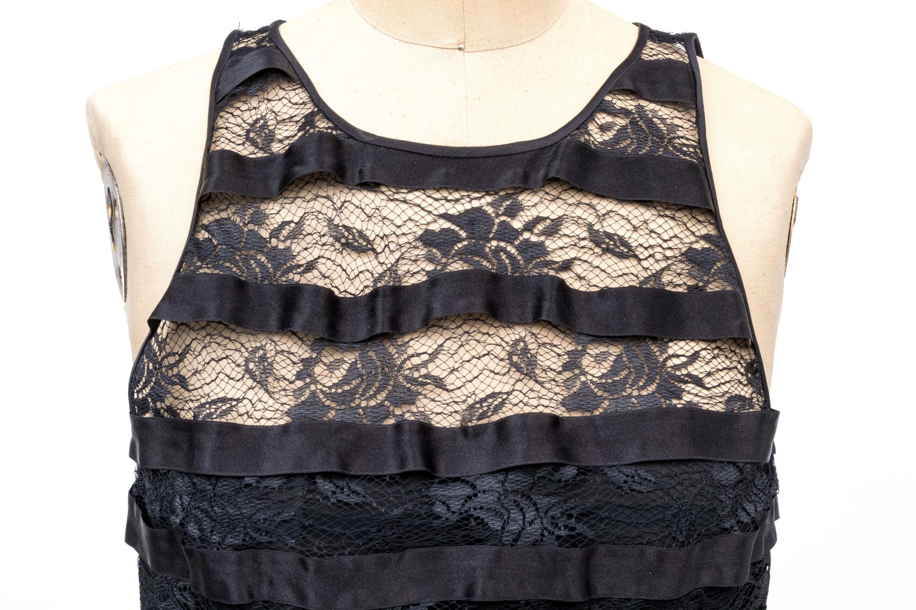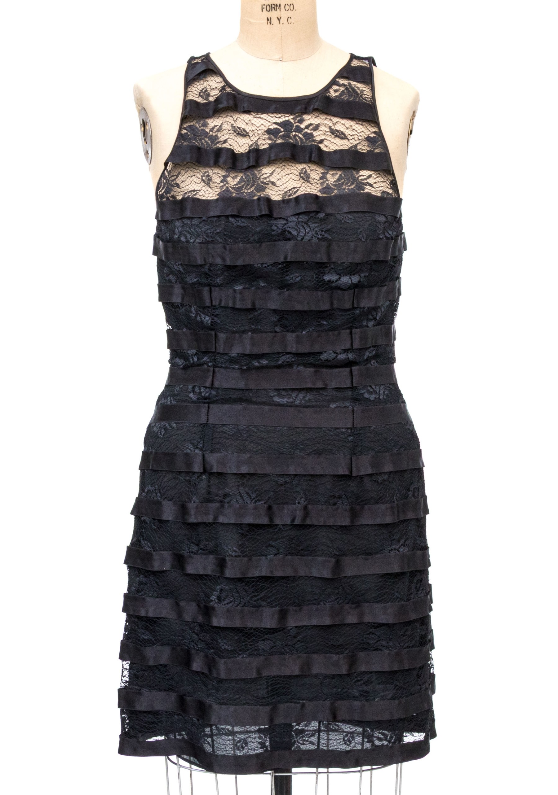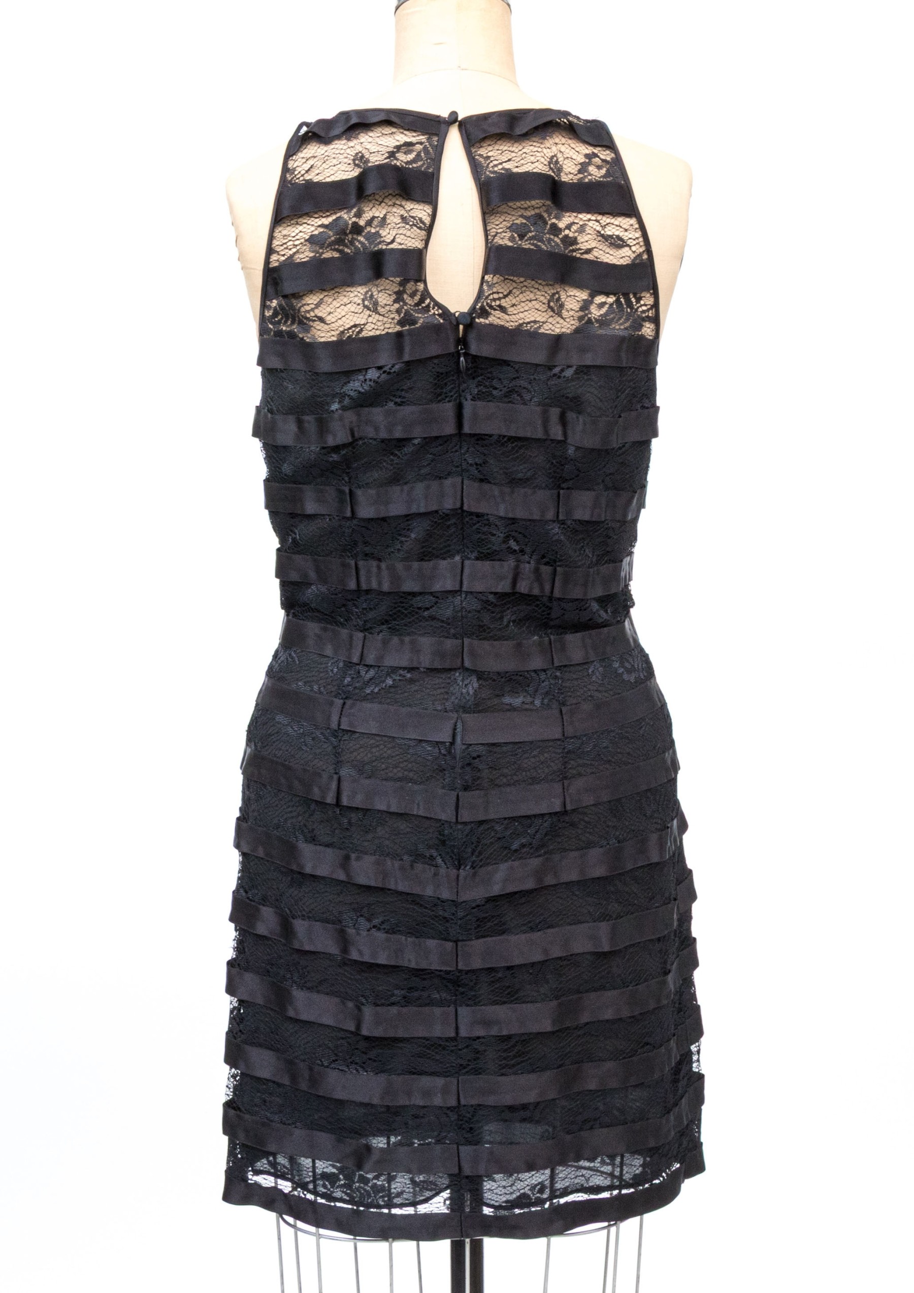 Pamela Dennis black silk lace motif sleeveless sheath dress, slze 6