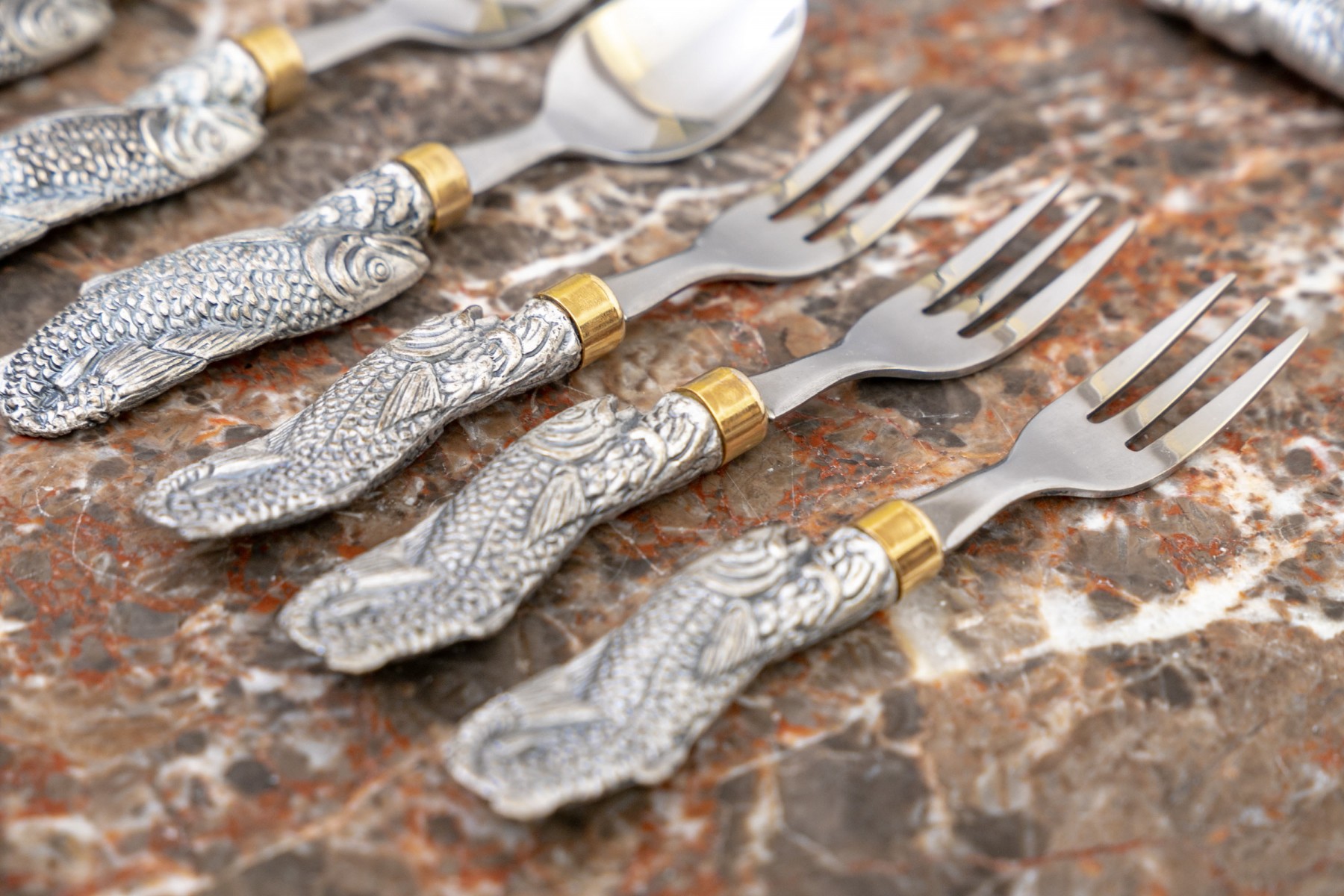 - 3 cocktail forks with fish form handles - 4 3/4"L