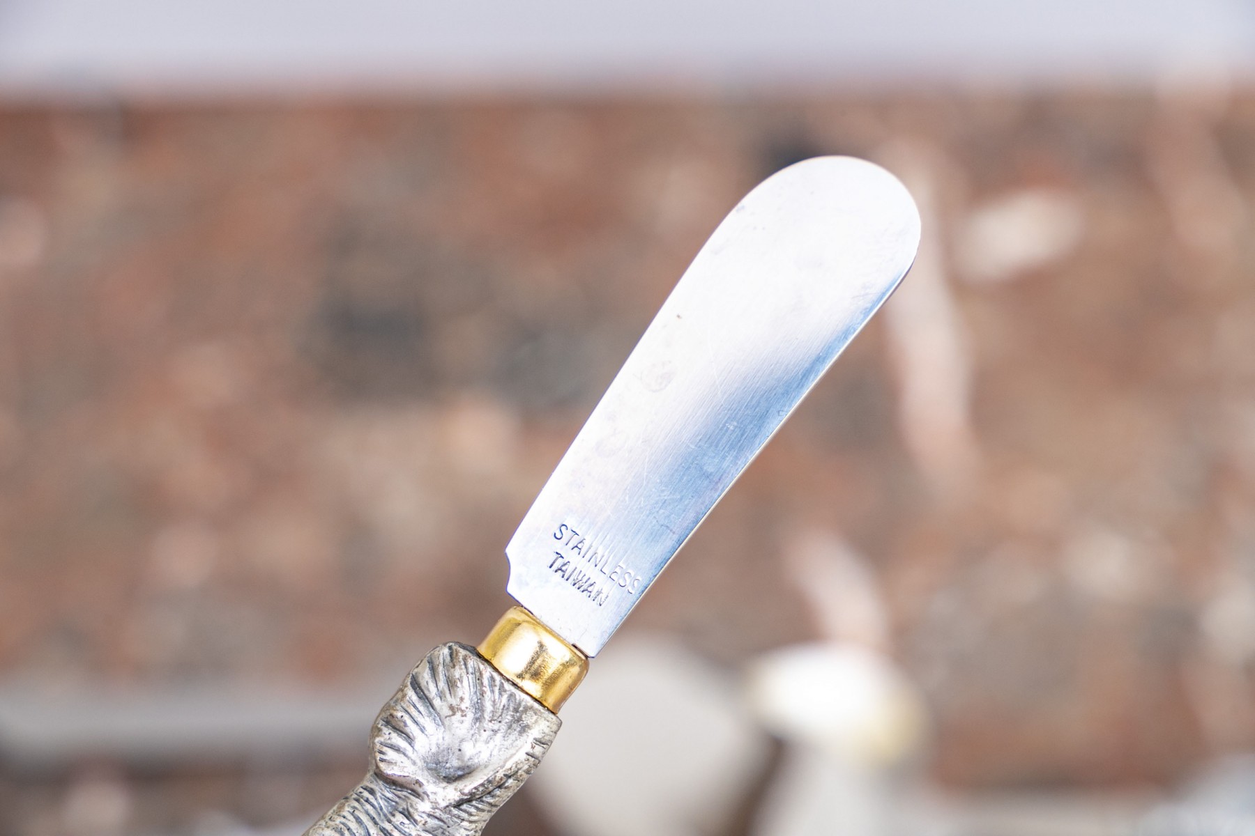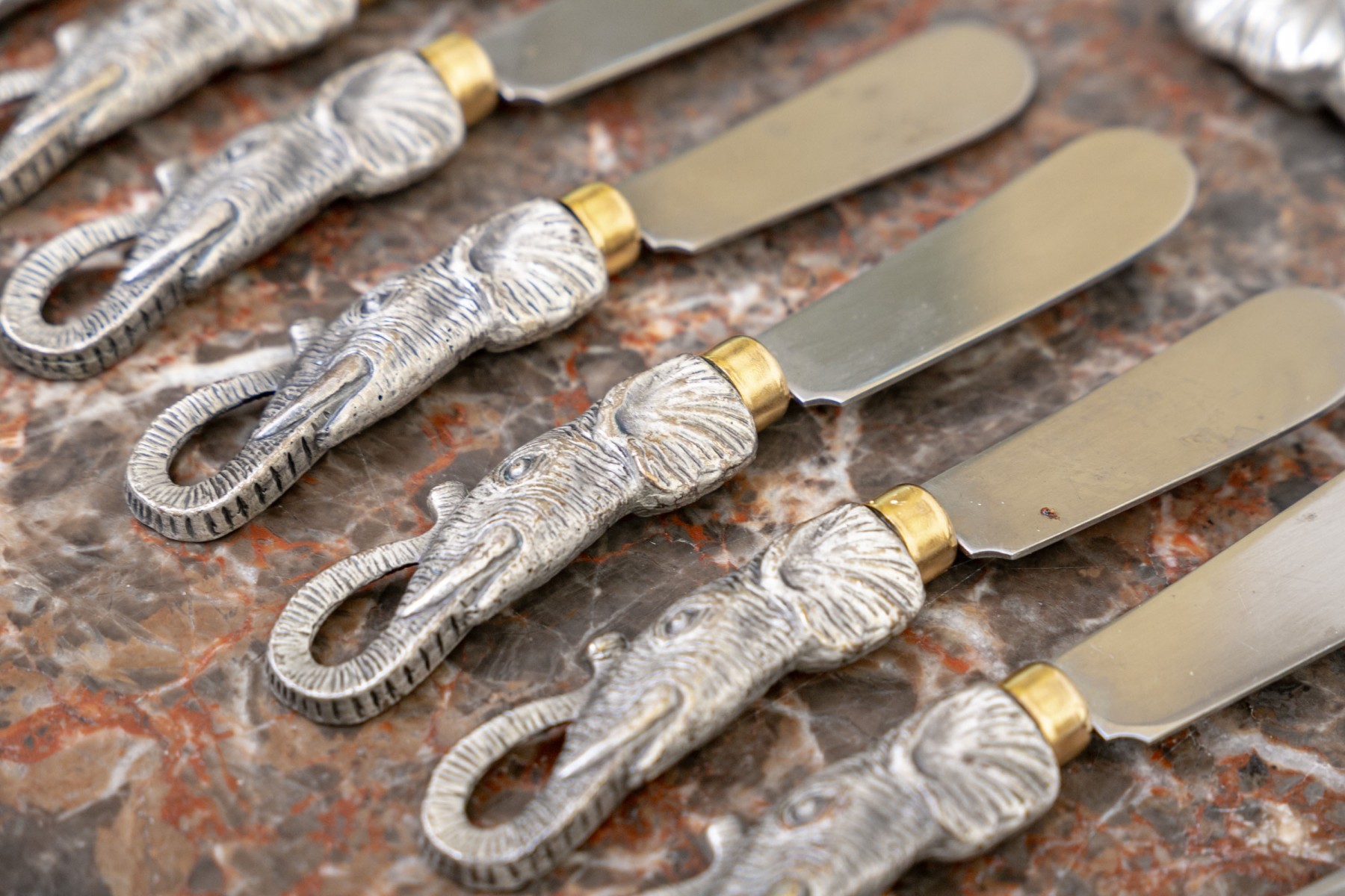 - 8 butter knives with elephant form handles - 4 3/4"L