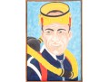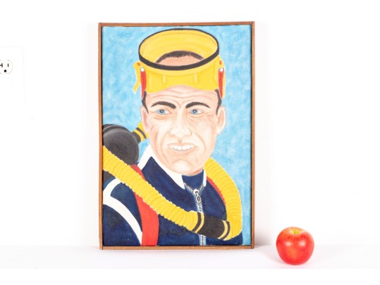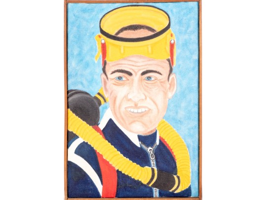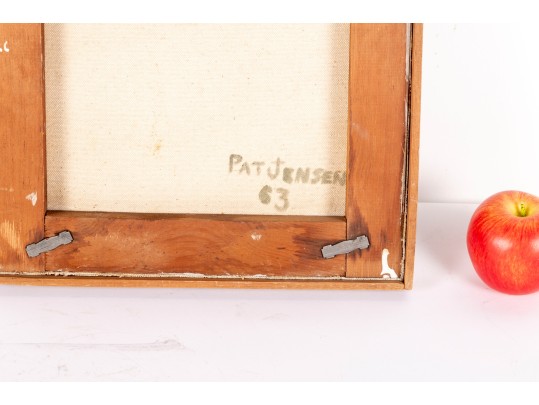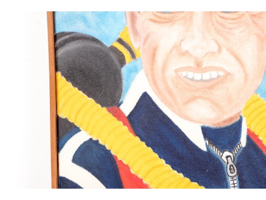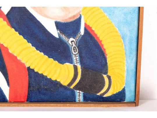 A portrait by American artist Pat Jenson, known for his Americana iconography. The painting is oil on canvas presented openly on stretched canvas, provided with a wooden frame.