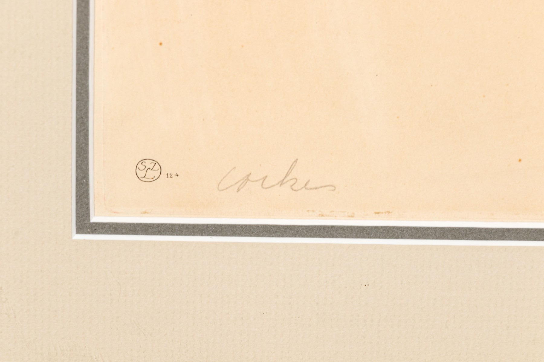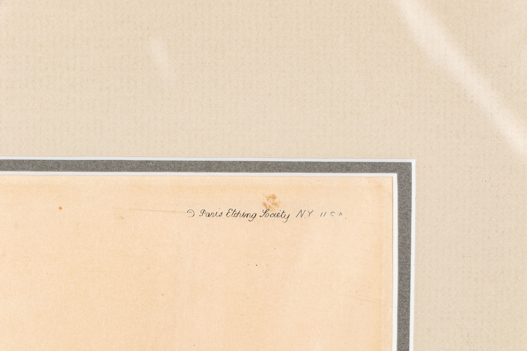 Pencil signed lower right and titled lower left with printer mark upper right. Presented matted and framed in a carved and finished frame and glazed. Dimensions: 10 1/2 x 14 1/2" W, sight // 16 3/4 x 20 3/4" W, frame