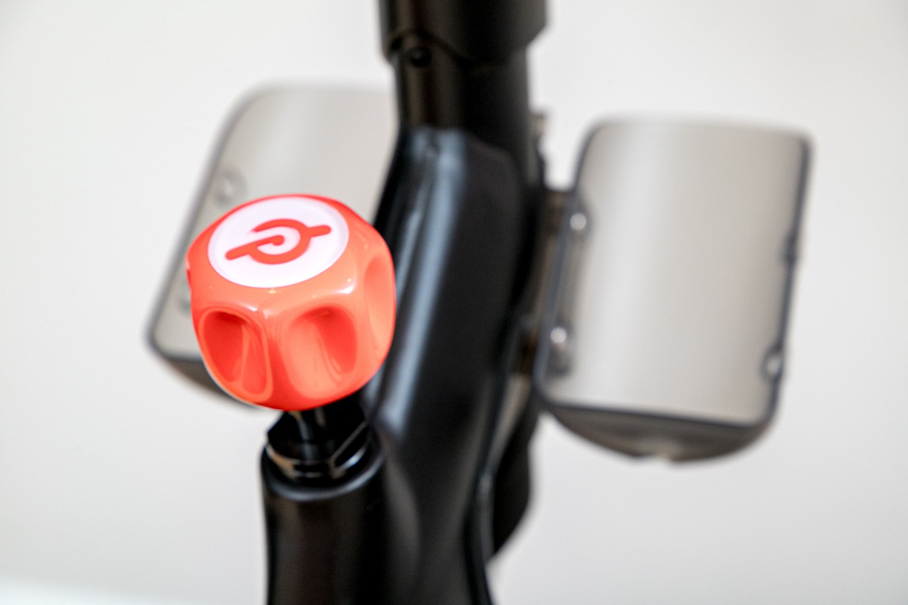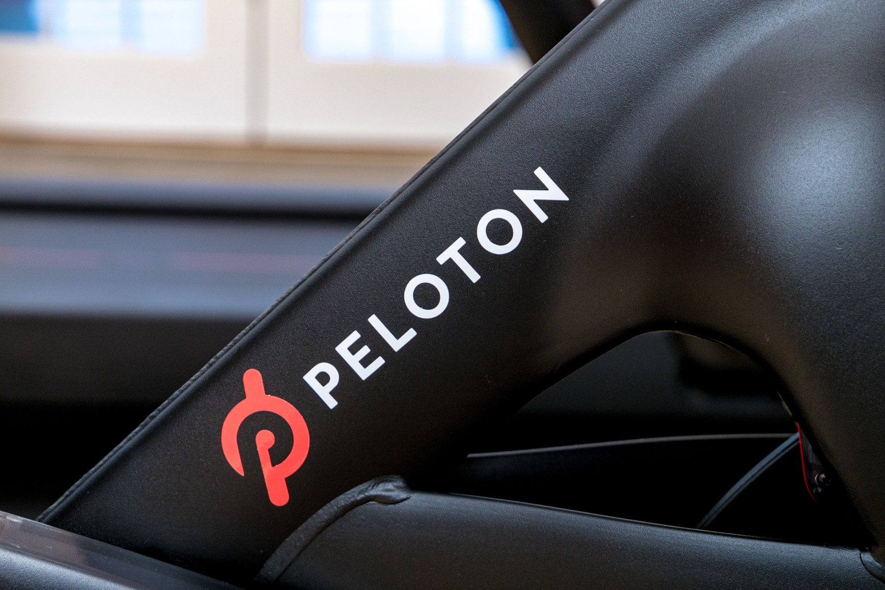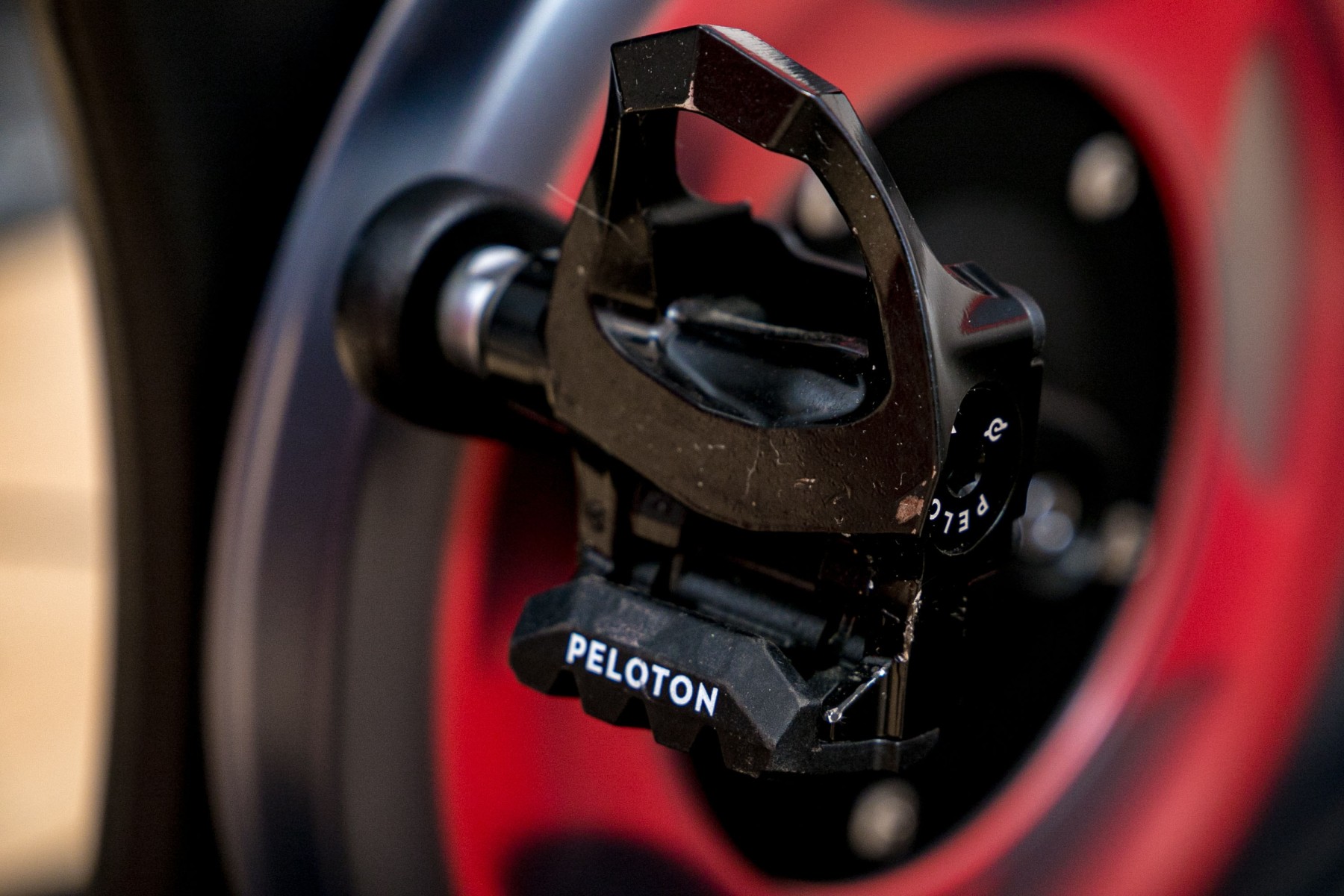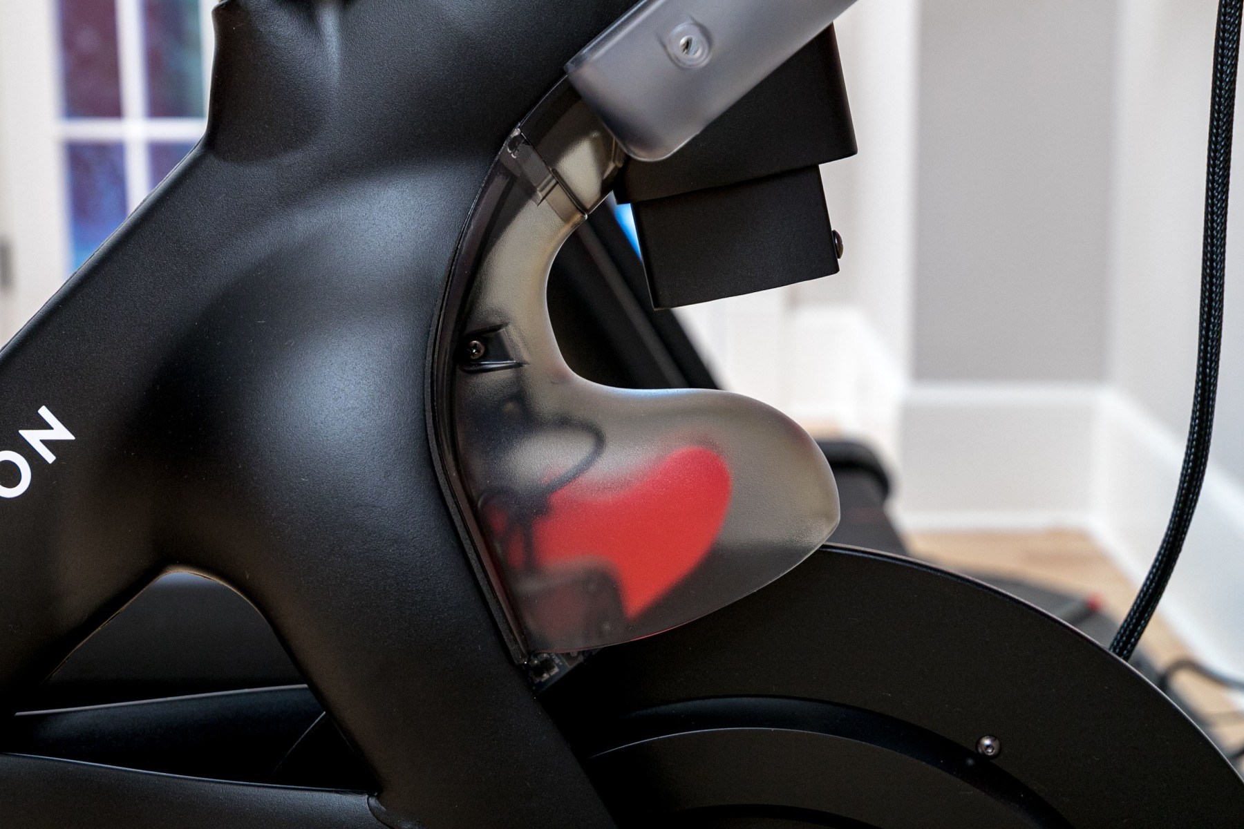 Exercise in style with this Peloton 3rd gen stationary bike, model PLTN-RB1VQ. The bike features a sleek profile in classic black with eye-catching red details, complete with a large console.