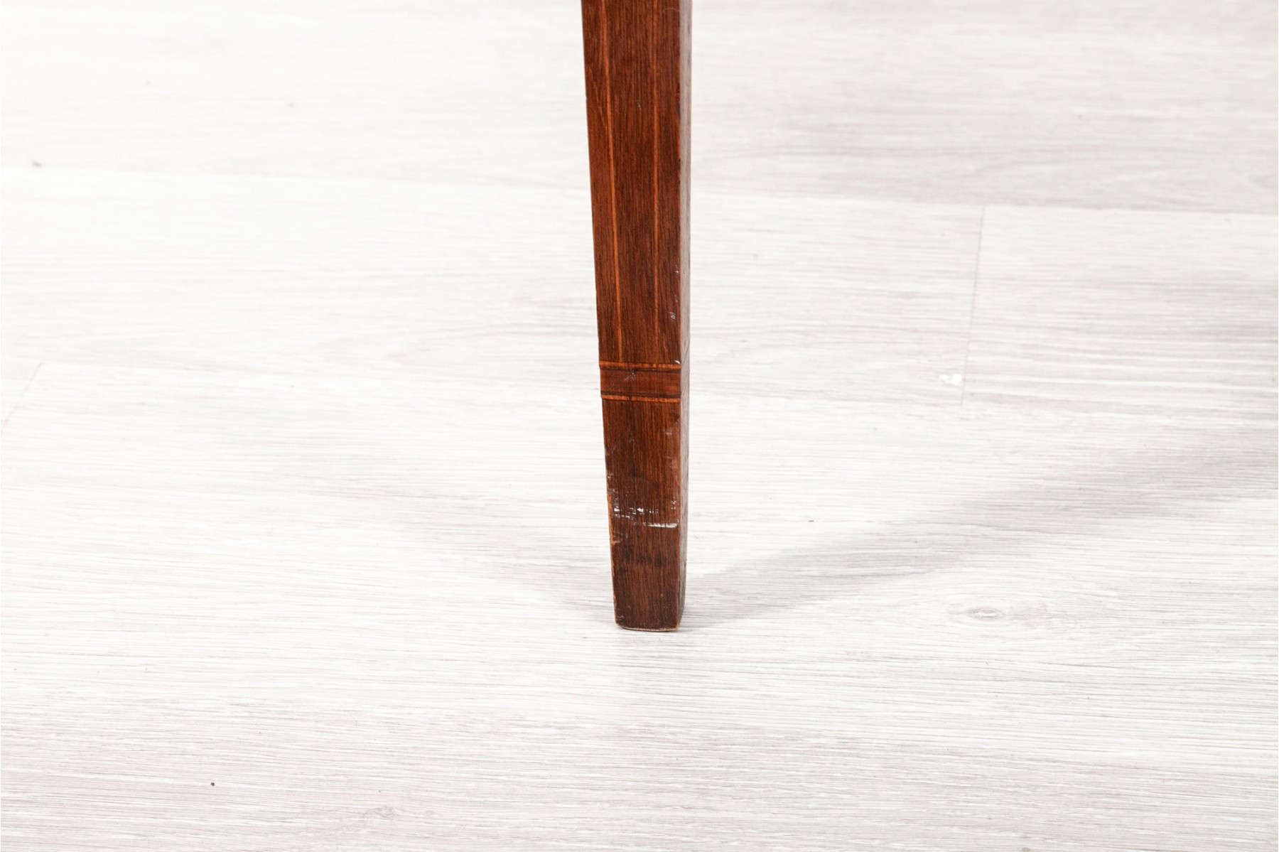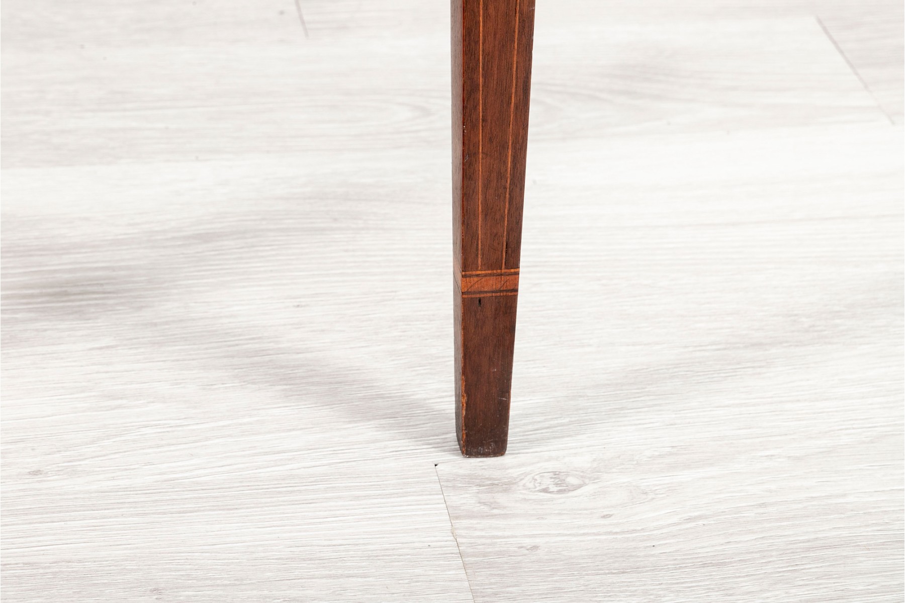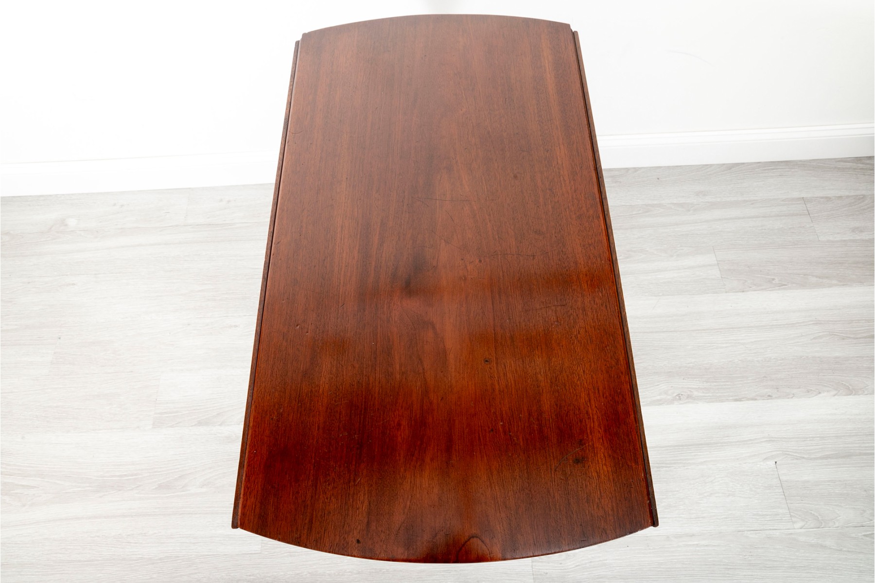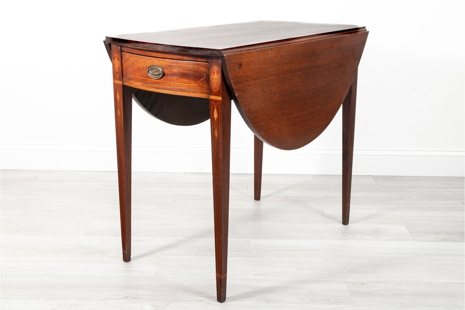 A wonderful pembroke drop-leaf occasional table displaying a gently convex rounded apron flanked by tapered legs accented with inlaid marquetry depicting American eagles and striped shield motifs.