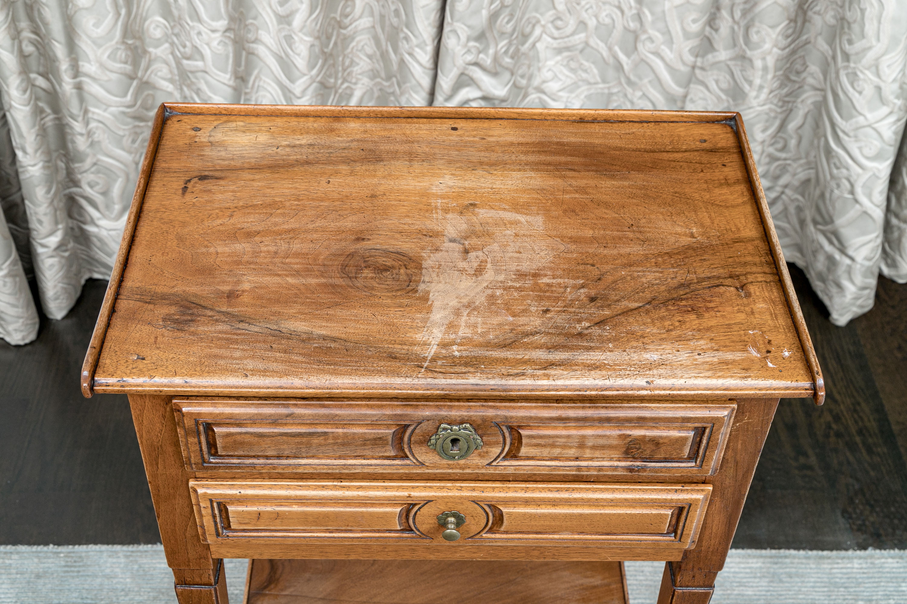 Condition: The overall condition is quite good with some age-related wear including a worn top with old stains and some desirable worming with the table exhibiting warm and authentic French presentation.