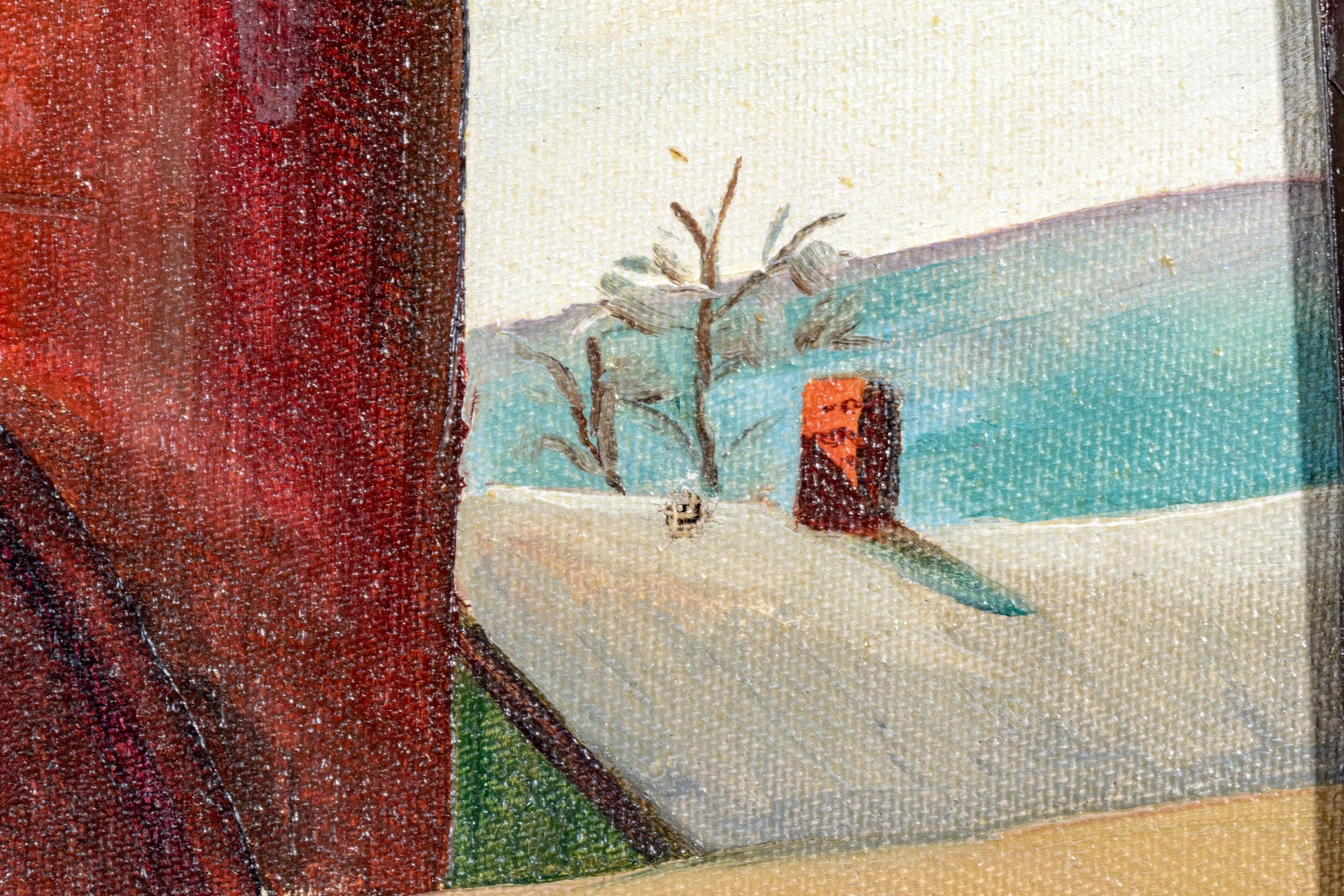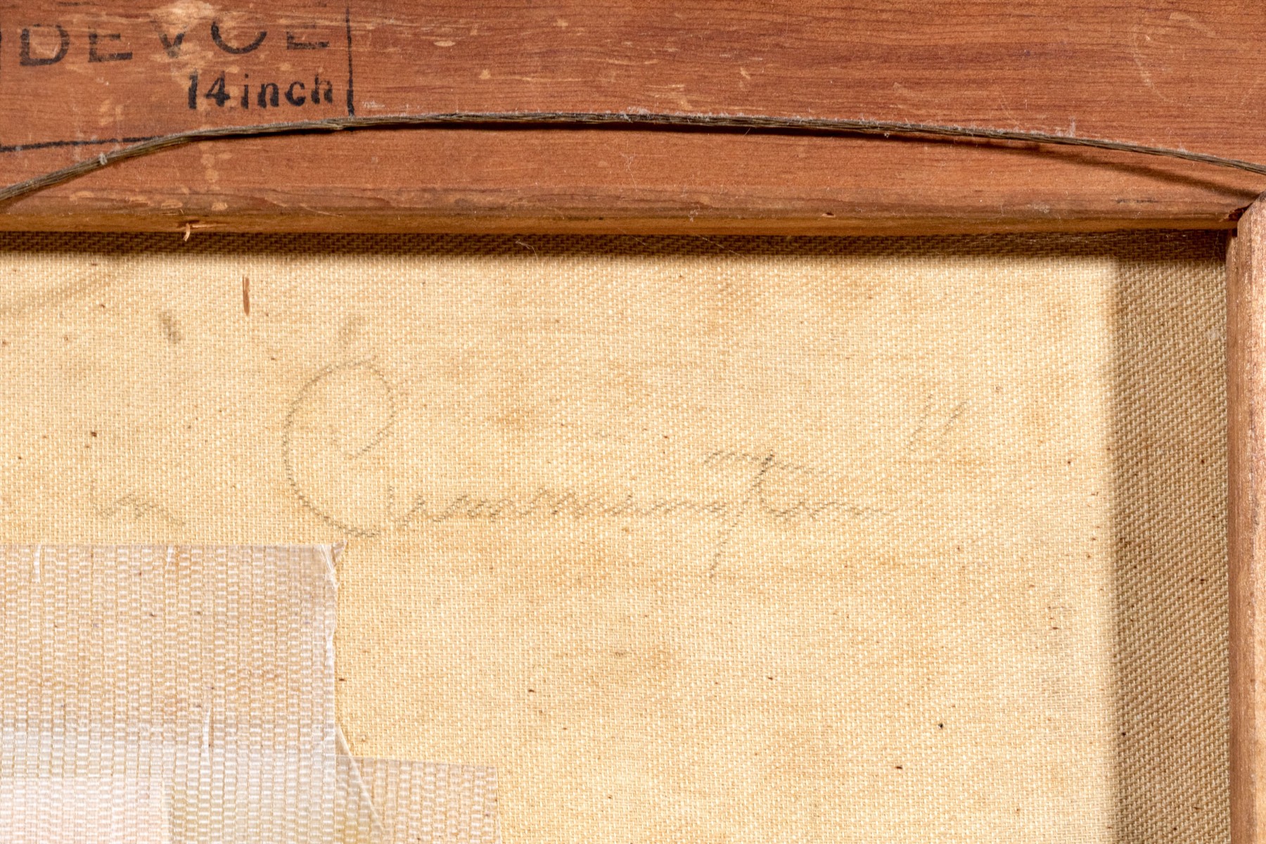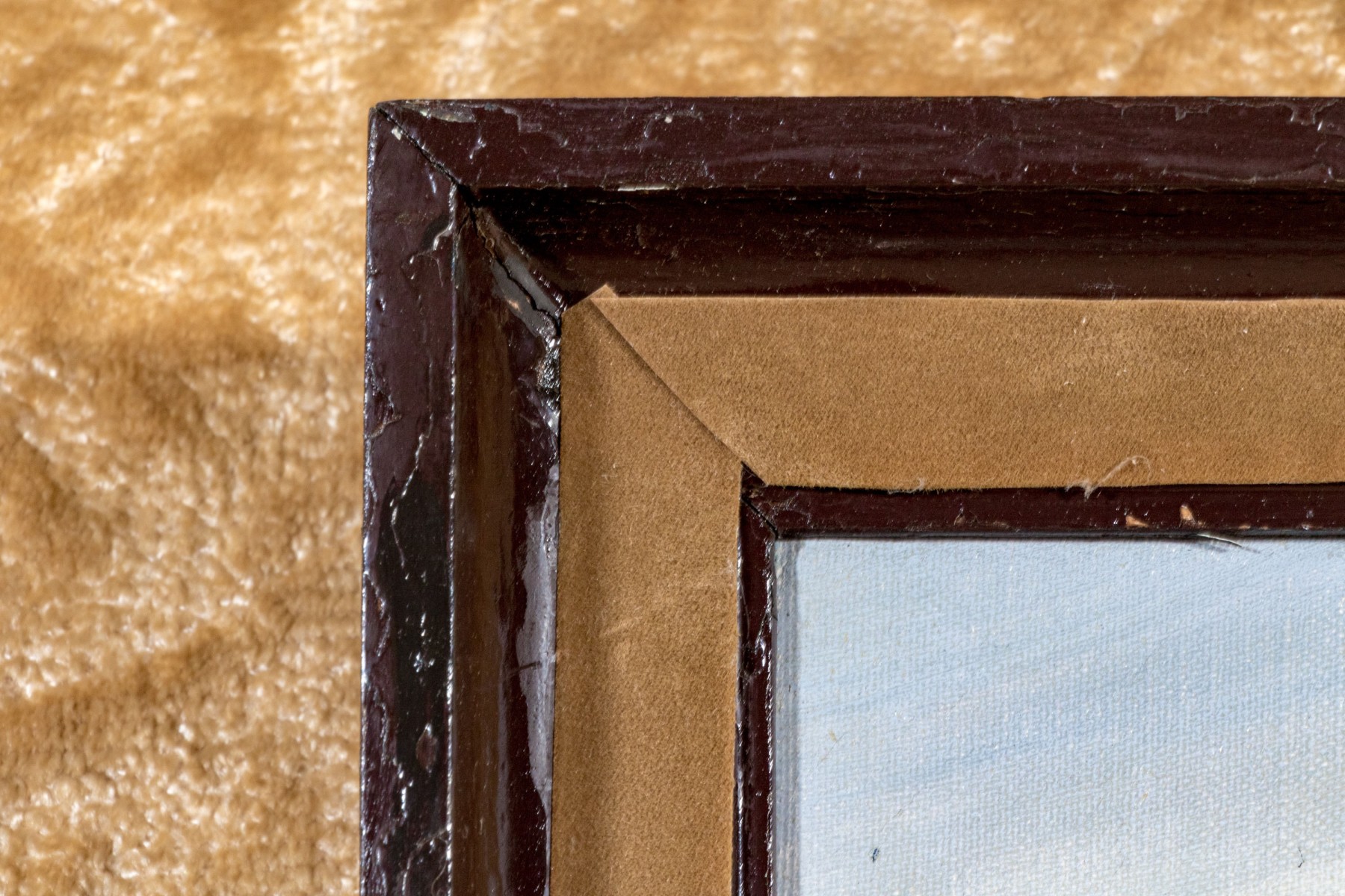 Major repair to center of canvas as shown in photos of front and back. Losses to frame.