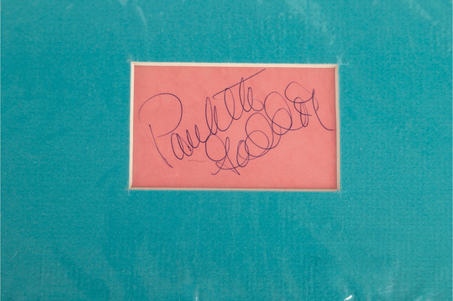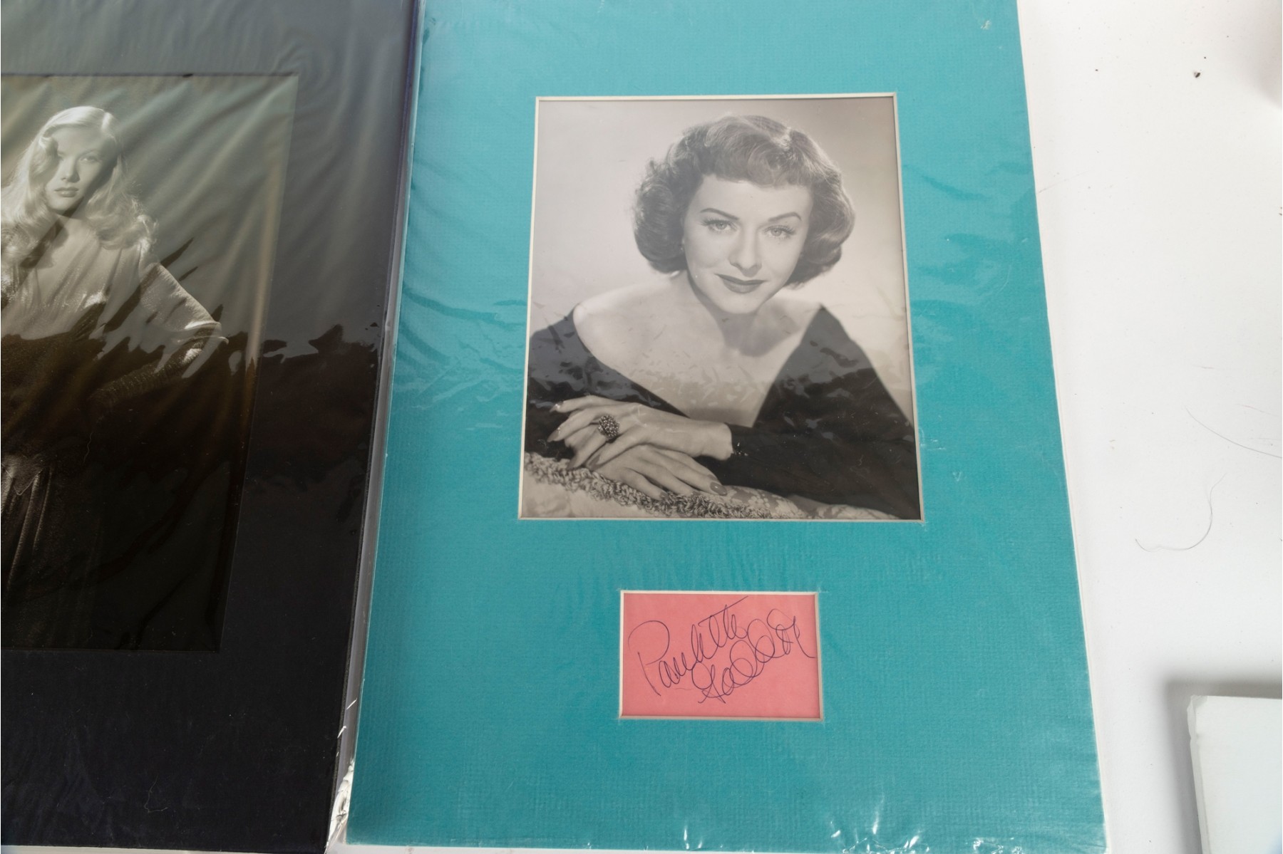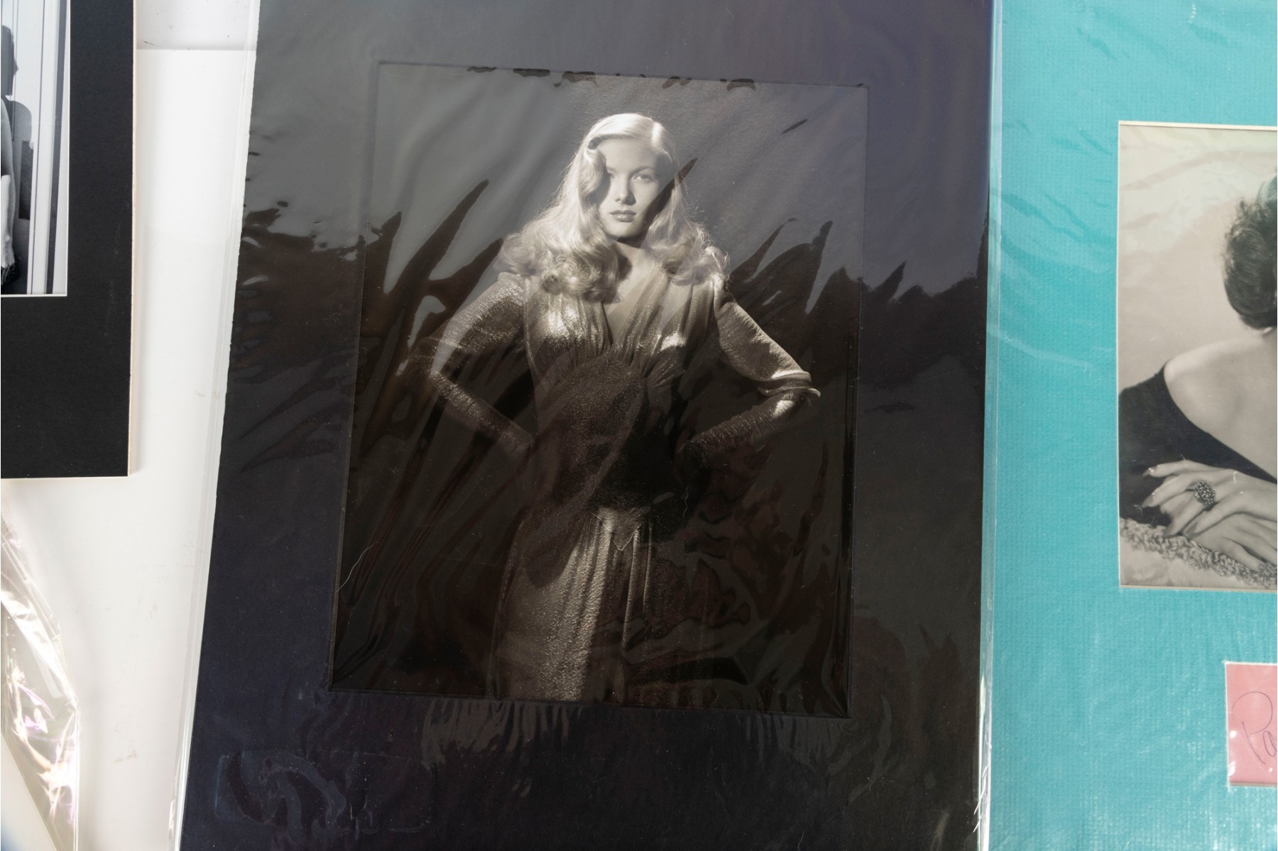A fantastic collection of photographs of actresses with autographs including Marilyn Monroe, Ursula Thiess and Robert Mitchum, Paulette Goddard and Ava Gardner. Includes a photograph of Veronica Lake. Autographs have not been authenticated. All displayed matted, unframed.
