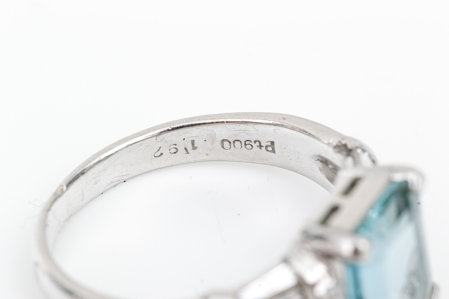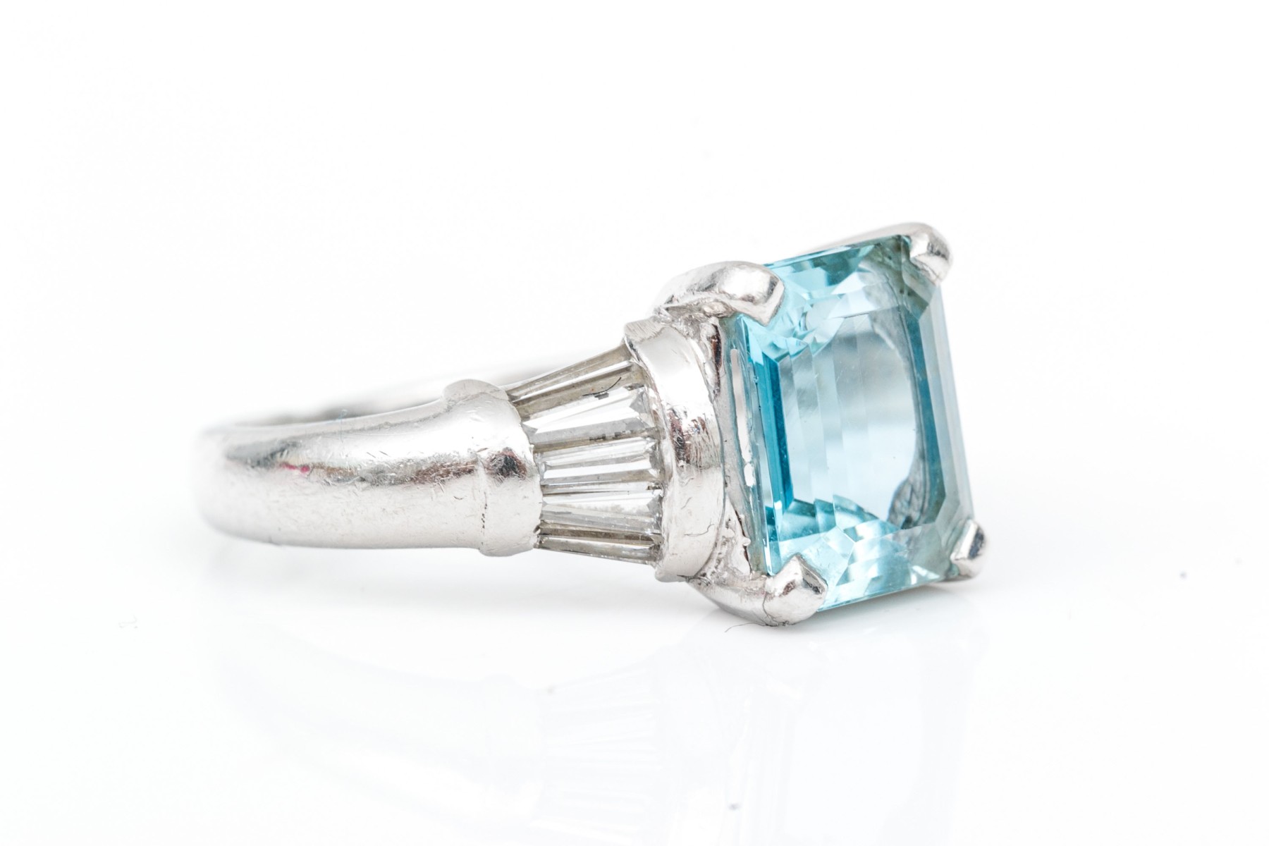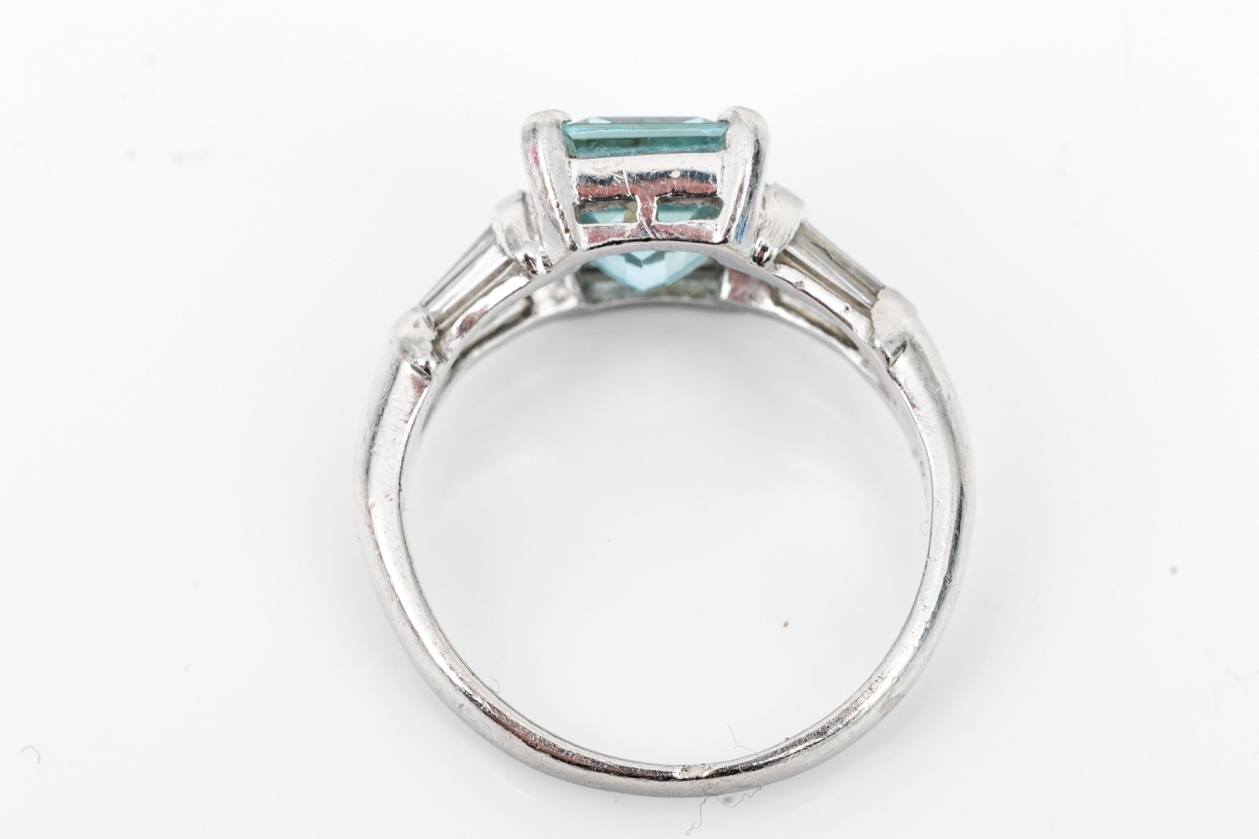 Platinum pretty aquamarine and baguette diamond ring, size 5.25, diamonds app. 0.45 TCW, aquamarine app. 1.92 CTS