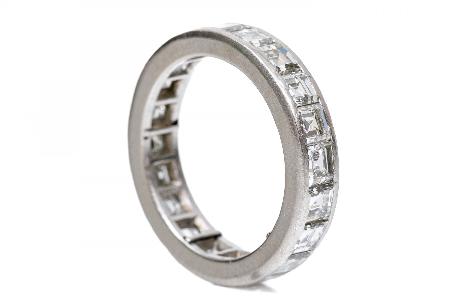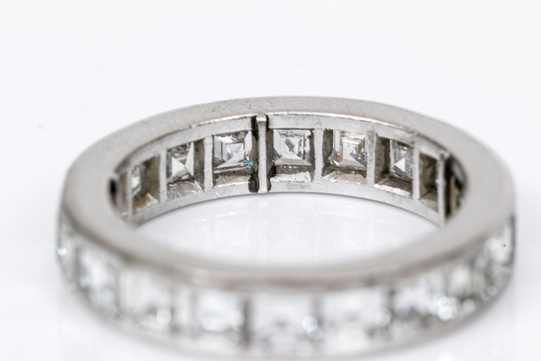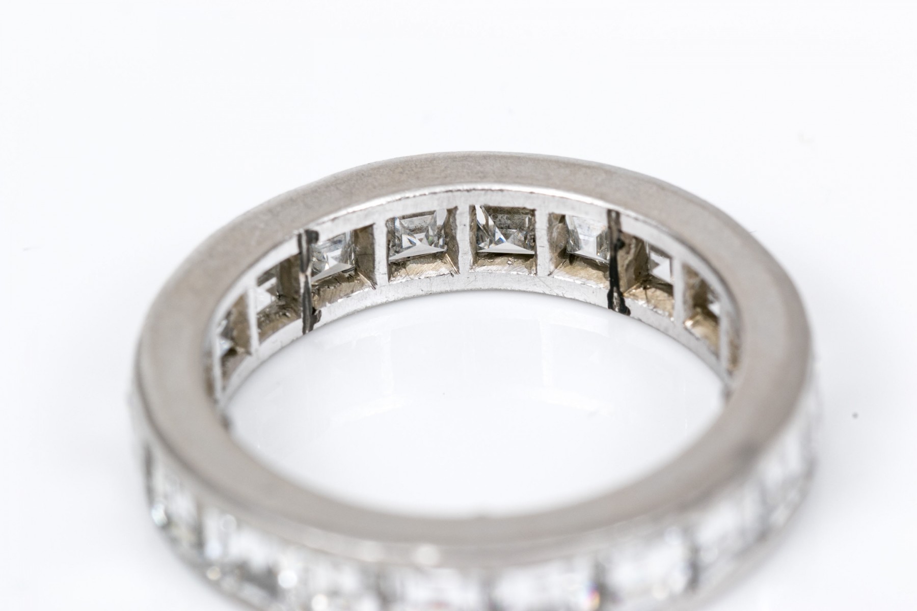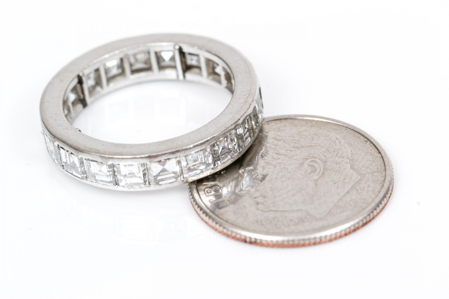 Platinum stunning princess cut diamond eternity band, approximately 3.60 TCW, size 3.75