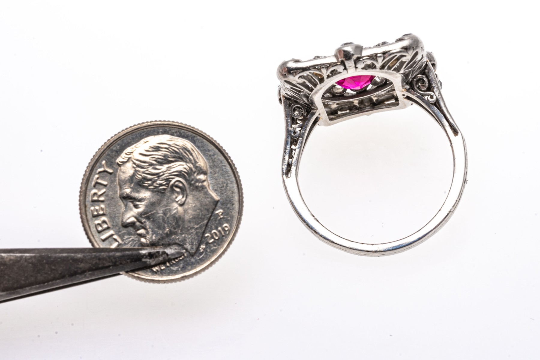 Platinum Vintage Old European Diamond And Synthetic Pink Sapphire Ring, Size 7+ #183102. Black Rock Galleries provides high end estate liquidation services through online estate auctions and a 50,000 sq ft designer showroom. estate liquidator, estate sale, online auction, antiques, fine art, liquidation, clean outs, auction, consignment, interior design, fine jewelry, collectibles, appraisals, estate appraisals, estate services, decor, furniture, furniture consignment, antique center, consignment shop. We offer appraisal services and specialize in fine art, jewelry, antiques and decorative arts. Sell with us. Black Rock Galleries is the tri-state's largest estate liquidator serving New England and the greater New York City area. We are the trusted source for expert appraisals, auction services, estate sales, and consignments. Black Rock Galleries is the east coast's largest and most trusted estate liquidator, with locations in Connecticut, greater Boston, MA and Raleigh, NC, Fairfield, Southport, Apex, TX. We are the best source for expert appraisals, auction services, estate sales and consignments. We have served thousands of families and estates with compassion, professionalism and expertise. BRG works with attorneys, executors, realtors and families to bring the greatest return on personal and estate property in the current market. Our unique combination of services make us the easy choice to get the job done in a timely and stress-free manner. We are with you from the initial consultation to the final clean out. Our house-built online auction software platform offers clients a dynamic approach to liquidating their personal property. This venue is most successful in bringing the best return with the least amount of disruption for our clients. See our services page for a complete description of this offering. Platinum Vintage Old European Diamond And Synthetic Pink Sapphire Ring, Size 7+ #183102