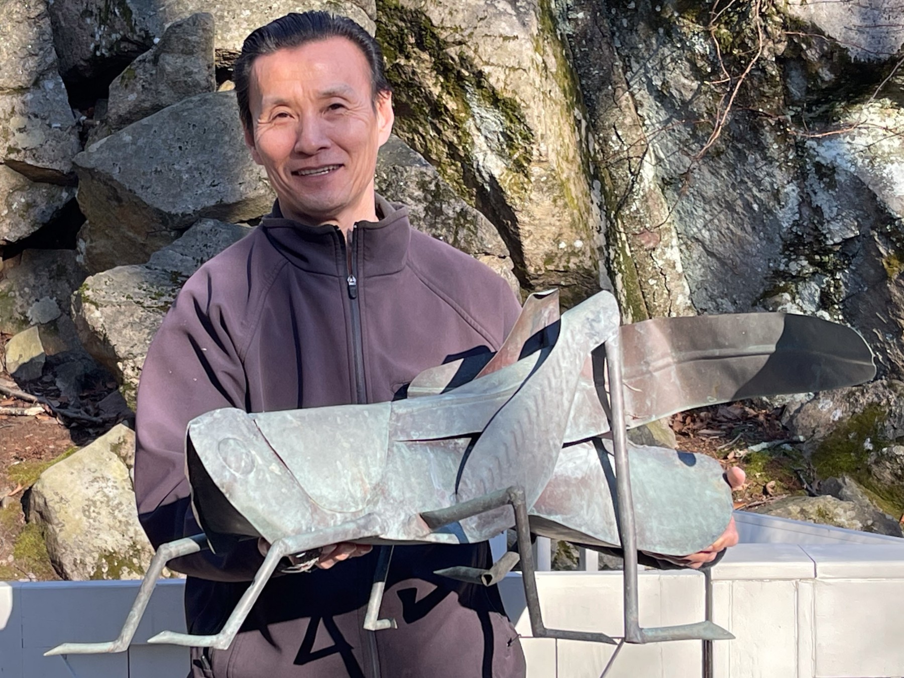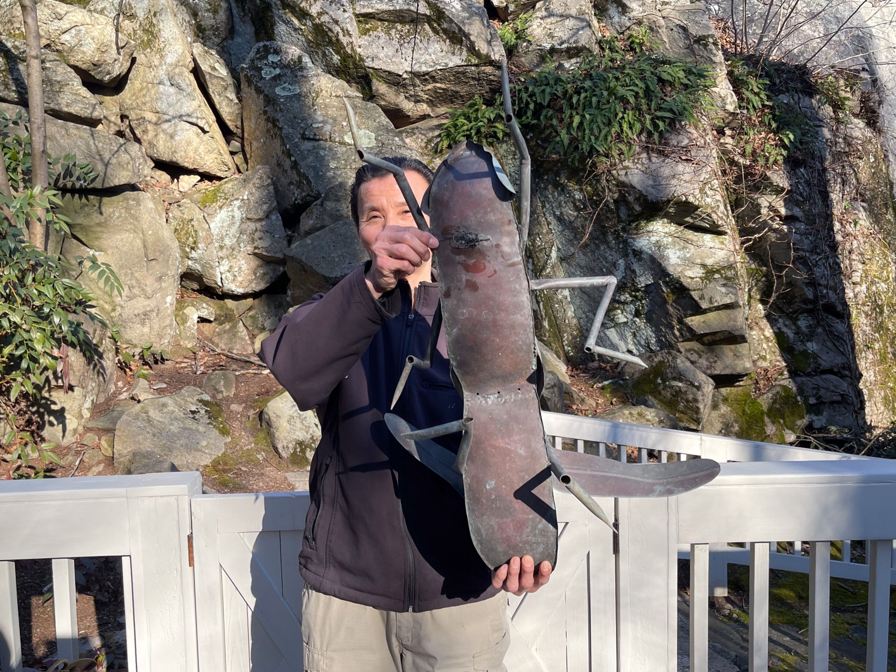 A wonderful and unique outdoor metallic cricket sculpture that is perfect for any lawn. Unsigned.