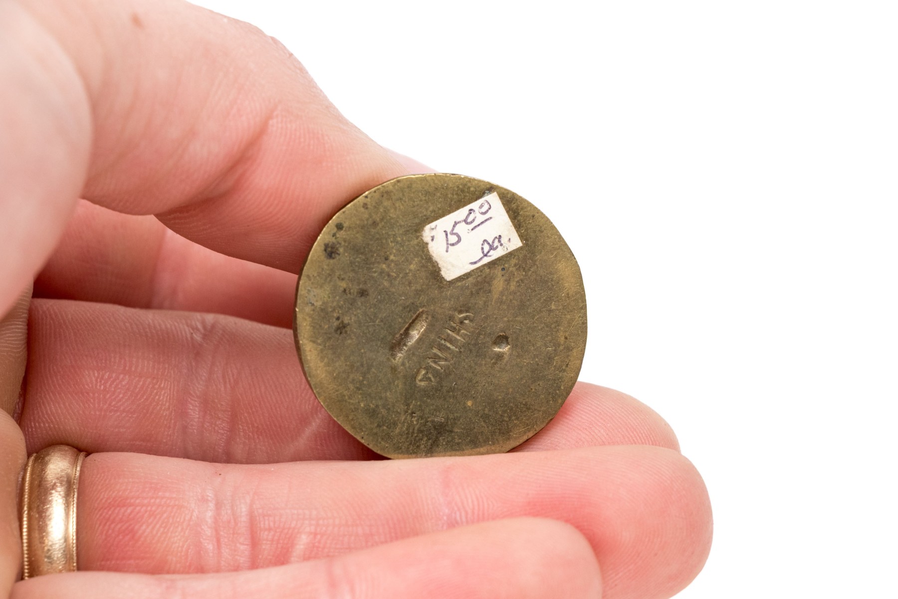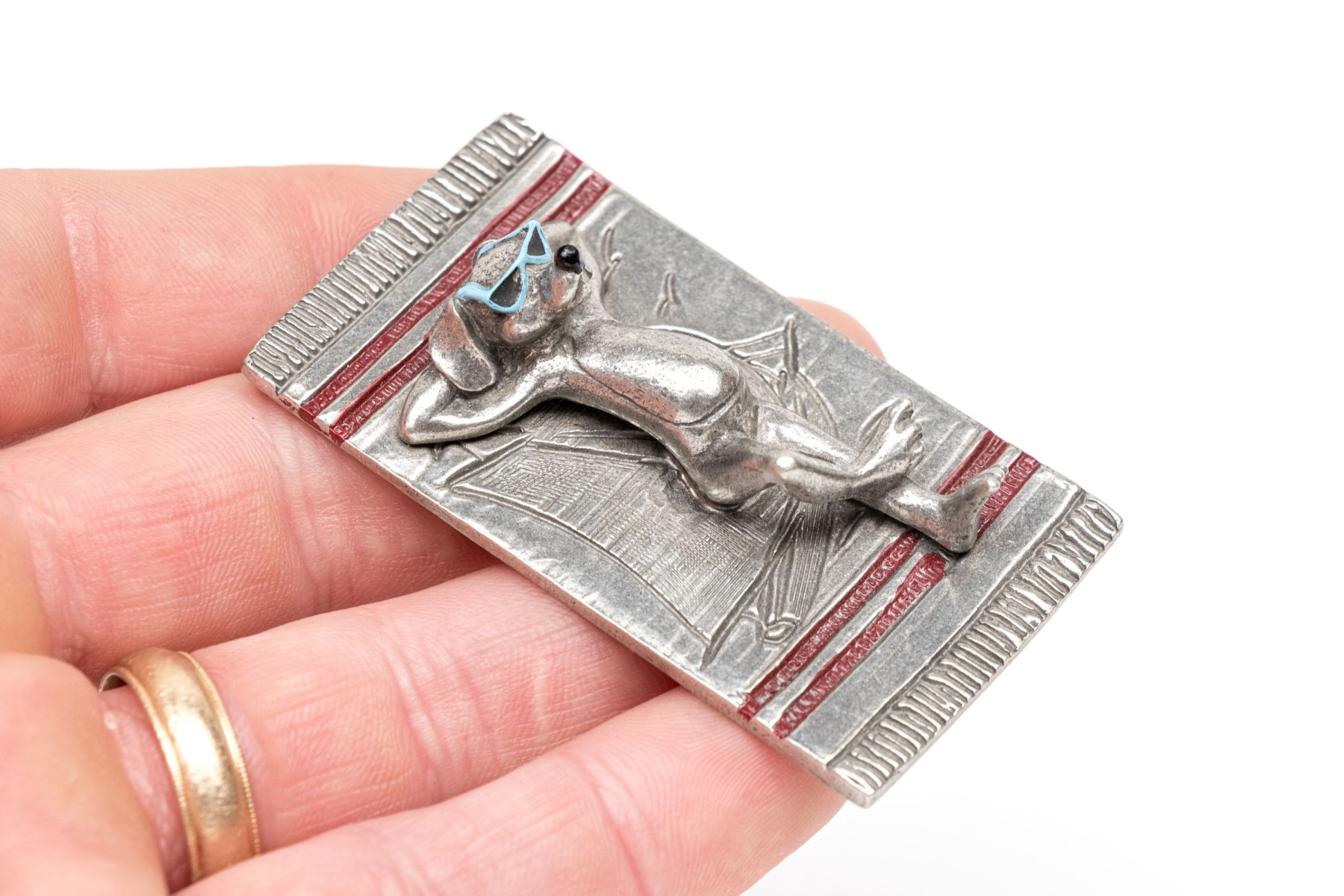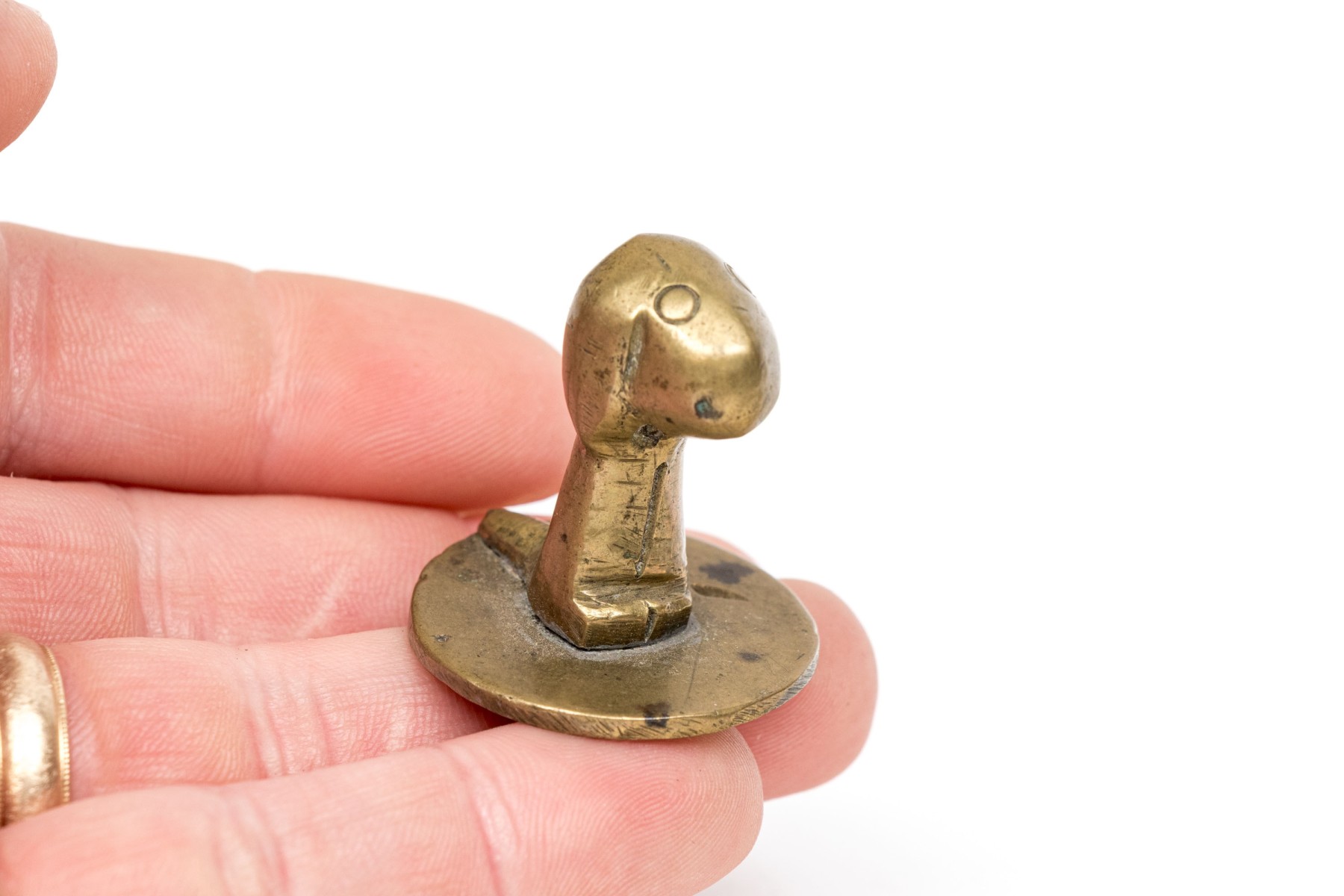 - a brass dog on circular base