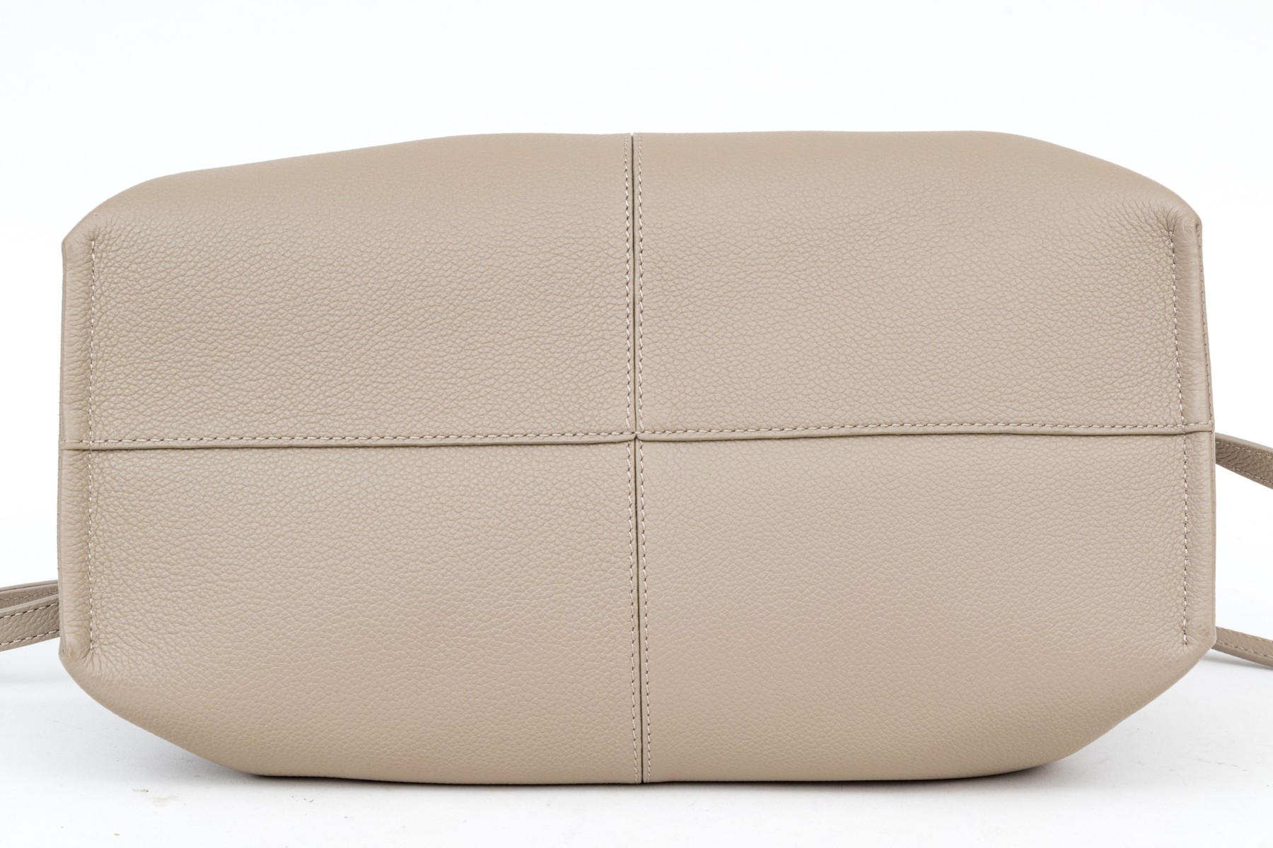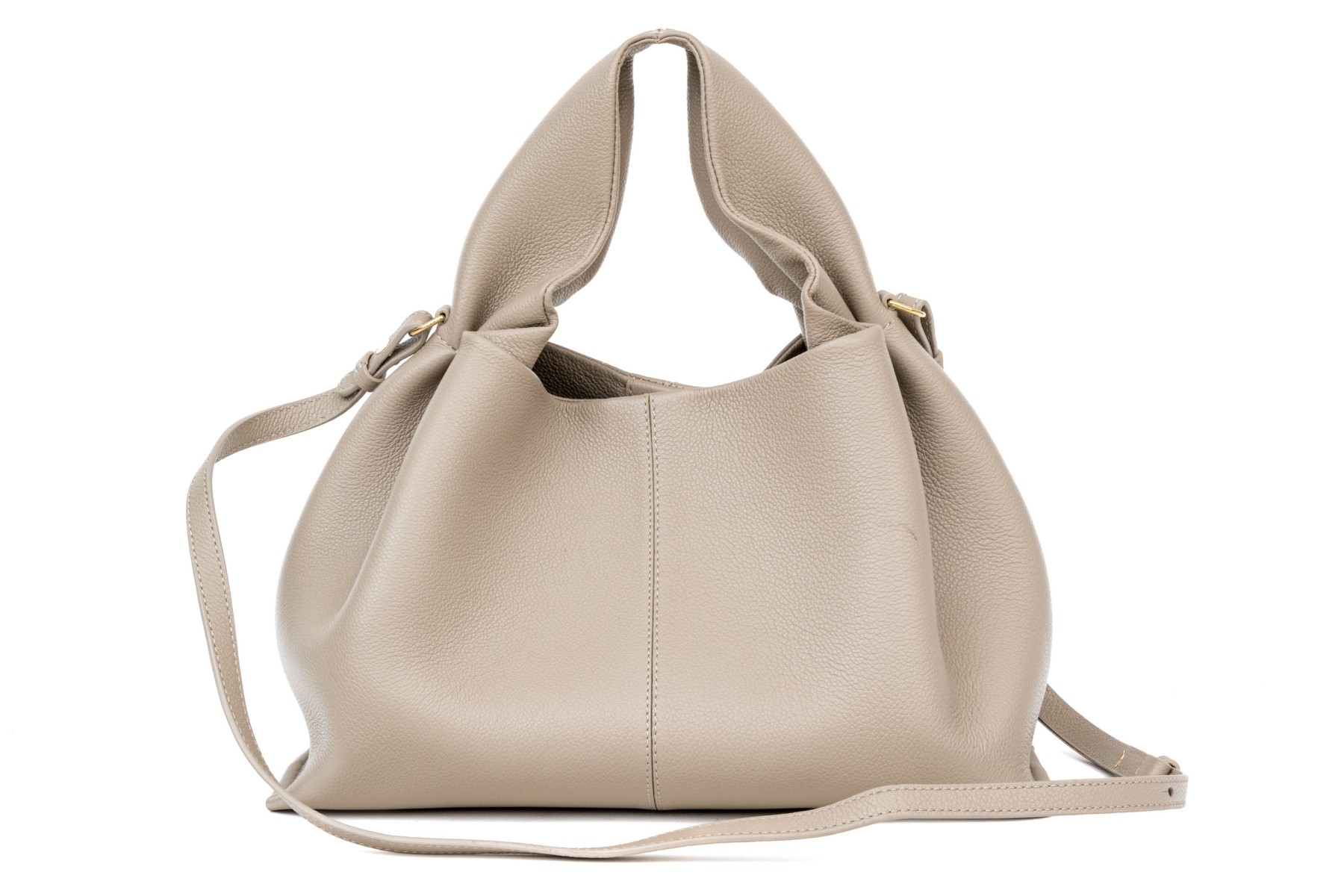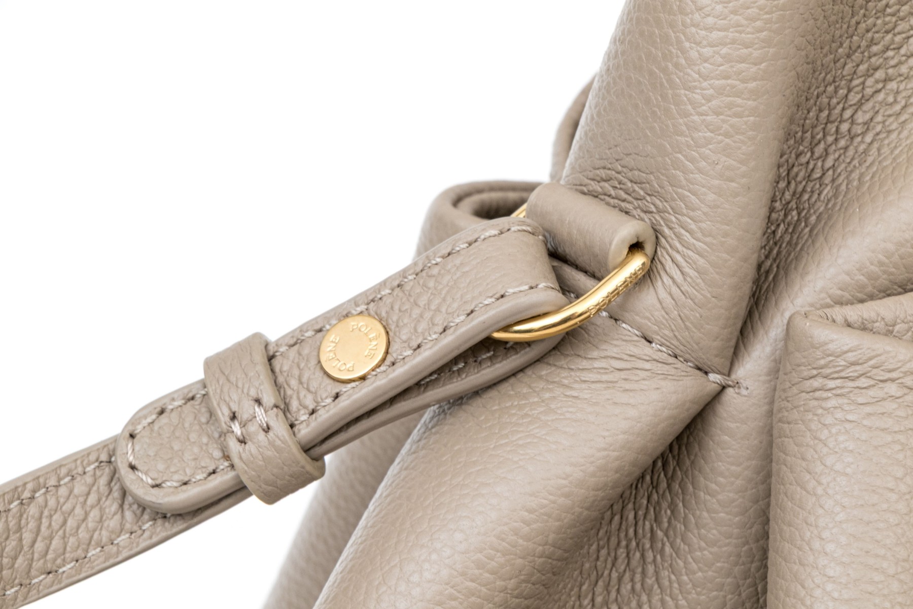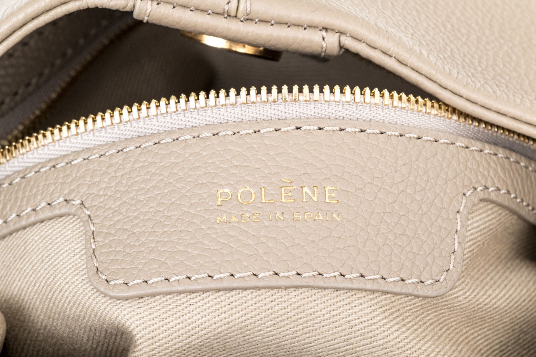 Crafted in supple taupe-grain leather, this Polène Numéro Dix handbag features a softl structure with signature knotted handles at the top. The bag includes an adjustable and detachable shoulder strap