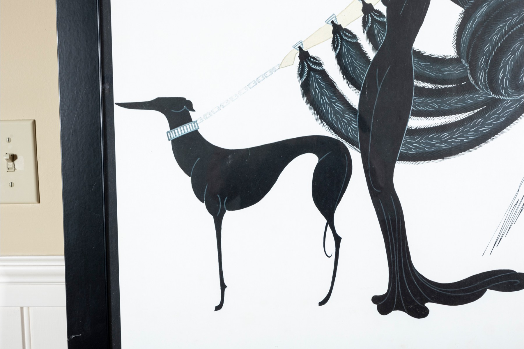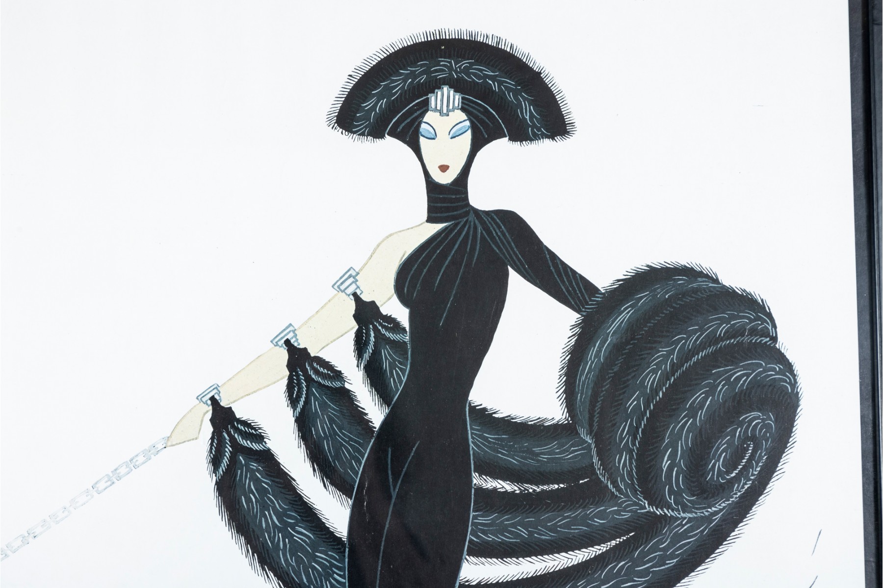 Iconic Art Deco style. Mounted in ball frame and ready to hang.